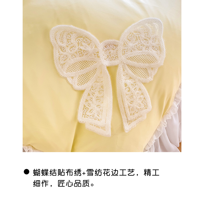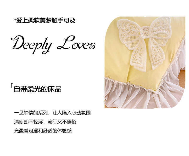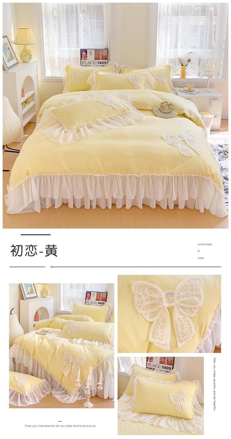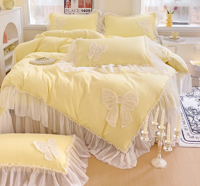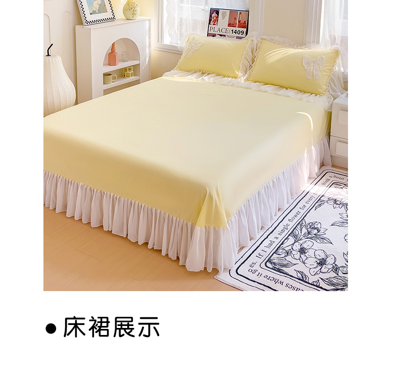 当前位置: 91家纺网 > 商品网购 > 床品套件 > 四件套 > 其它四件套 > 言熙居家纺 2024新款韩版贴布绣雪纺花边床盖款四件套-初恋 初恋-黄