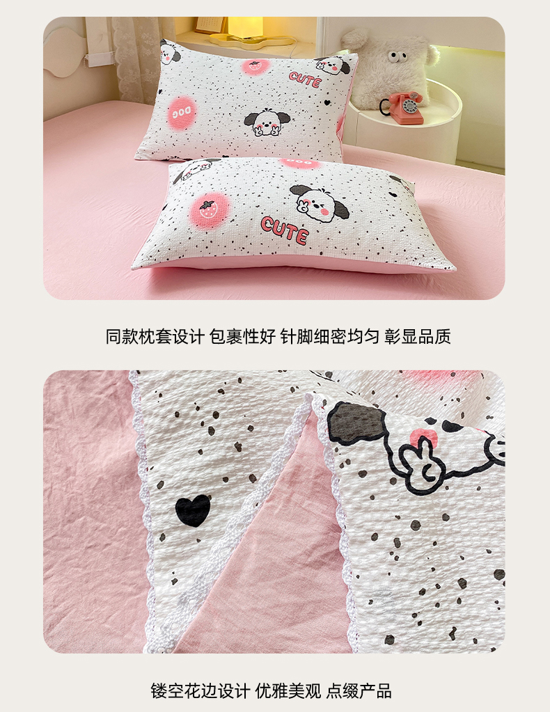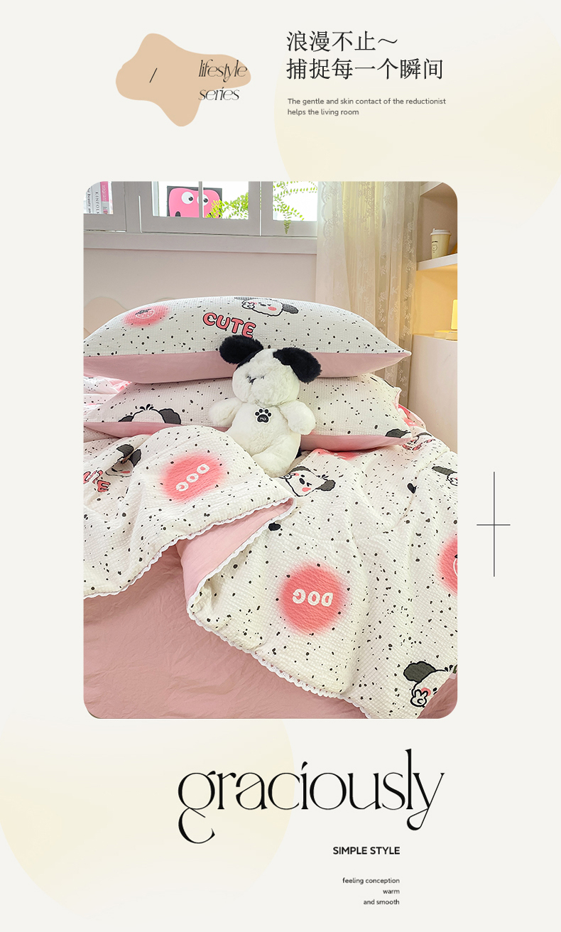 2025新款A类泡泡纱水洗棉夏被四件套 酷酷狗