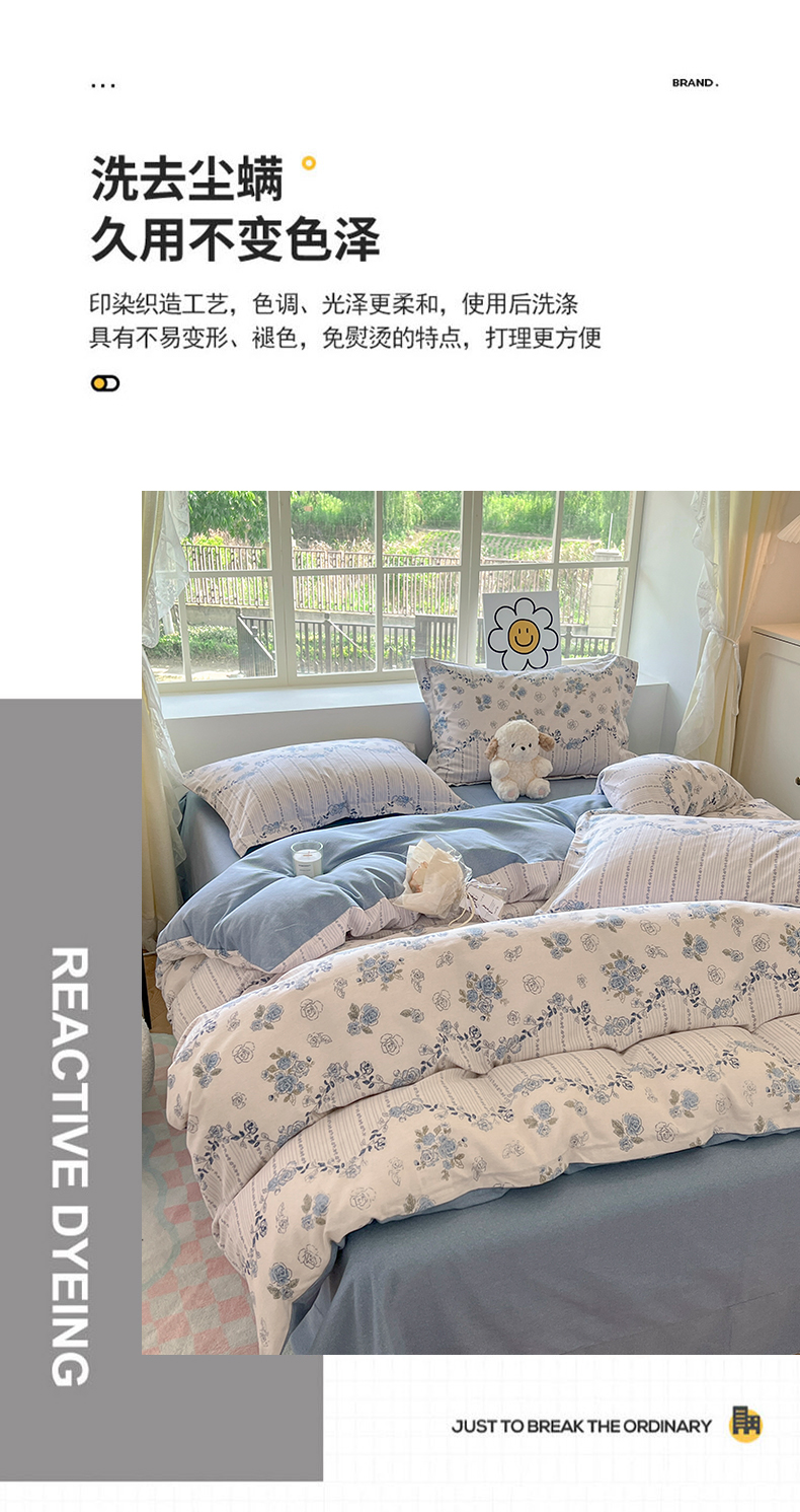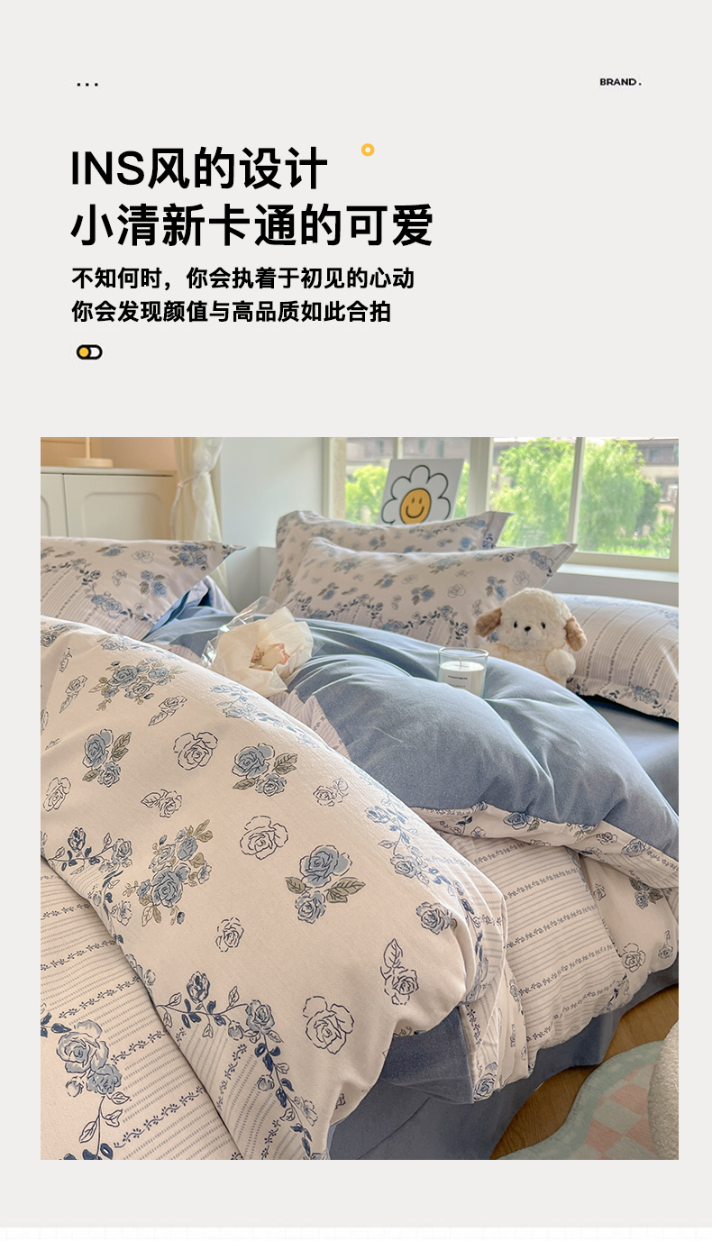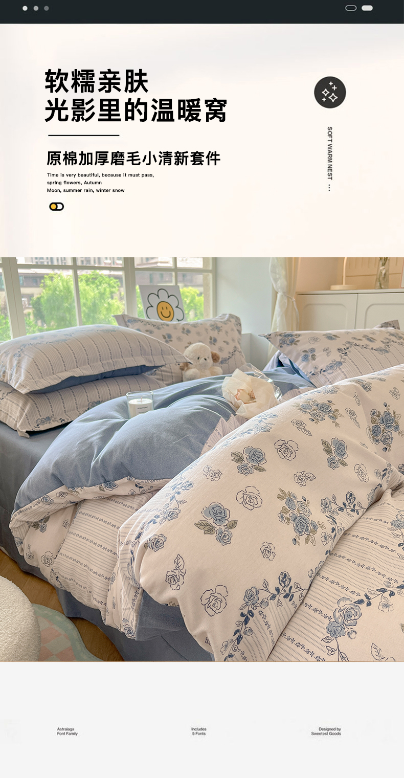 商品名称:卧趣家纺 2024新款原棉磨毛四件套清新可爱系列四件套 小野玫·兰