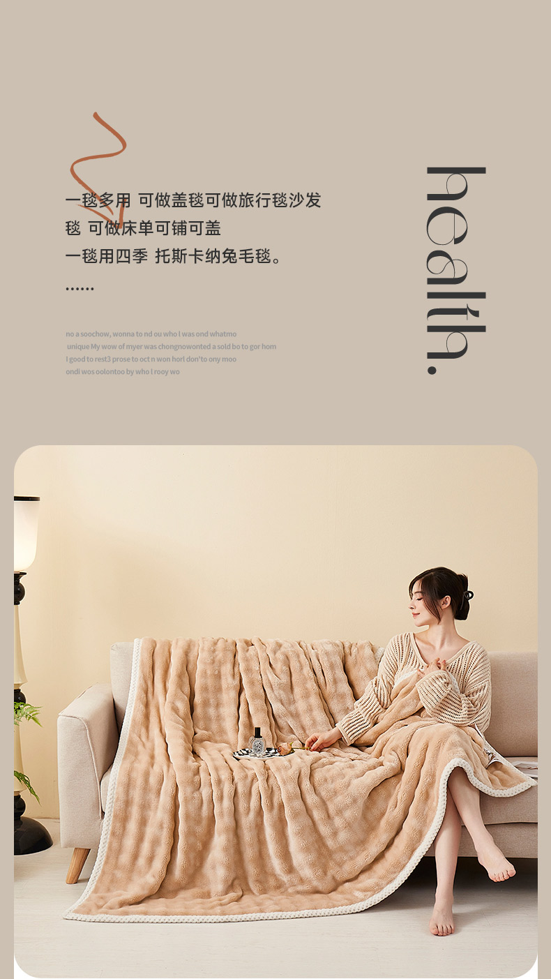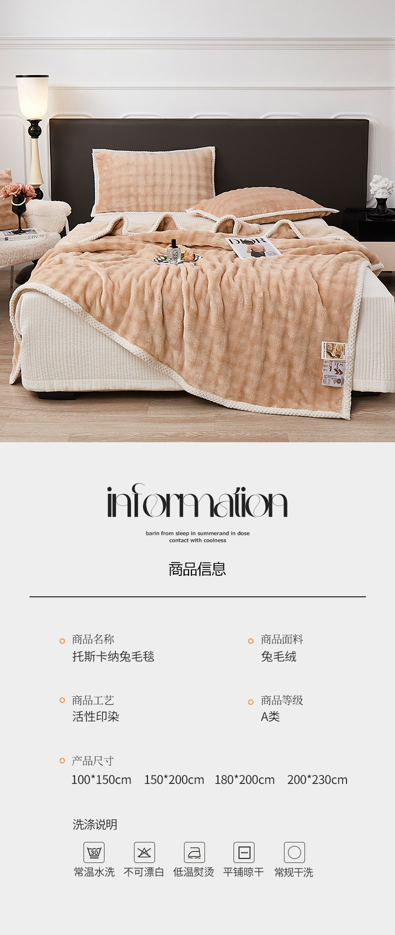商品名称:肖恩毯业 2025新款托斯卡纳兔毛绒毛毯 托斯-卡其