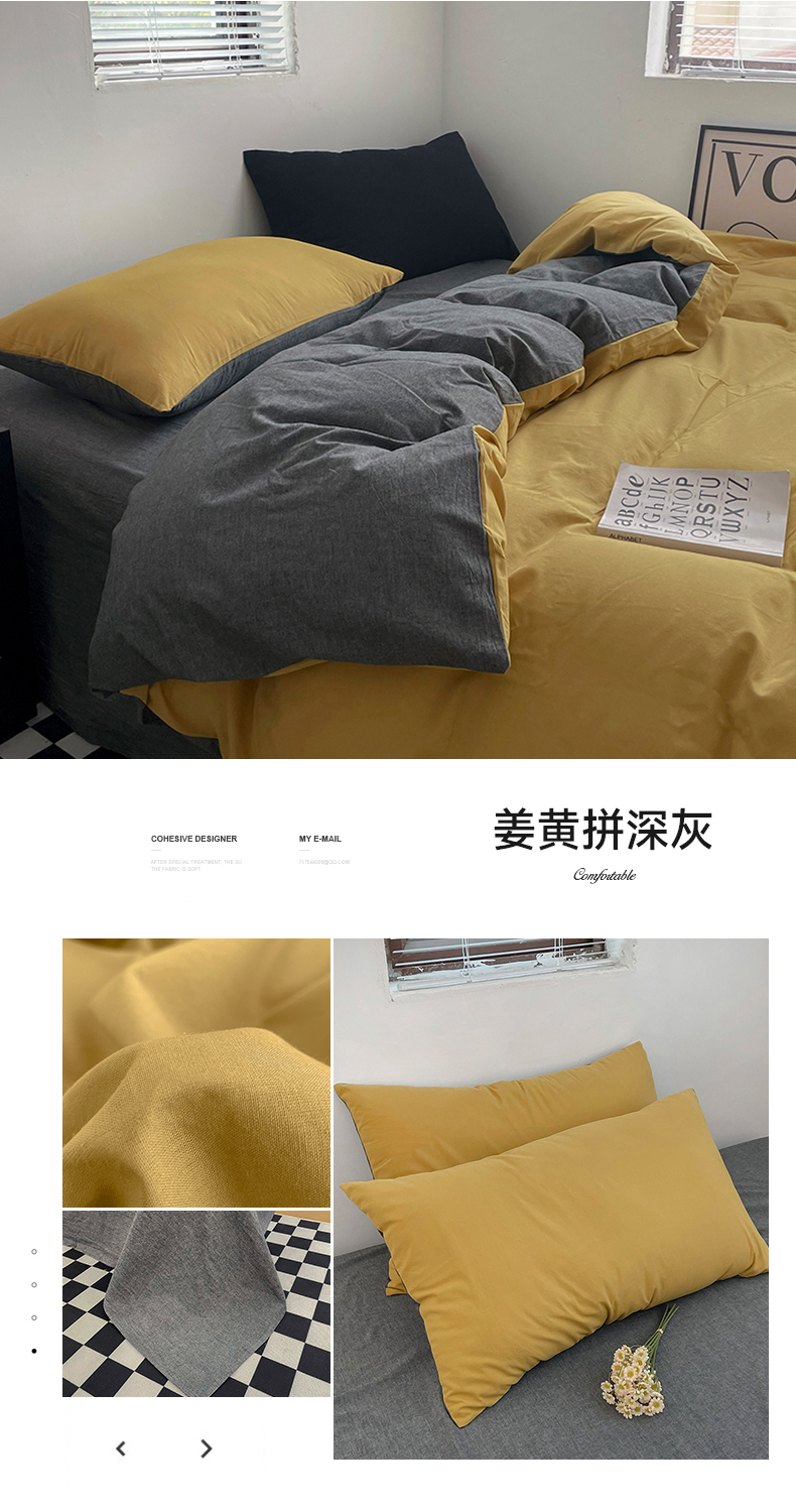 当前位置: 91家纺网 > 商品网购 > 床品套件 > 四件套 > 全棉普通四件套 > 2024新款A类全棉纯棉纯色双拼色织水洗棉四件套 姜黄拼深灰