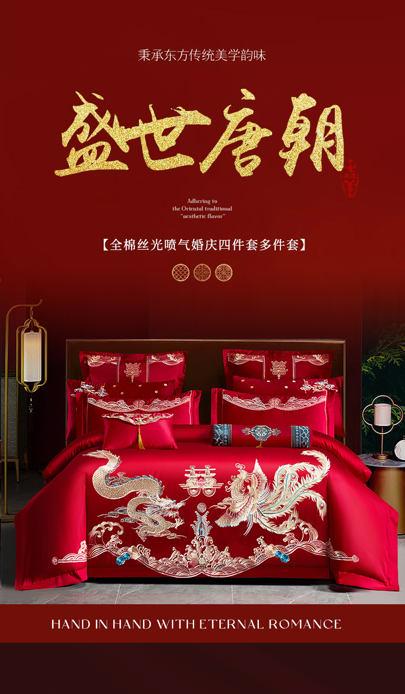 当前位置: 91家纺网 > 商品网购 > 床品套件 > 四件套 > 婚庆四件套 > 振翼 2025新款40s全棉丝光喷气婚庆四件套多件套1 至尊龙凤