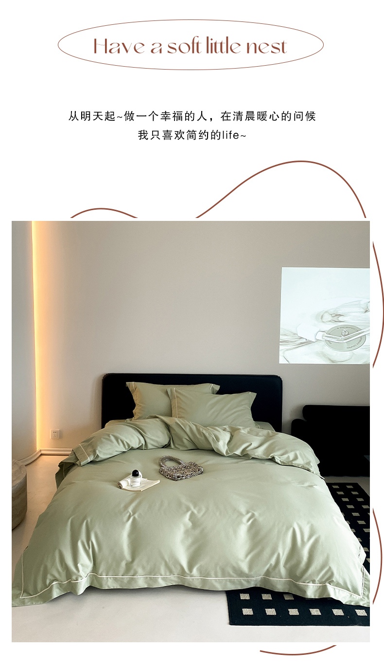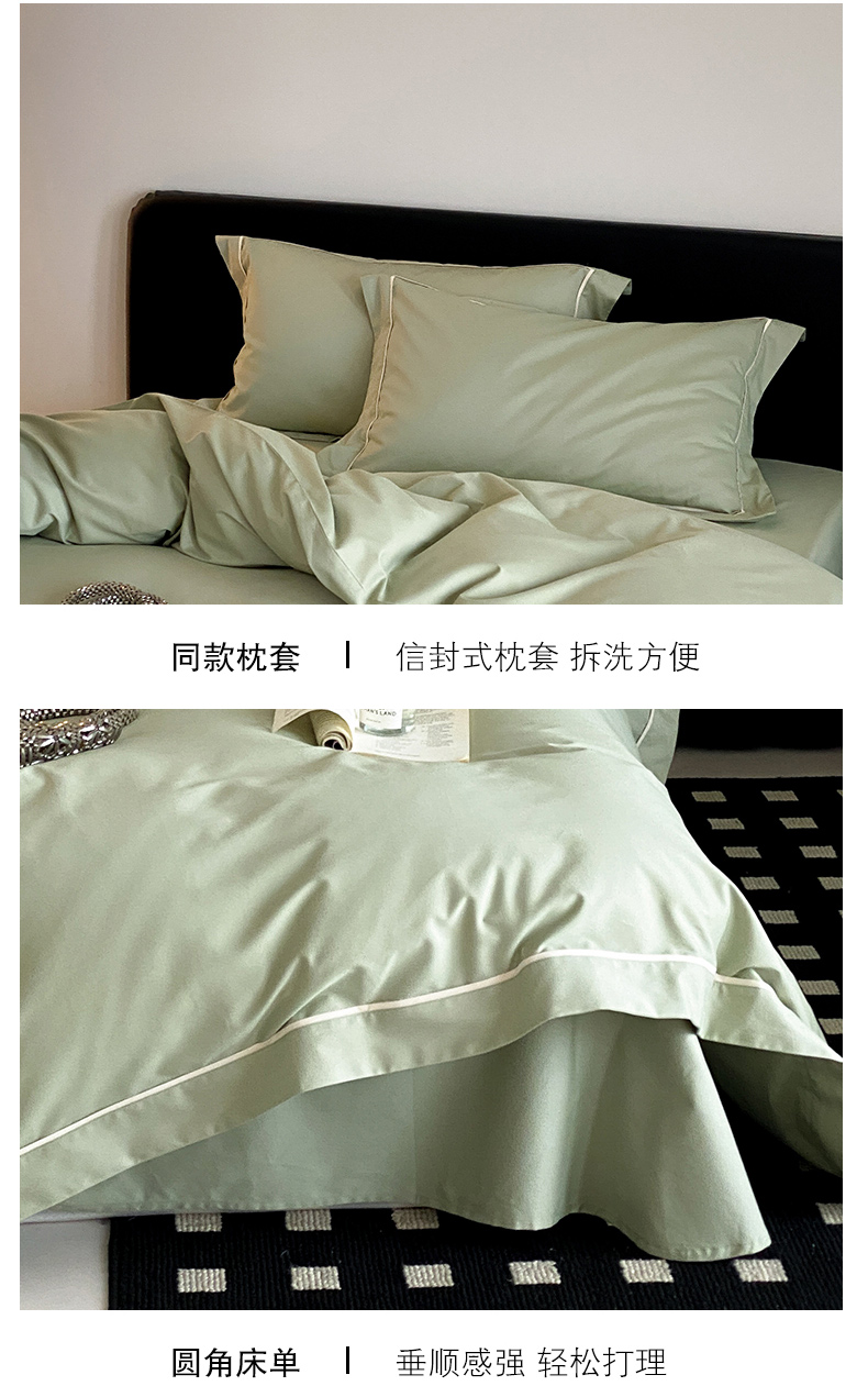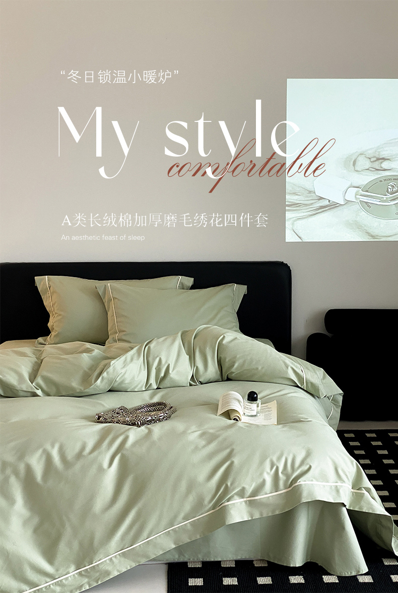 商品名称:云栖家居 2024A类全棉磨毛静谧系列四件套 静谧-青绿
