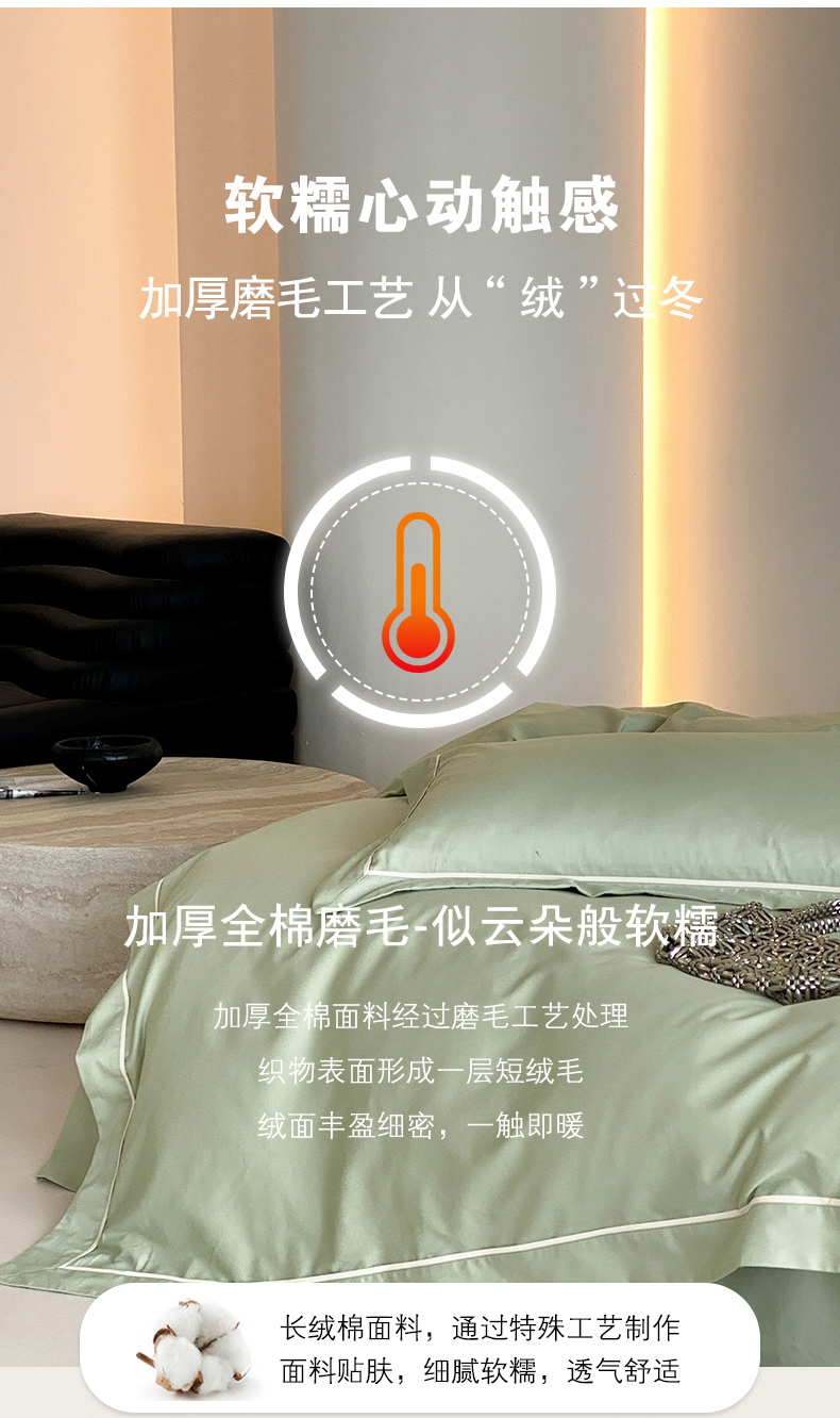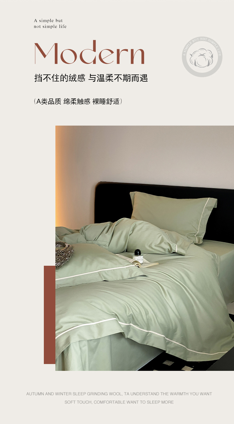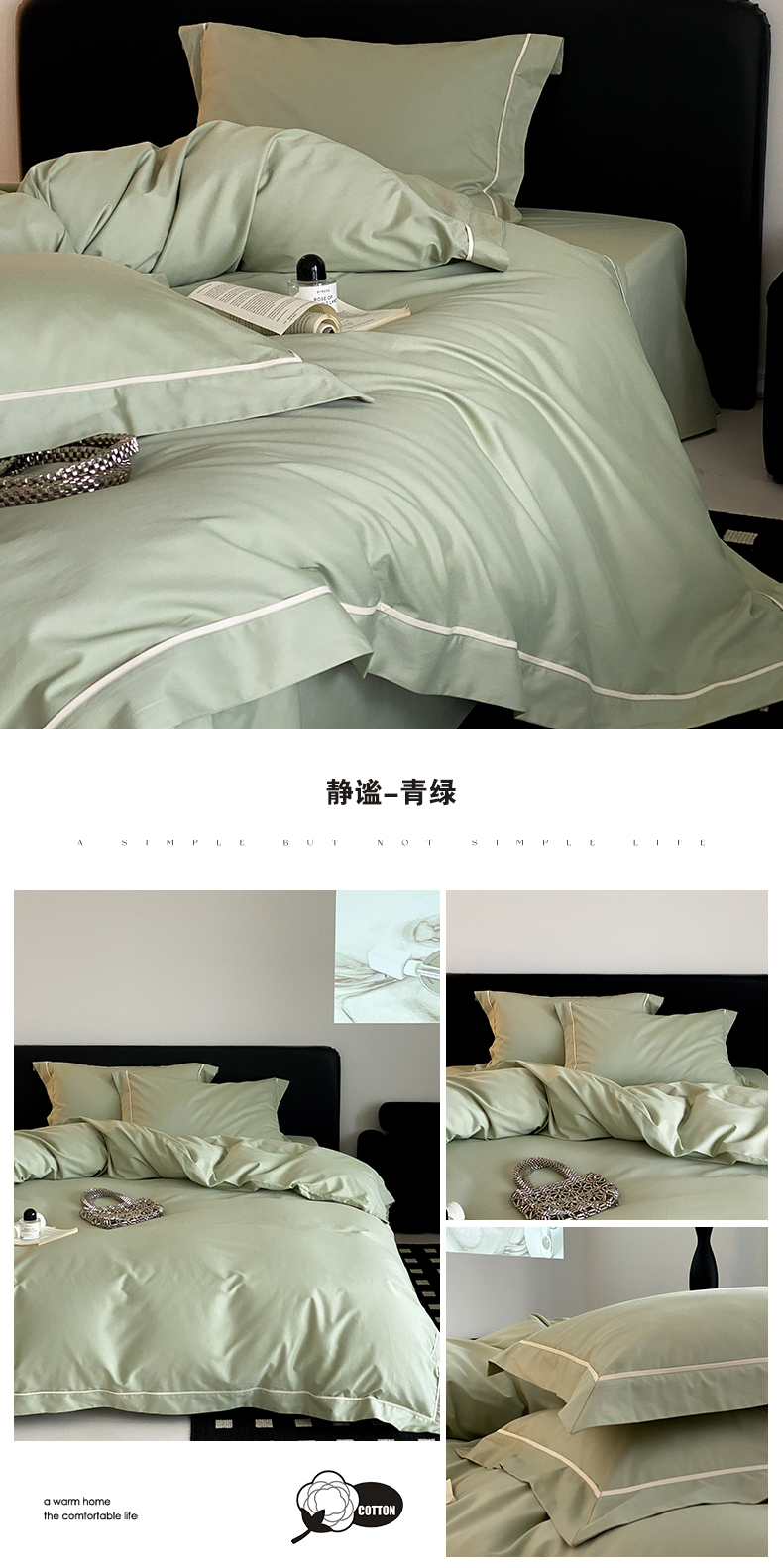 商品名称:云栖家居 2024A类全棉磨毛静谧系列四件套 静谧-青绿