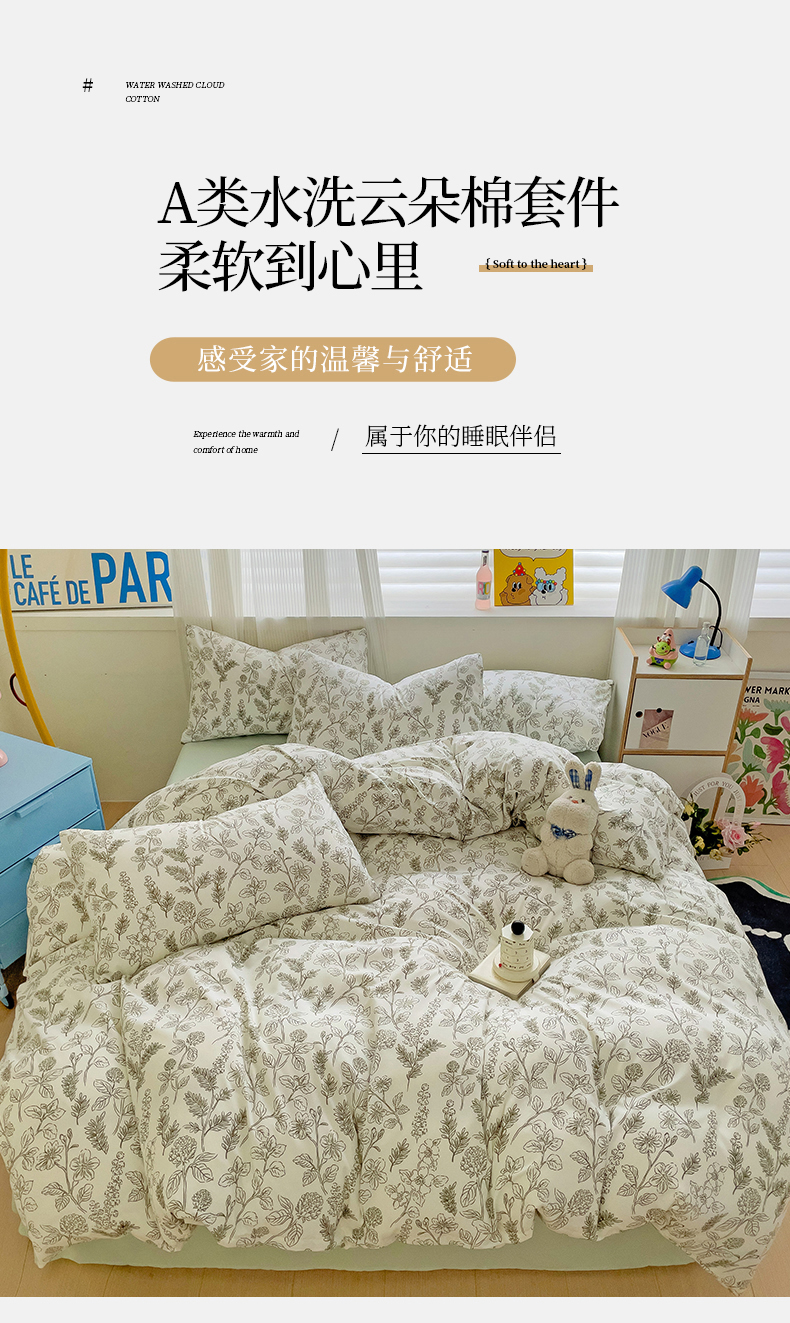 当前位置: 91家纺网 > 商品网购 > 床品套件 > 四件套 > 水洗棉四件套 > 慕晨 2024开学季新款学生宿舍三件套被套小清新卡通超柔水洗云朵棉皱皱泡泡棉四件套 绿色心情