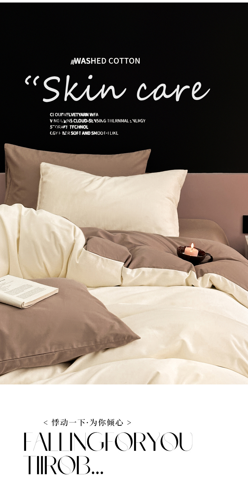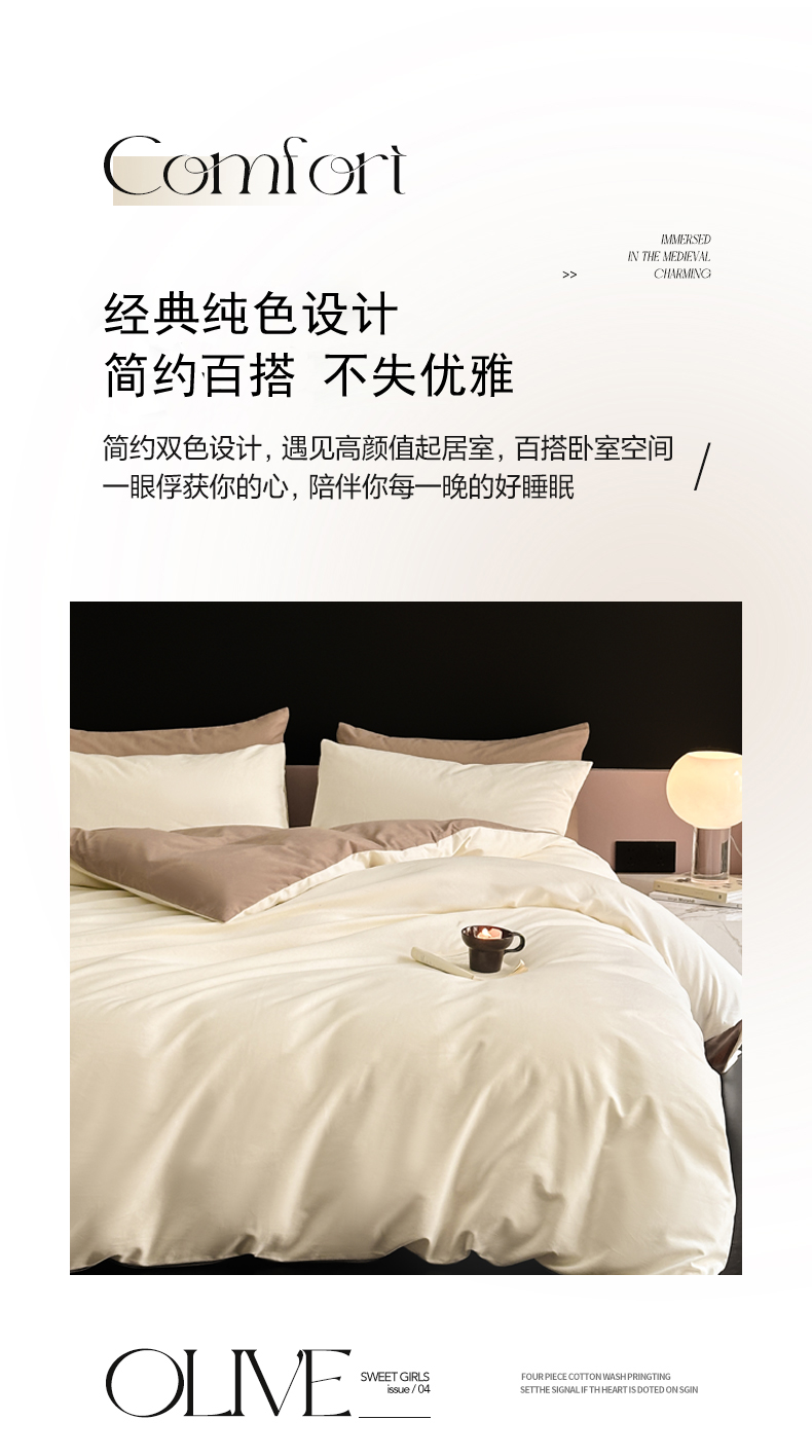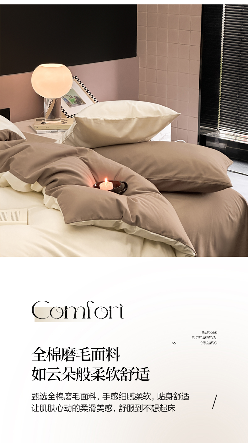 商品名称:柠馨 2024新款全棉磨毛纯色四件套-赫尔墨斯系列 1奶白+拿铁