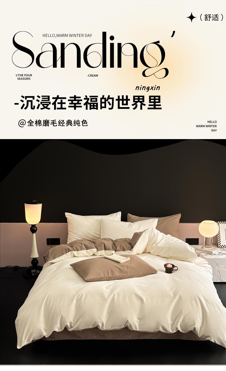 柠馨 2024新款全棉磨毛纯色四件套-赫尔墨斯系列 1奶白+拿铁