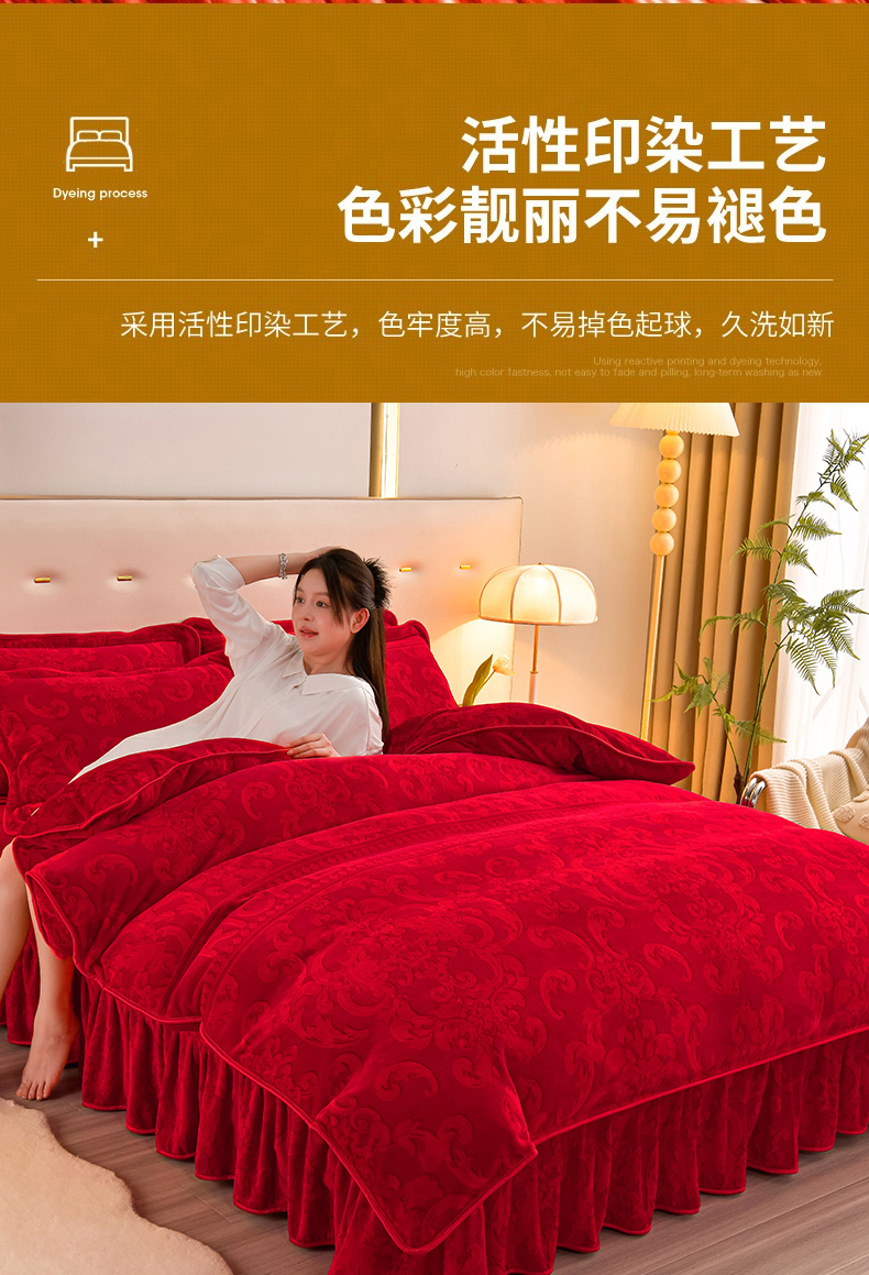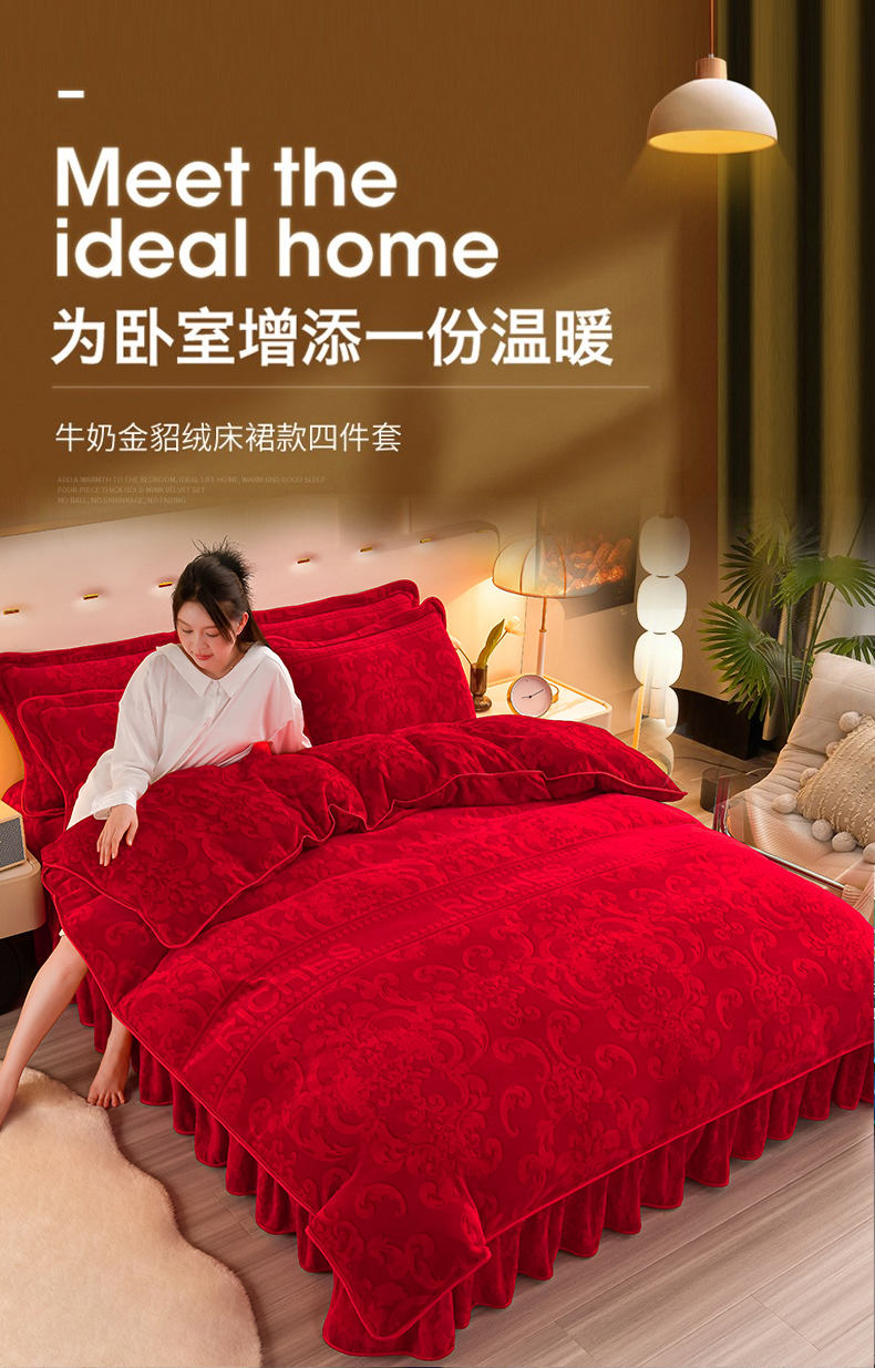 馨梦缘 2025新款小包边款牛奶绒8.5斤高克重床裙款四件套 钟爱一生