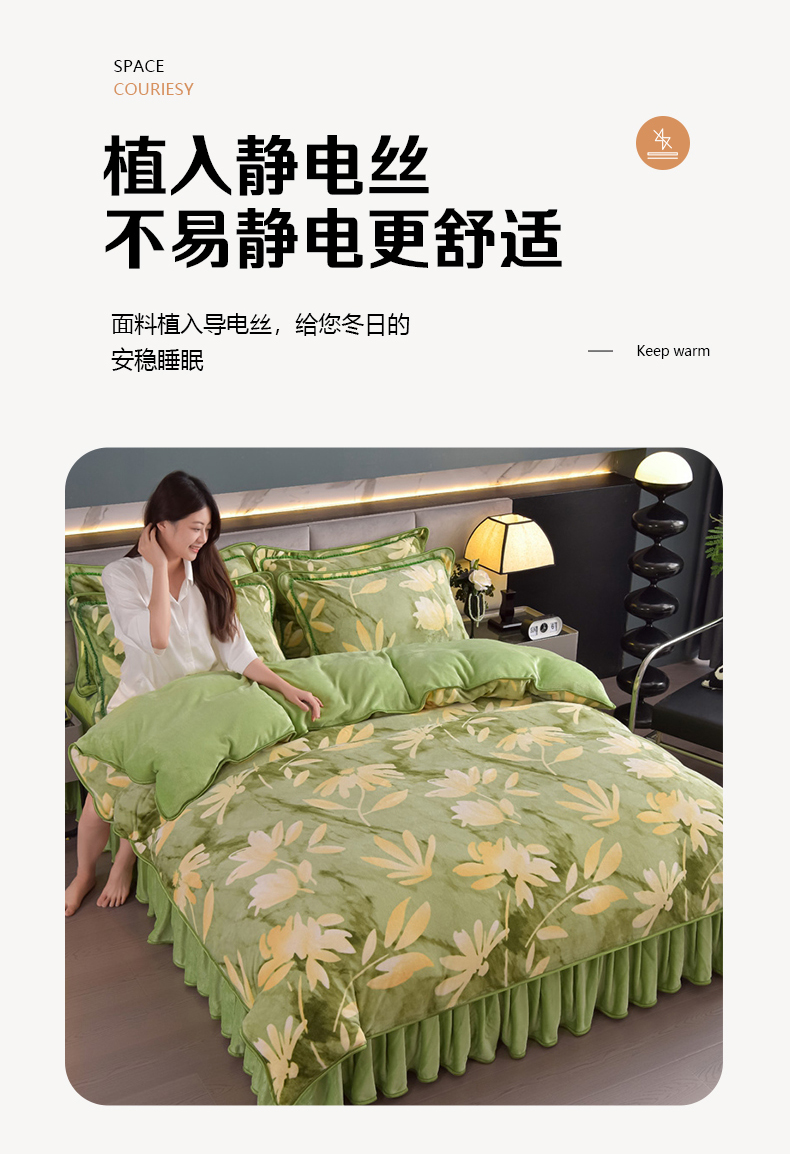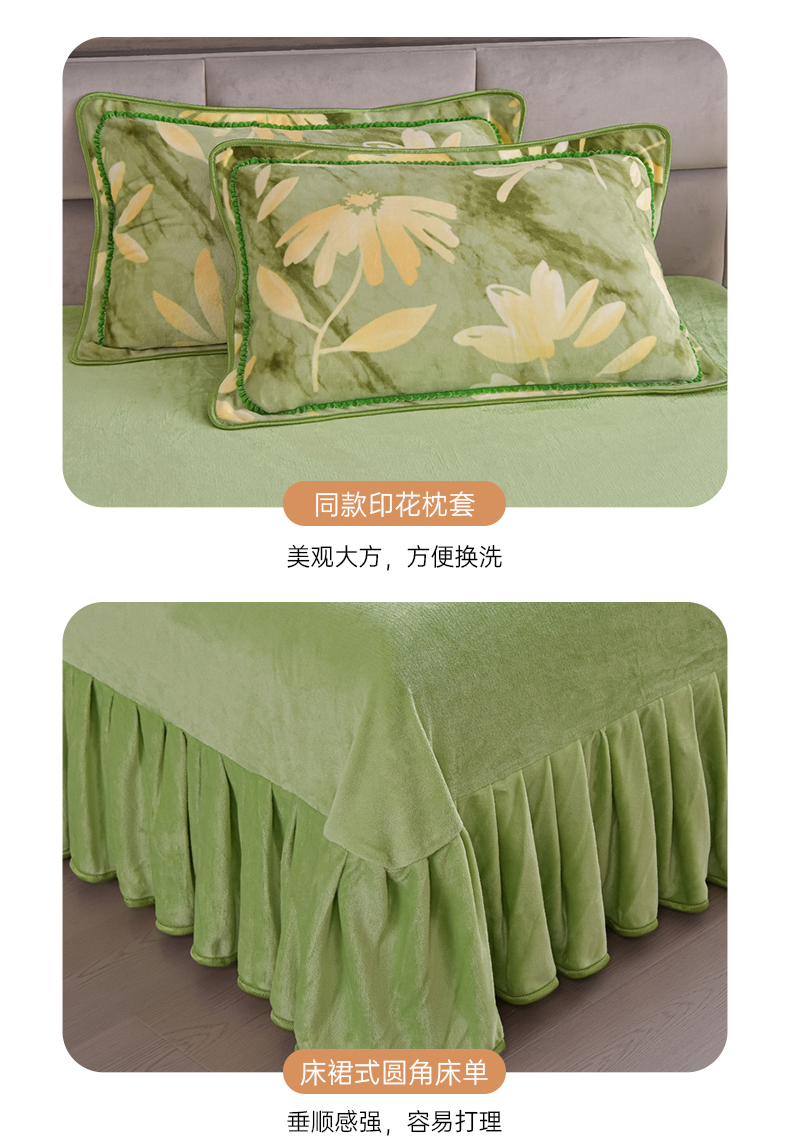锦铭源2025直播印花7斤牛奶绒金貂水晶法莱珊瑚绒四件套床裙款 清雅