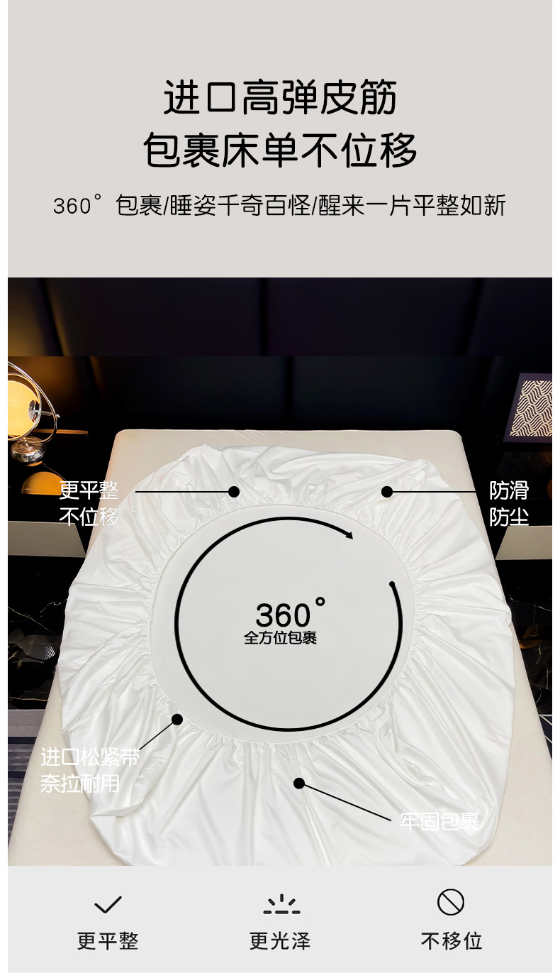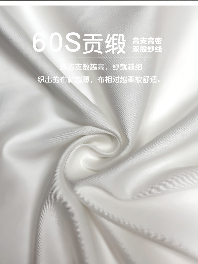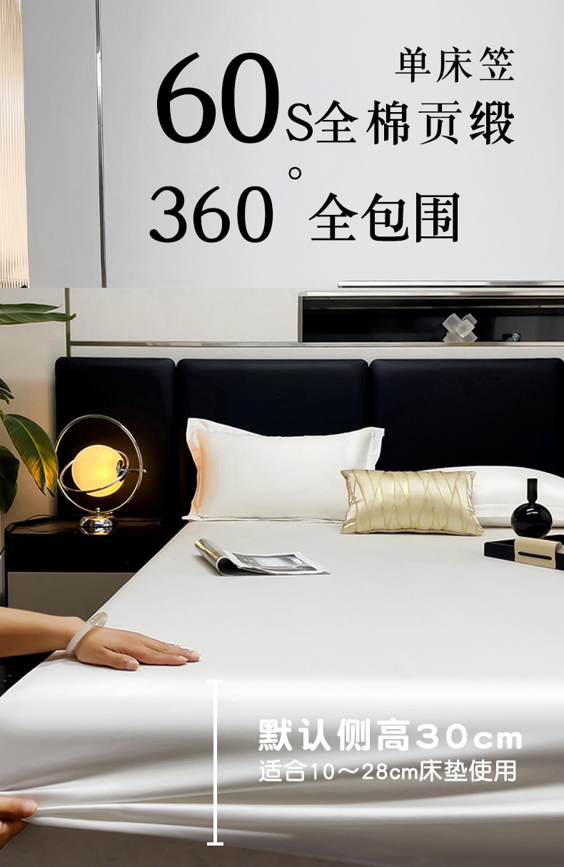 漫时光 2025新款60s全棉贡缎单床笠和单枕套 爵士白