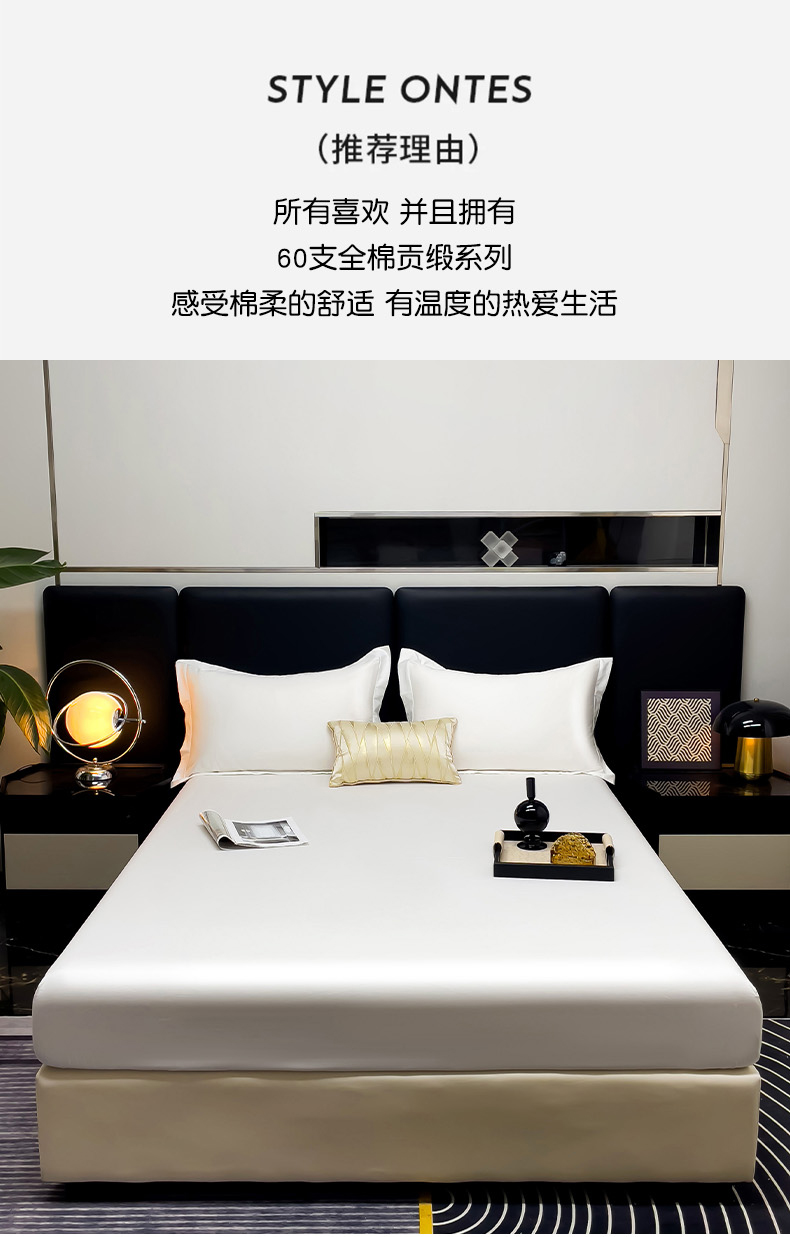 • 91家纺网 家纺一手货源 找家纺 漫时光 2025新款60s全棉贡缎单床笠和单枕套 爵士白