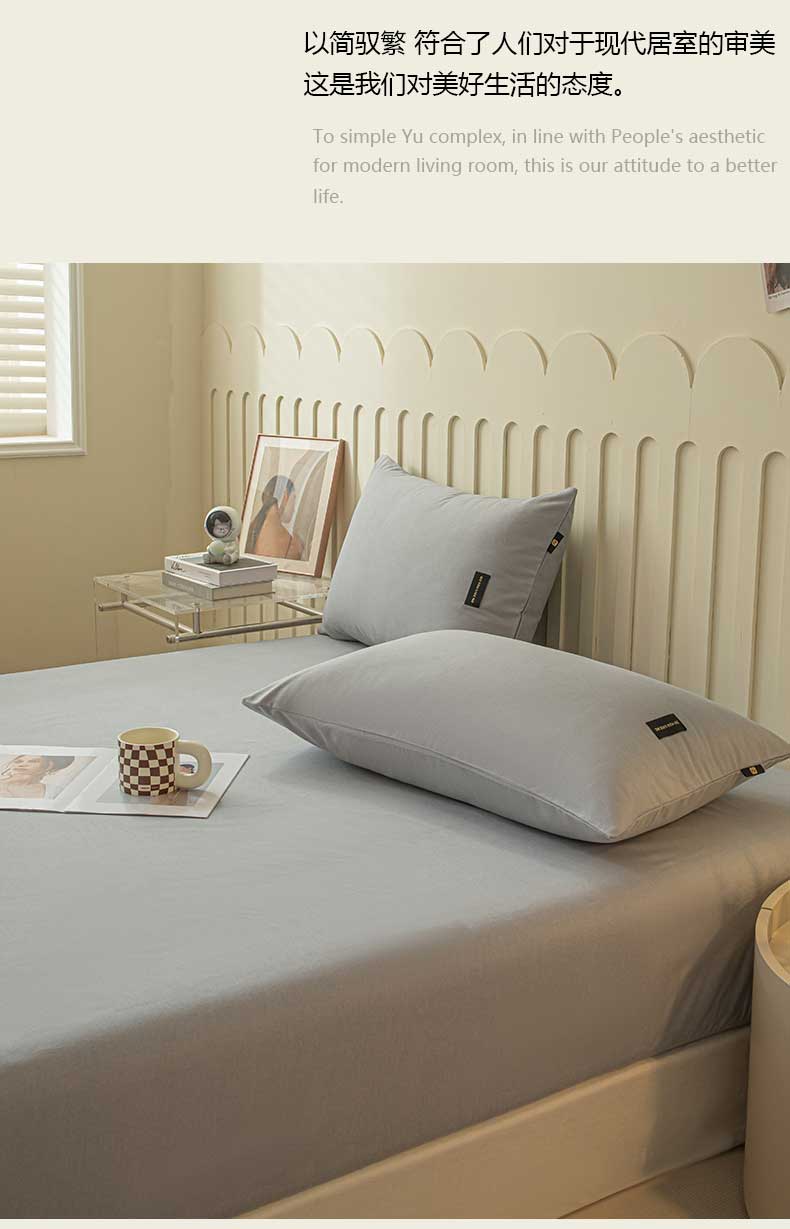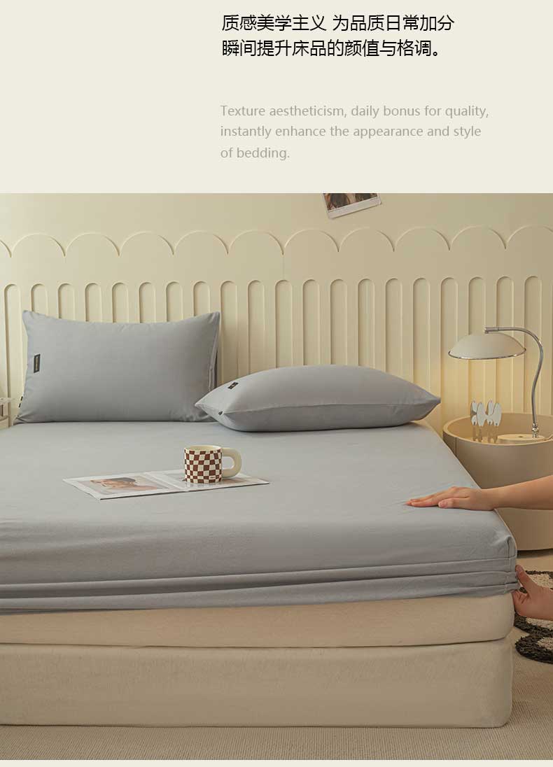涵宸家纺 2024新款原棉纯色织标磨毛单品及套件--床笠 单床笠-浅灰