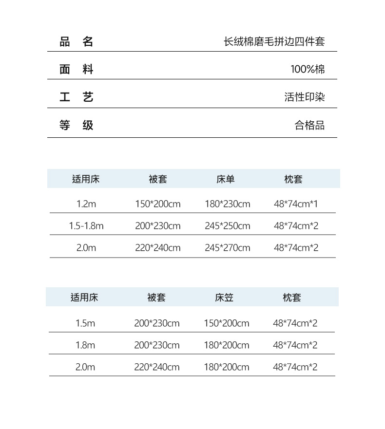1.8m床笠款被套加大四件套 | ¥218.00 |