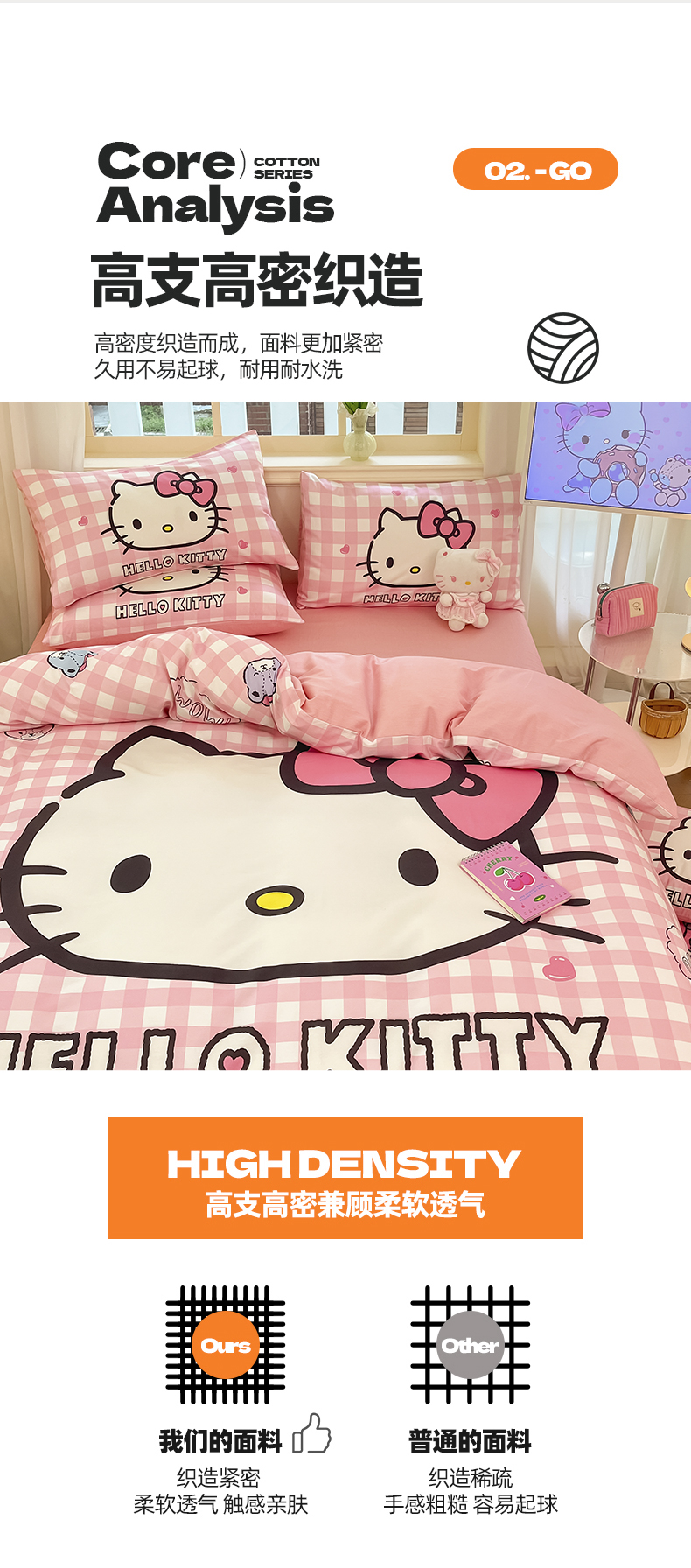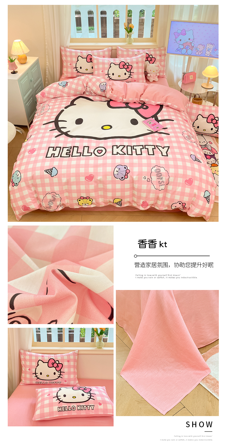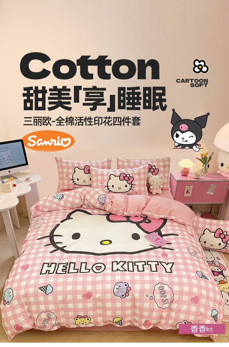 当前位置: 91家纺网 > 商品网购 > 床品套件 > 四件套 > 全棉普通四件套 > 桃子家居 2024纯棉大版三丽鸥卡通平网印花系列四件套 棉大版-D香香kt
