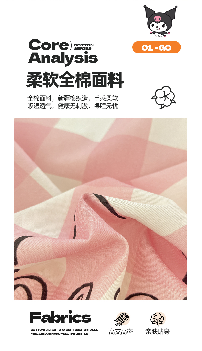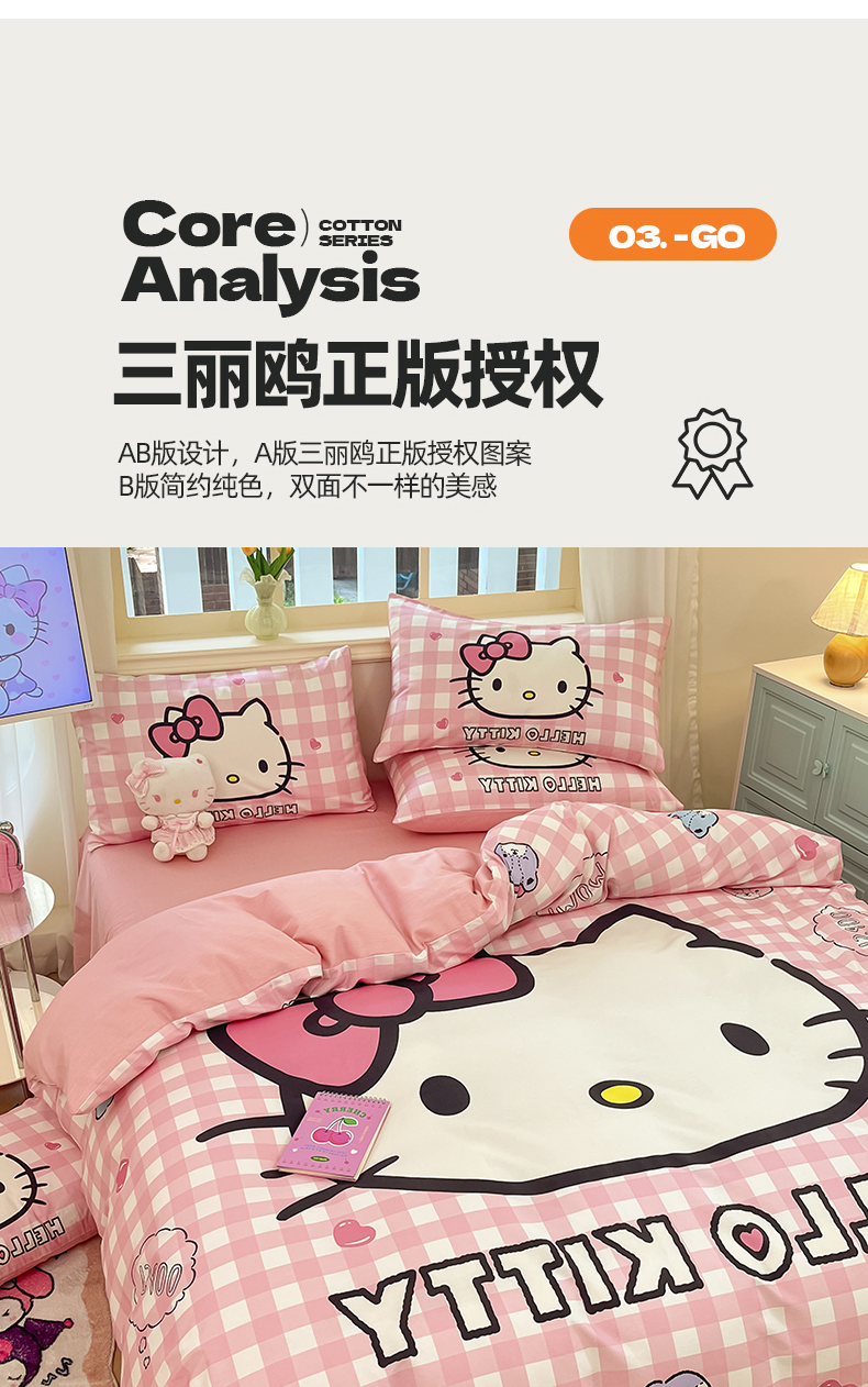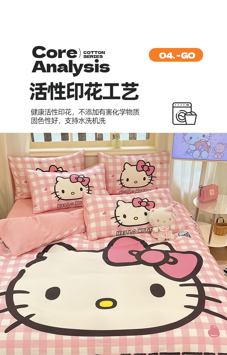当前位置: 91家纺网 > 商品网购 > 床品套件 > 四件套 > 全棉普通四件套 > 桃子家居 2024纯棉大版三丽鸥卡通平网印花系列四件套 棉大版-D香香kt