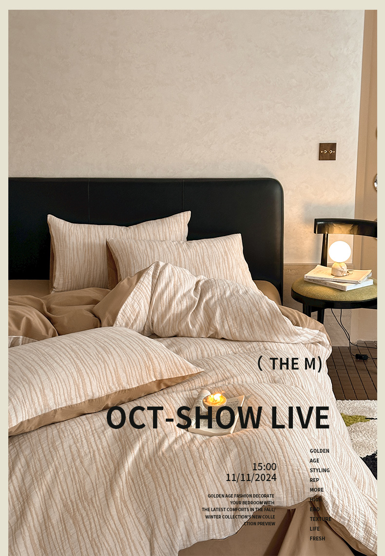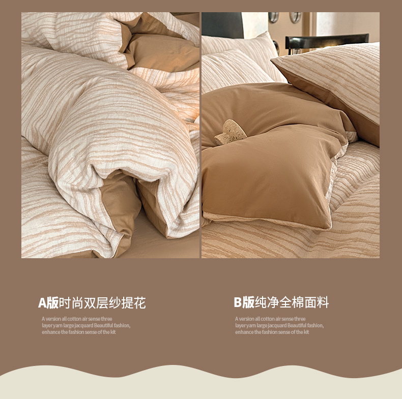 当前位置: 91家纺网 > 商品网购 > 床品套件 > 四件套 > 全棉普通四件套 > ab家纺 2024新款A类全棉三层纱提花四件套--米亚 米亚 米咖