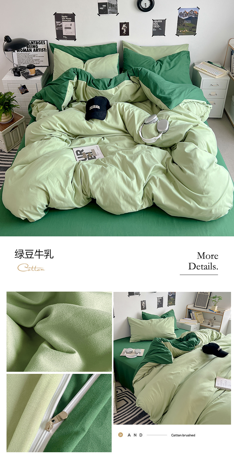 商品名称:优卡迪家纺馆 2024新款水洗棉105克纯色双拼四件套系列(下载文件夹包含买家秀) 绿豆牛乳