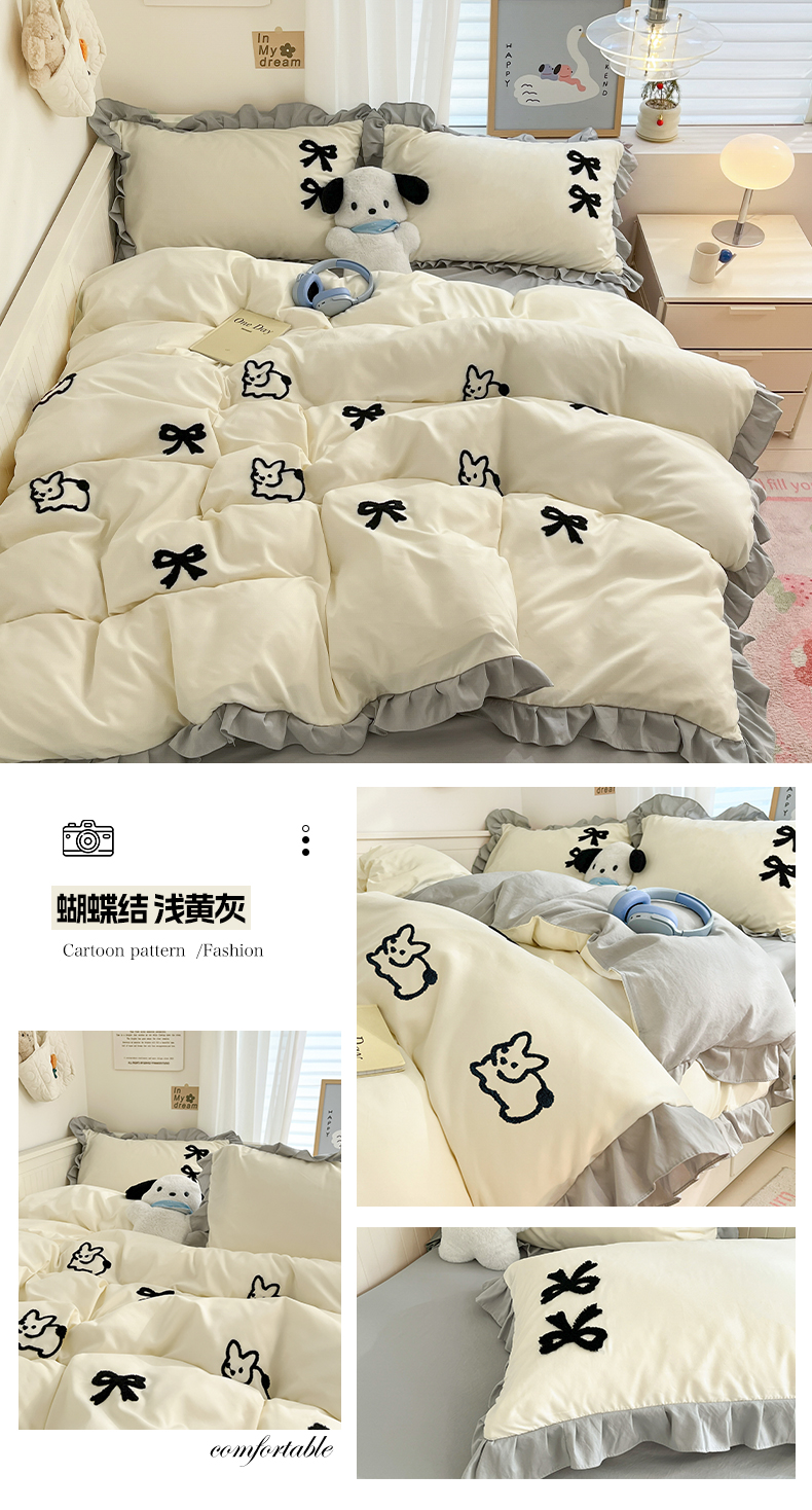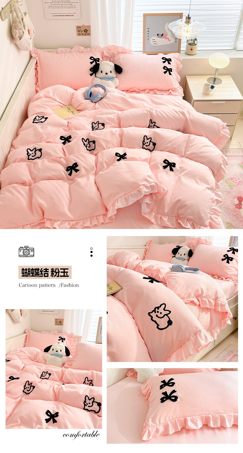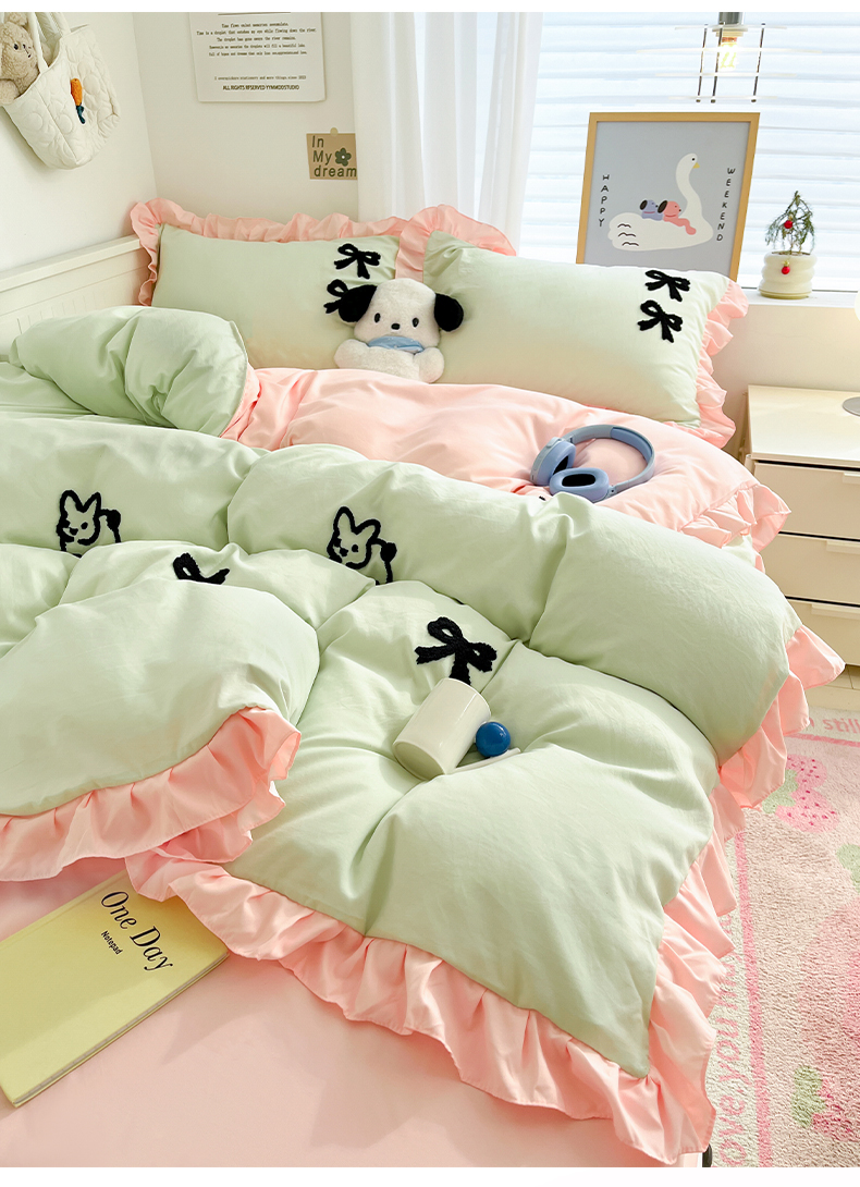 (总)泉欣家纺 2024韩式公主风毛巾绣花水洗棉四件套专版花型,蝴蝶结-粉玉,蝴蝶结-抹茶绿粉,蝴蝶结-浅黄灰,蝴蝶结-浅蓝粉