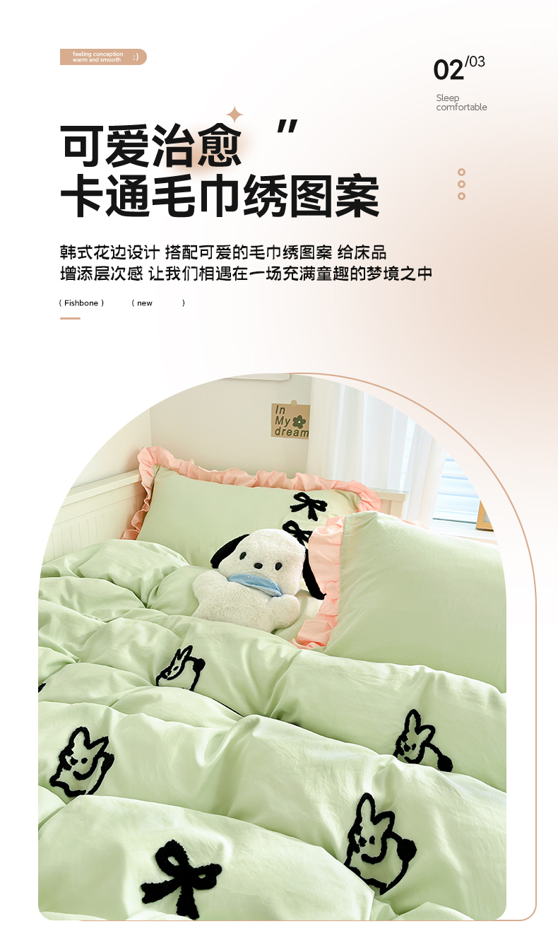 (总)泉欣家纺 2026新品网红卡通公主风毛巾绣花水洗棉四件套(专版花型)风铃团团,风铃团团 粉玉,风铃团团 粉白,风铃团团 粉紫,风铃团团 蓝粉,风铃团团 奶黄粉
