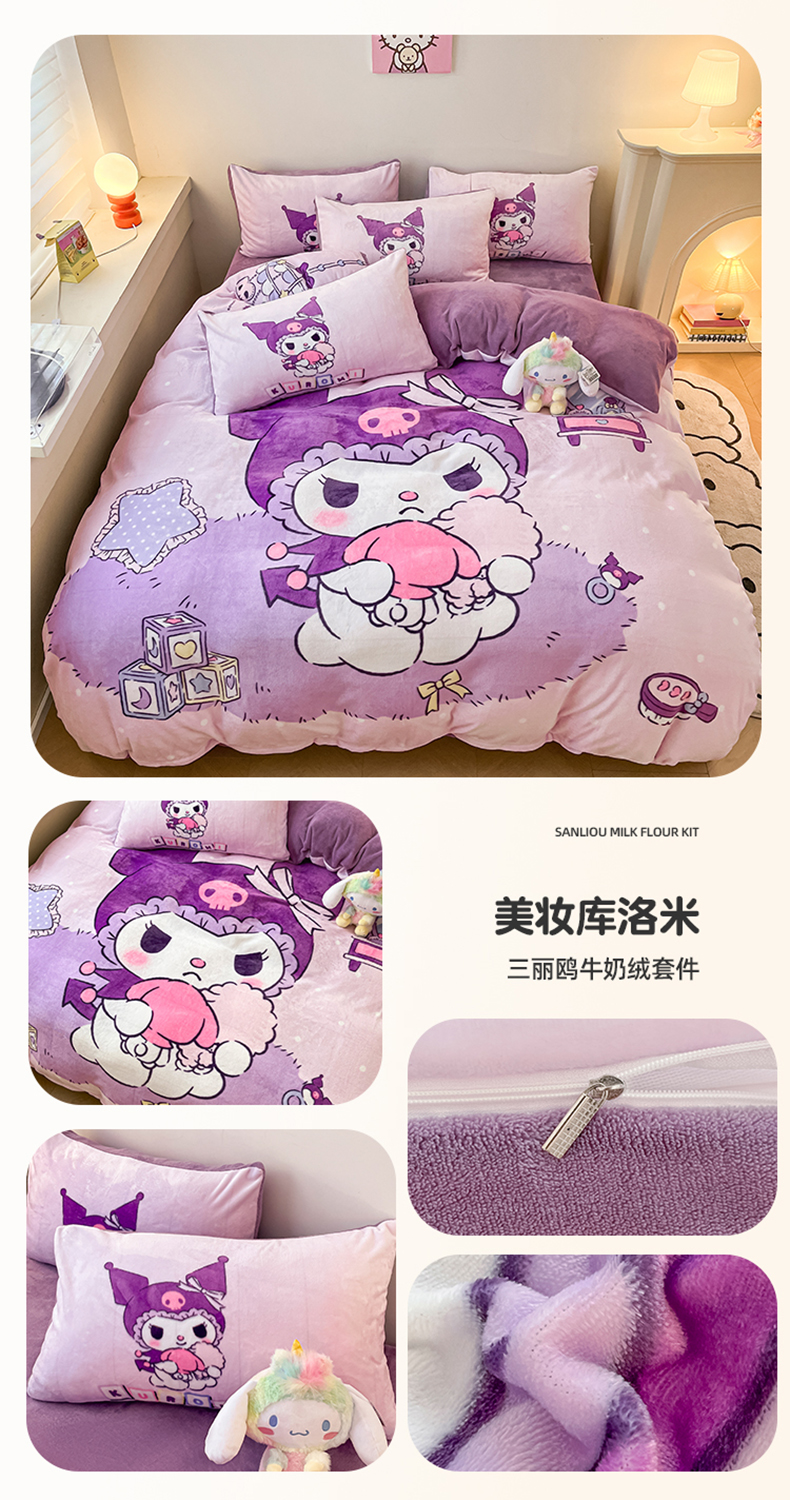 当前位置: 91家纺网 > 商品网购 > 床品套件 > 四件套 > 牛奶绒四件套 > 孩子王家纺 2024新款正版授权三丽鸥库洛米大版卡通学生宿舍双面加厚牛奶绒系列四件套--提供买家秀 美妆库洛米