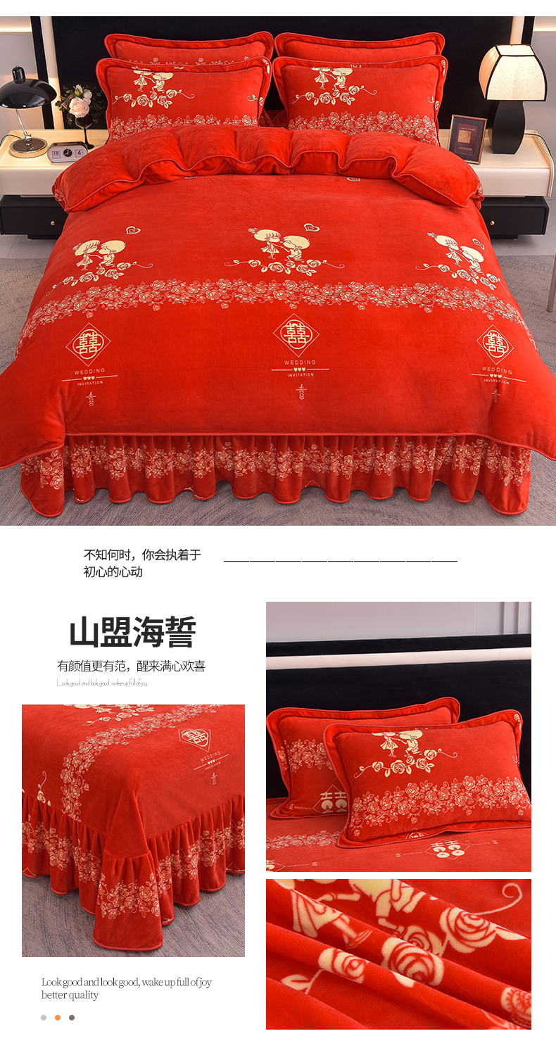 商品名称:佳品居 2025新款8斤床裙款牛奶绒四件套 山盟海誓