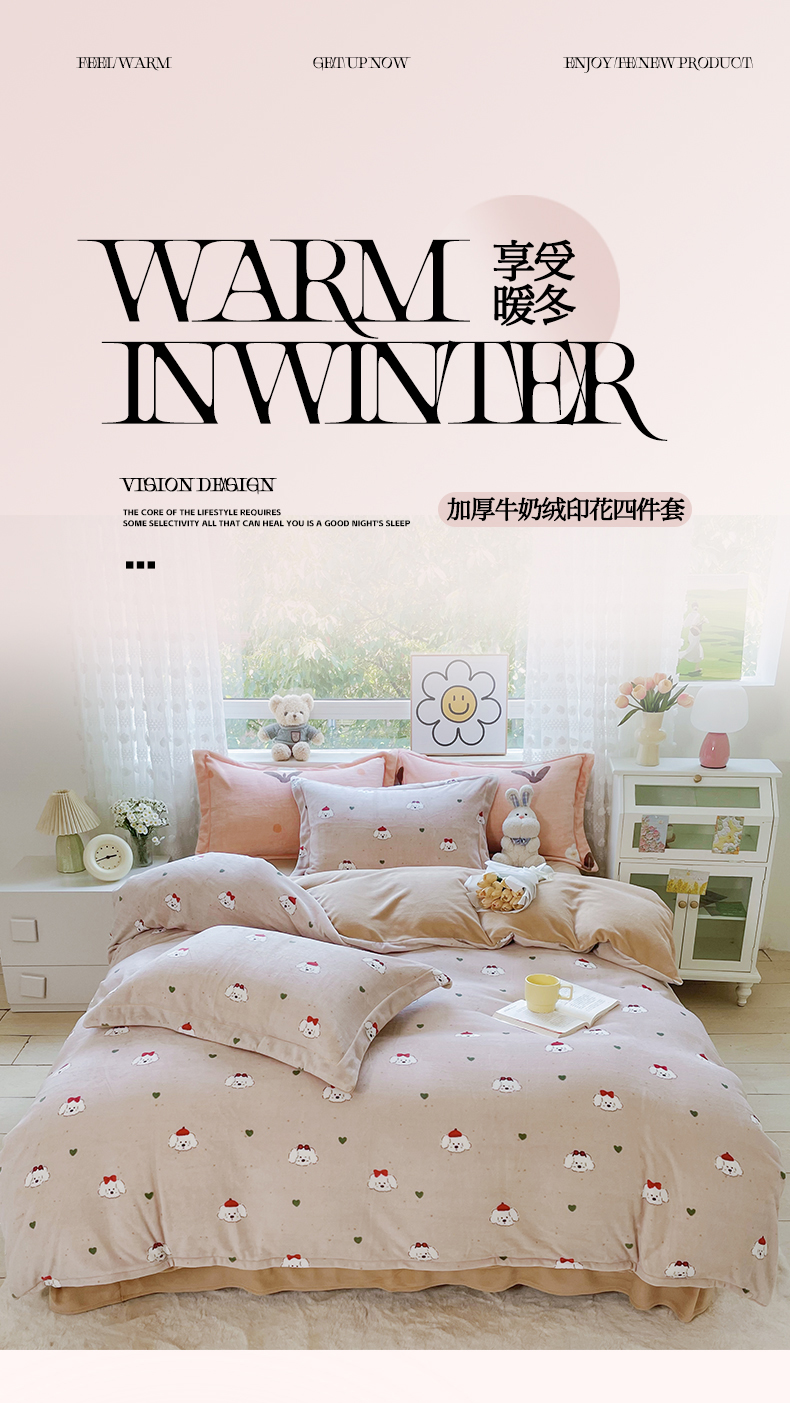 商品名称:(总)锦罗绣 2024新款加厚牛奶绒四件套印花四件套单被套