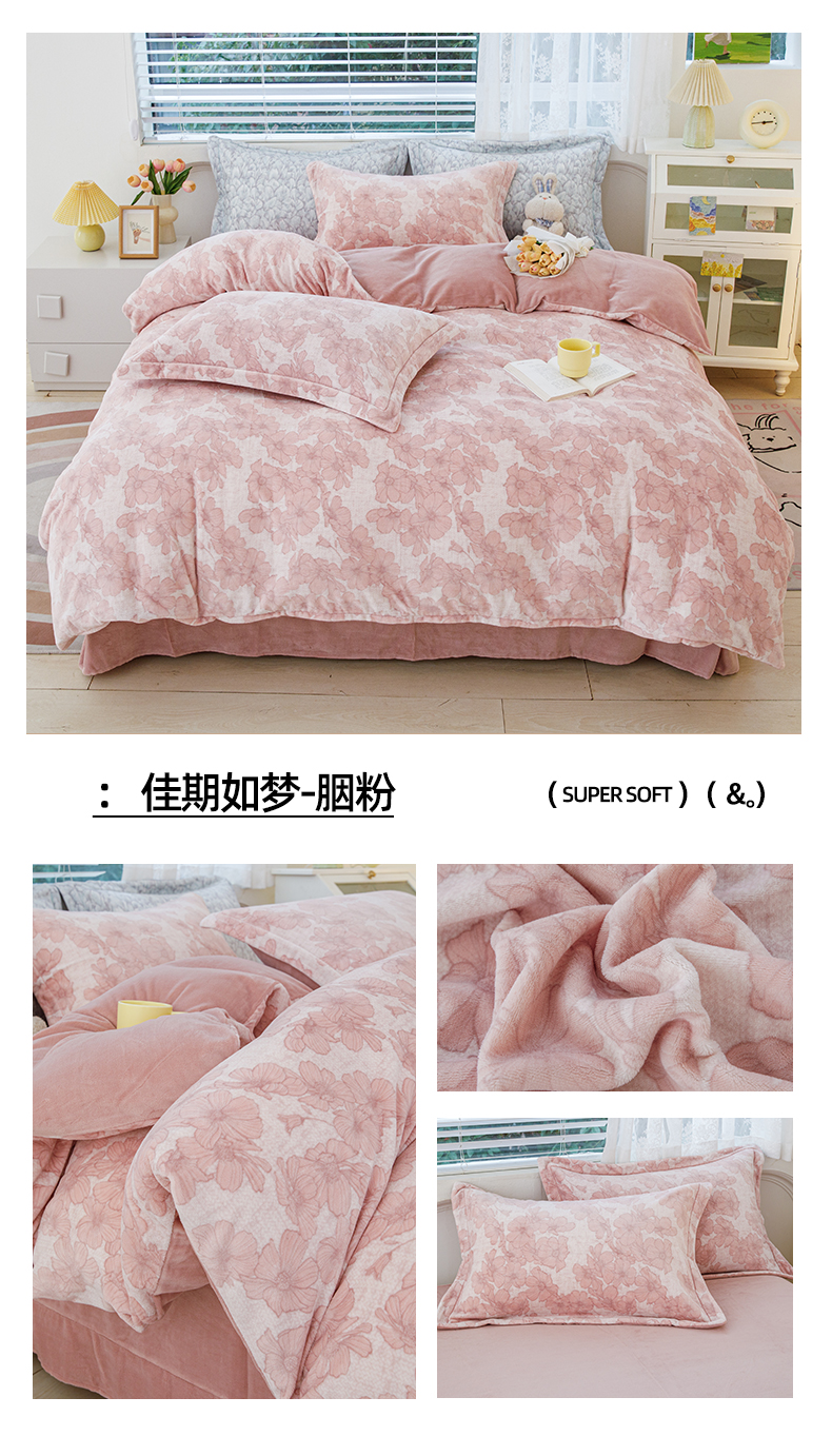 (总)锦罗绣 2025新款全消光烂花230克牛奶绒四件套,花想容,梵希,洛伊绿,玫瑰香,梦幻花园,向阳而生,几何-蓝,几何-奶白,千鸟格-水蓝,银杏叶-灰,H-玉,粉玫瑰,提花豆沙,提花灰