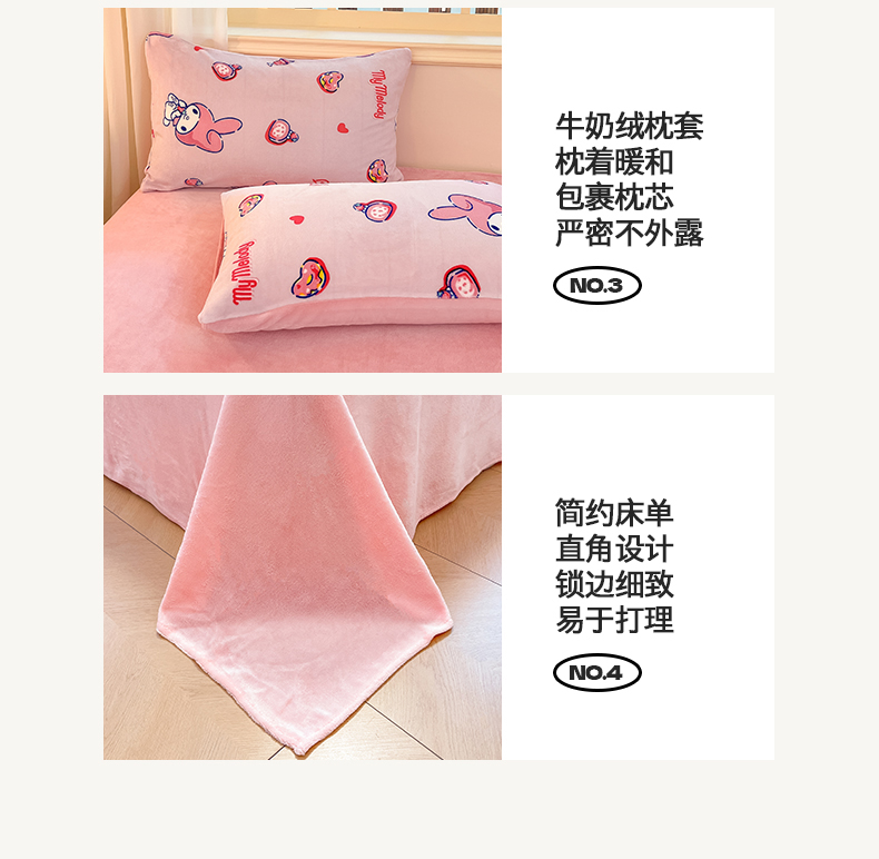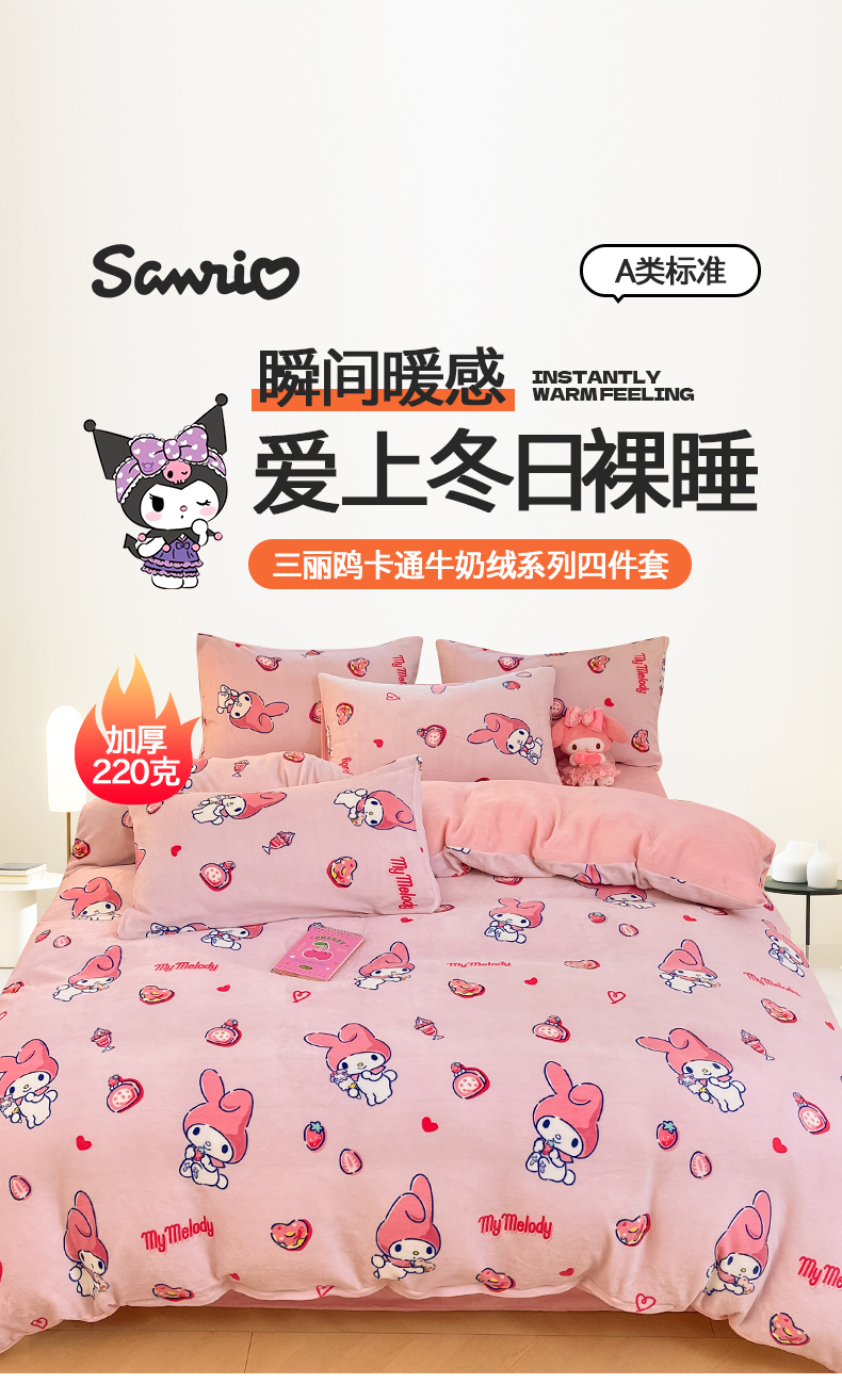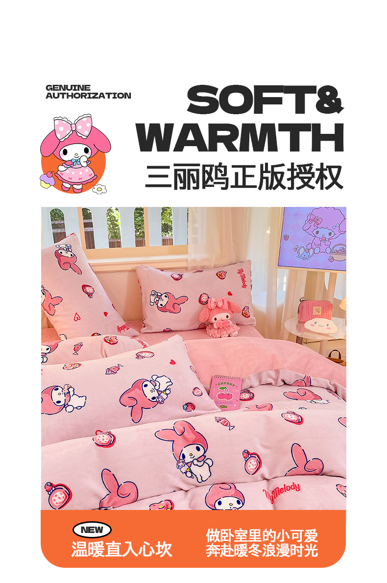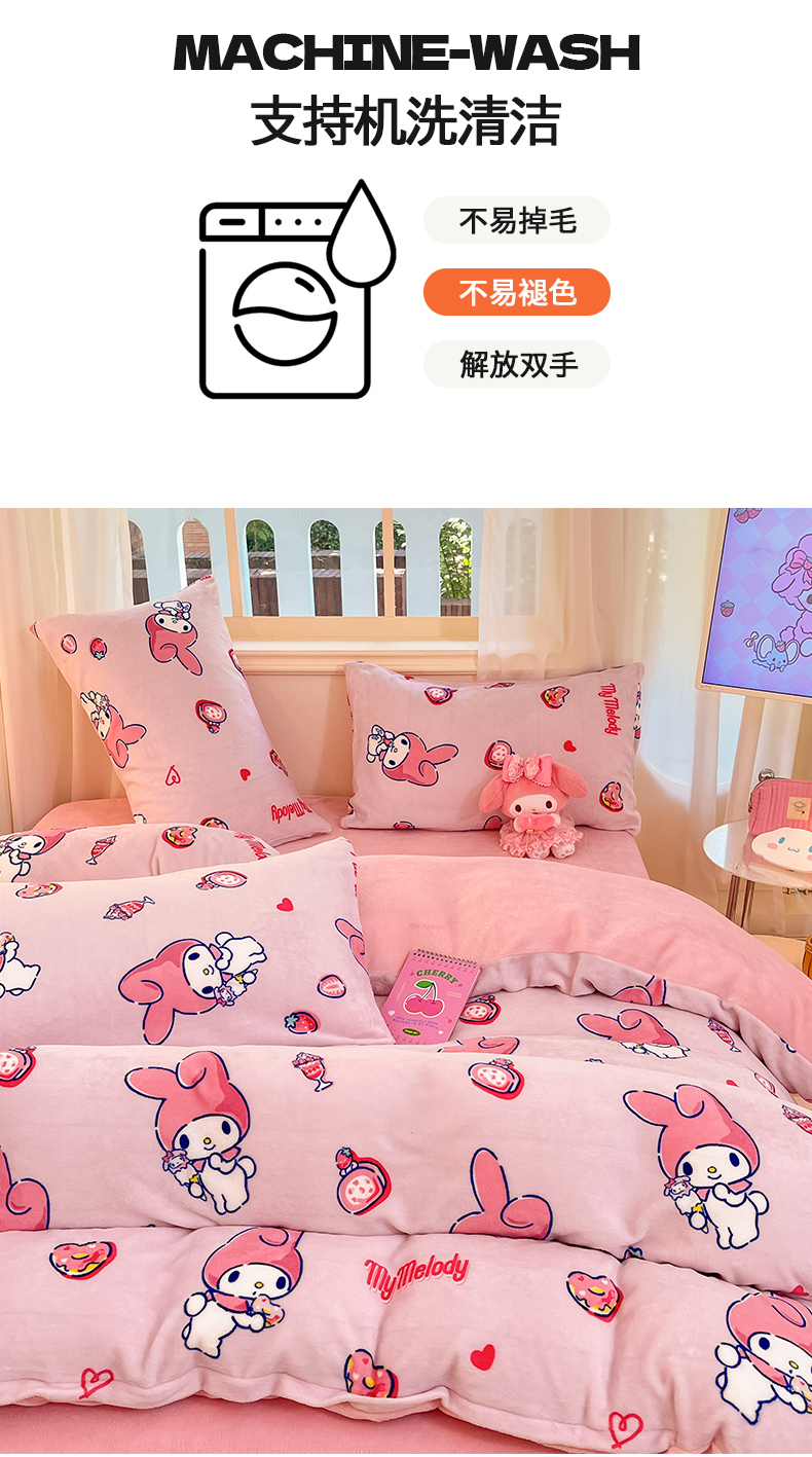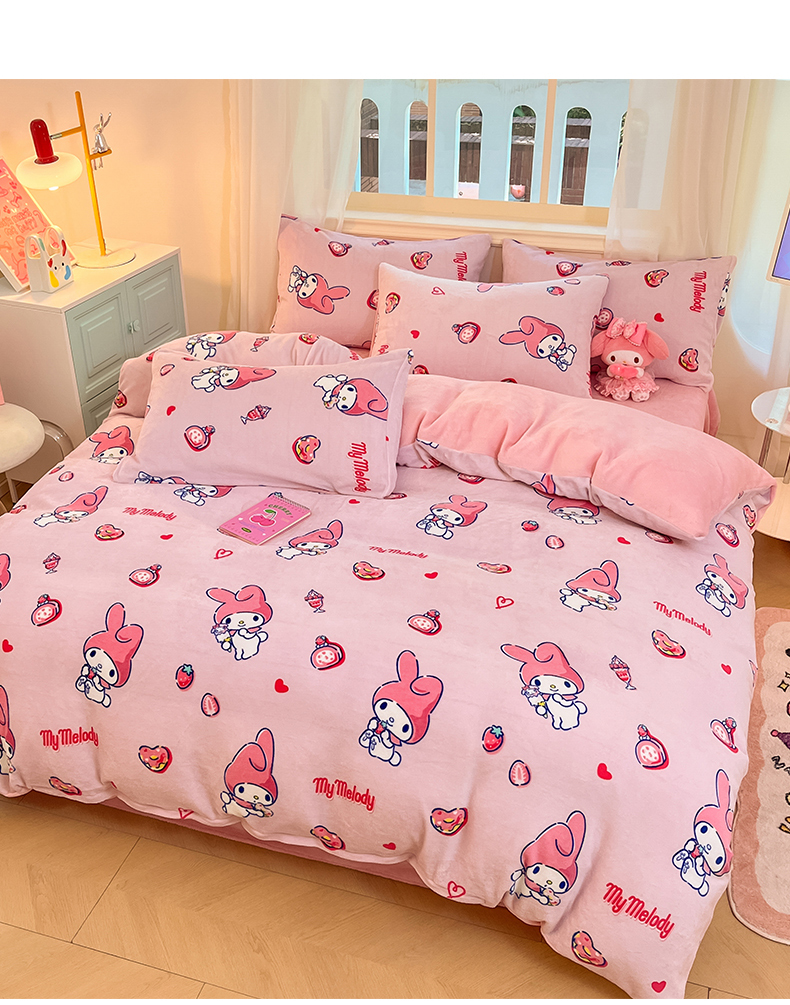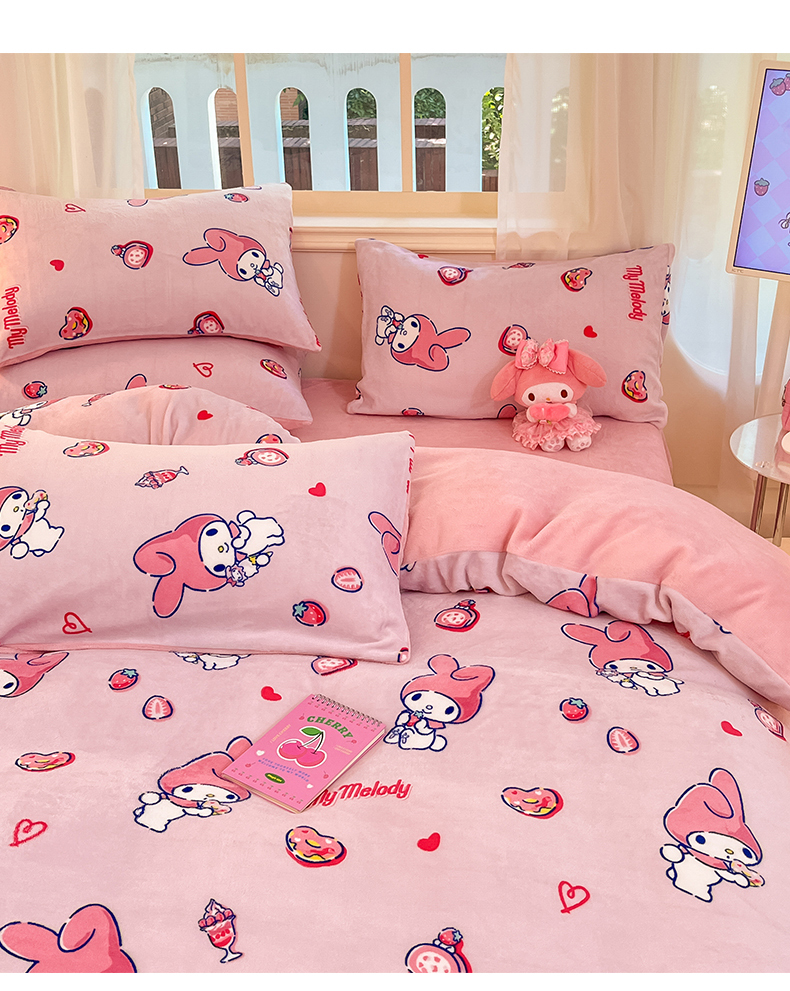 当前位置: 91家纺网 > 商品网购 > 床品套件 > 四件套 > 牛奶绒四件套 > 2024新品正版三丽鸥授权卡通加厚高克重牛奶绒系列四件套 绒三丽鸥-莓莓美乐蒂