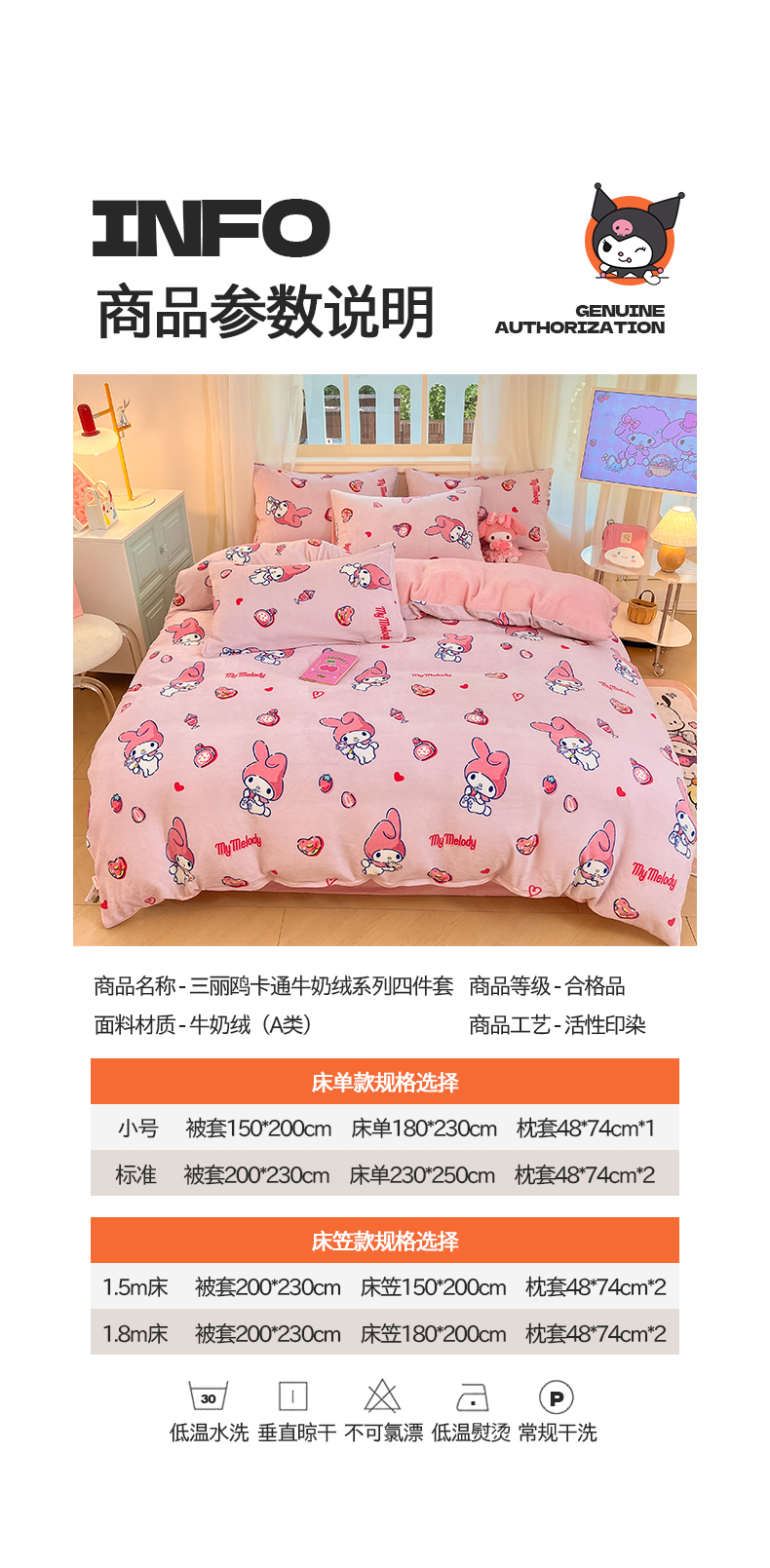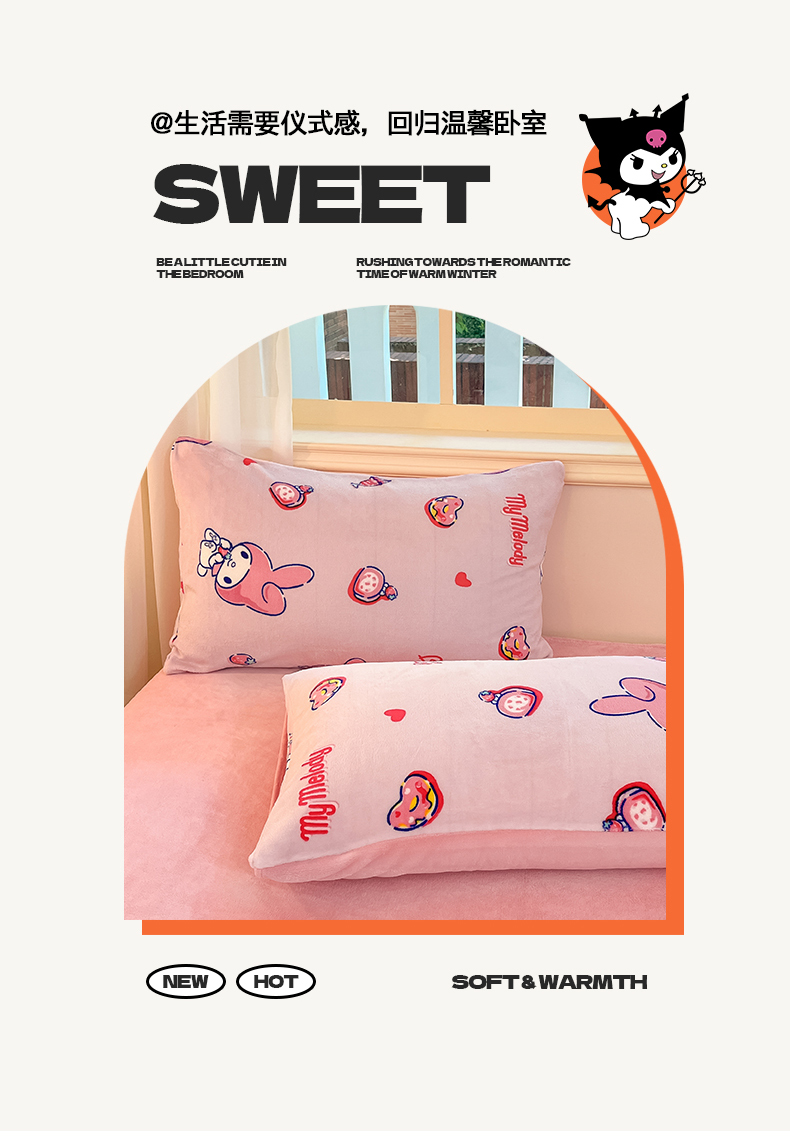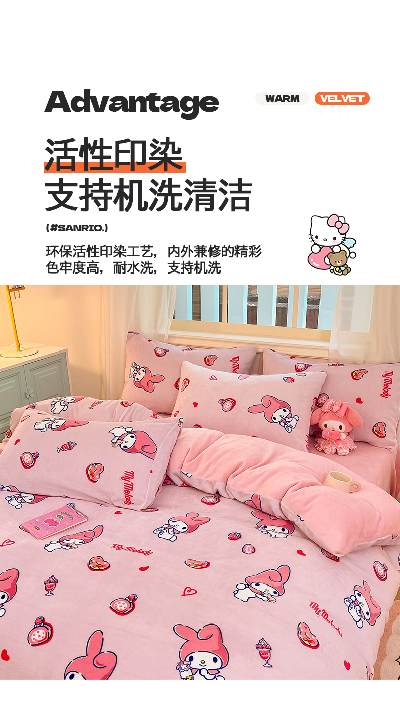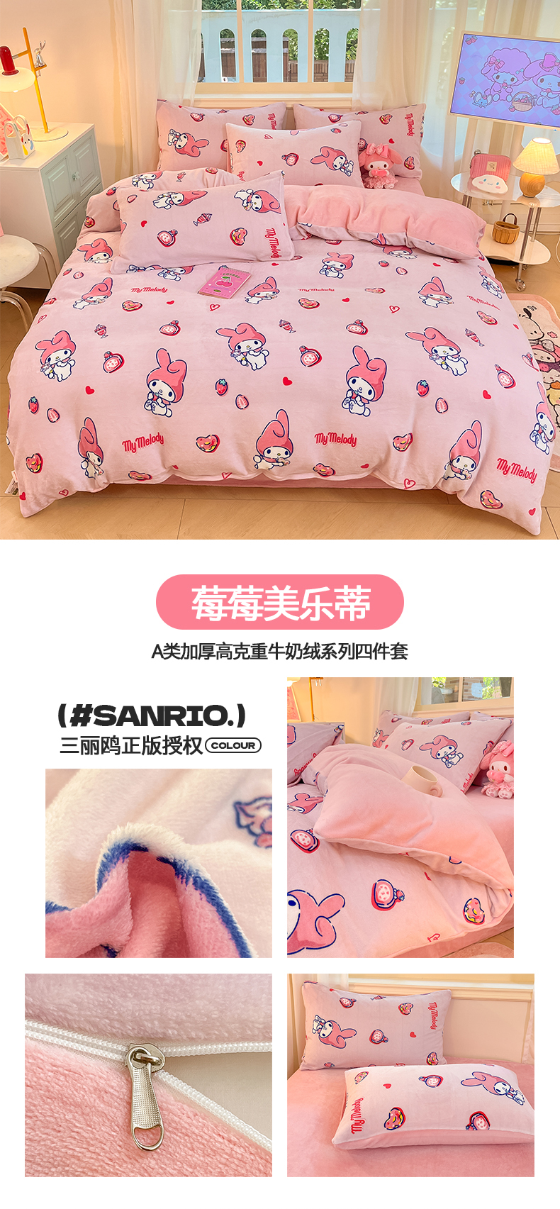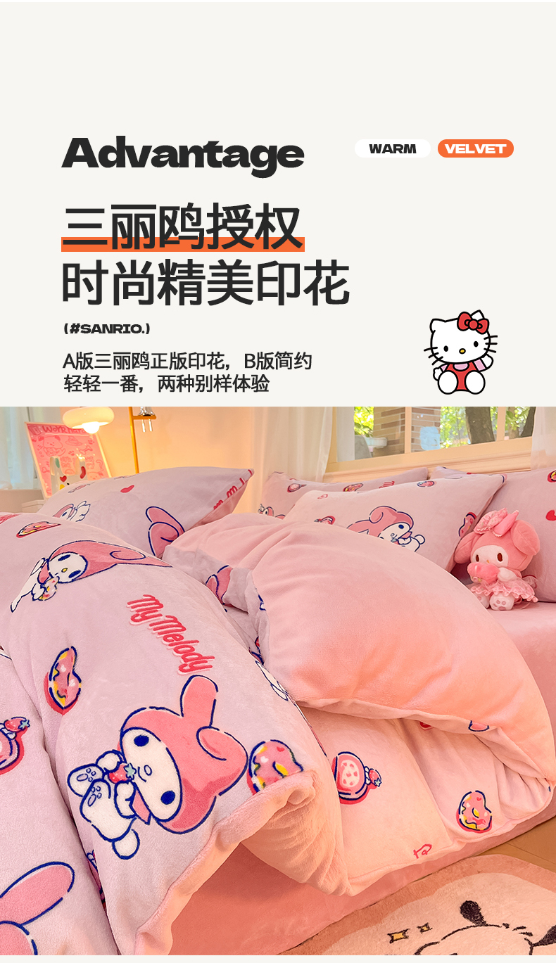 当前位置: 91家纺网 > 商品网购 > 床品套件 > 四件套 > 牛奶绒四件套 > 2024新品正版三丽鸥授权卡通加厚高克重牛奶绒系列四件套 绒三丽鸥-莓莓美乐蒂