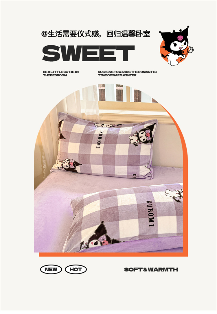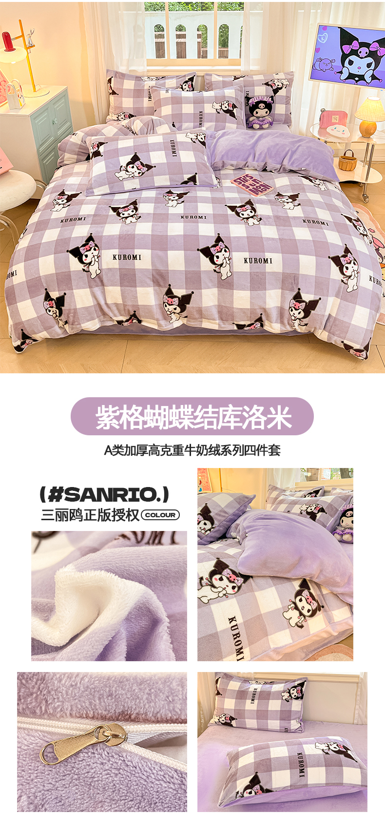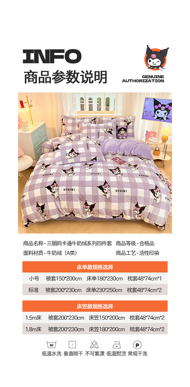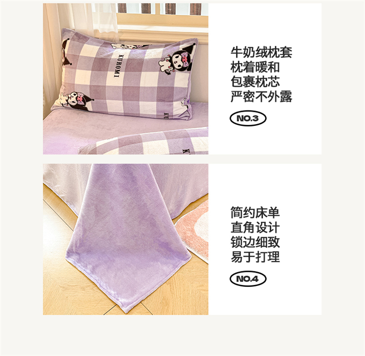 当前位置: 91家纺网 > 商品网购 > 床品套件 > 四件套 > 牛奶绒四件套 > 2024新品正版三丽鸥授权卡通加厚高克重牛奶绒系列四件套 绒三丽鸥-紫格蝴蝶结库洛米