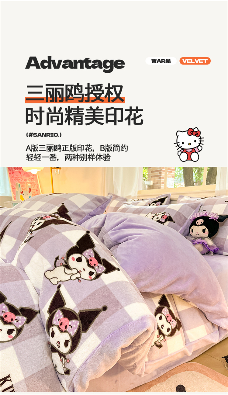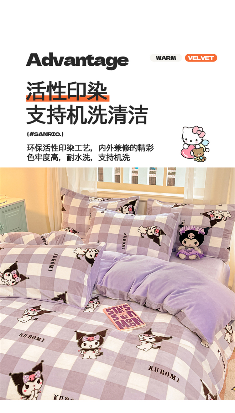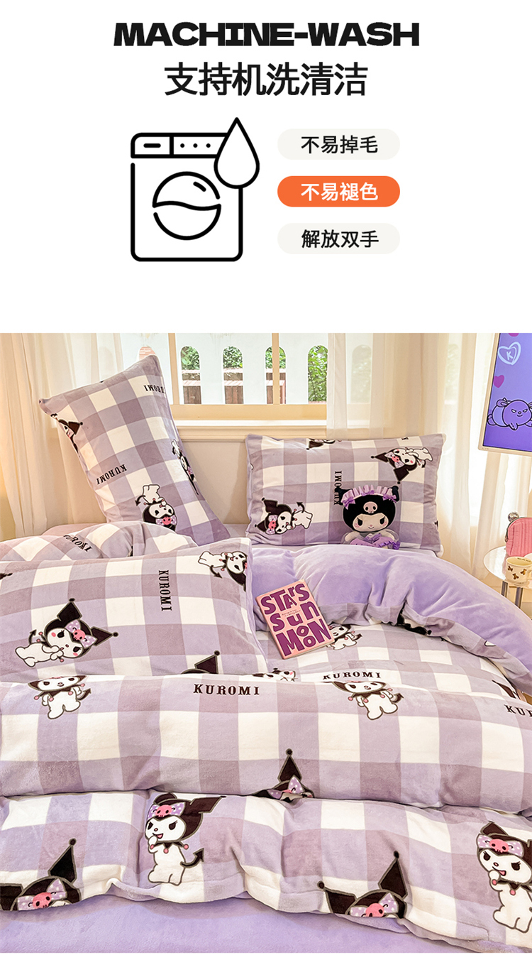 当前位置: 91家纺网 > 商品网购 > 床品套件 > 四件套 > 牛奶绒四件套 > 2024新品正版三丽鸥授权卡通加厚高克重牛奶绒系列四件套 绒三丽鸥-紫格蝴蝶结库洛米