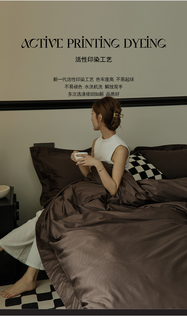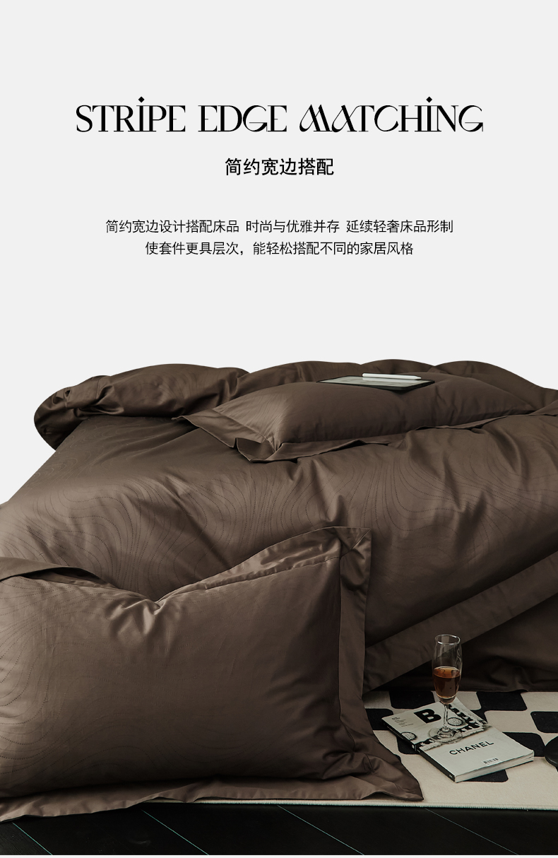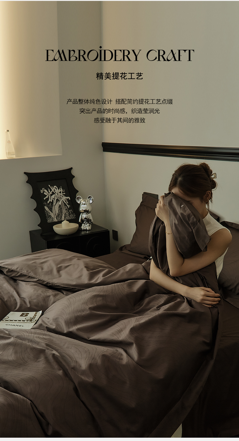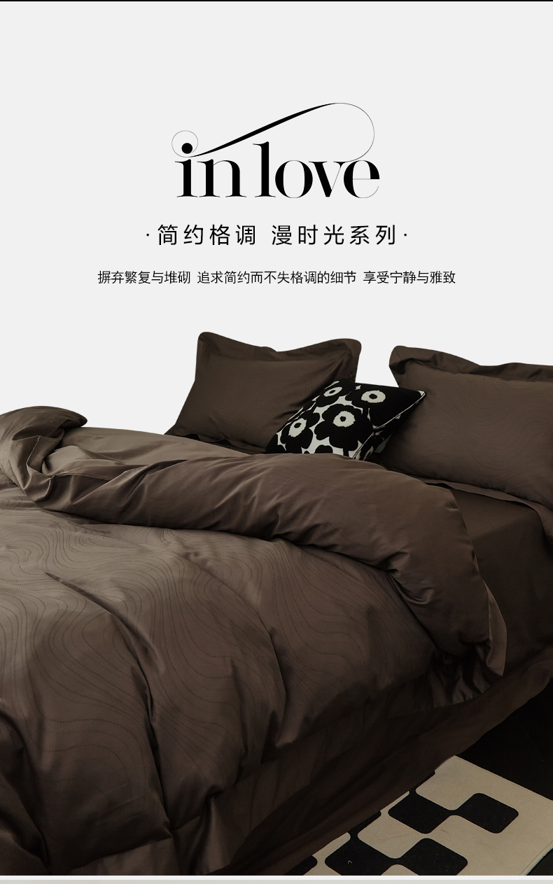 当前位置: 91家纺网 > 商品网购 > 床品套件 > 四件套 > 长绒棉四件套 > 2024新款60支长绒棉提花四件套--漫时光系列(英文版) 漫时光-深咖