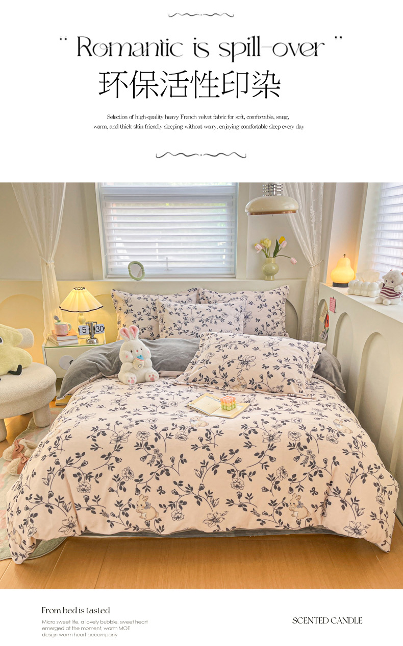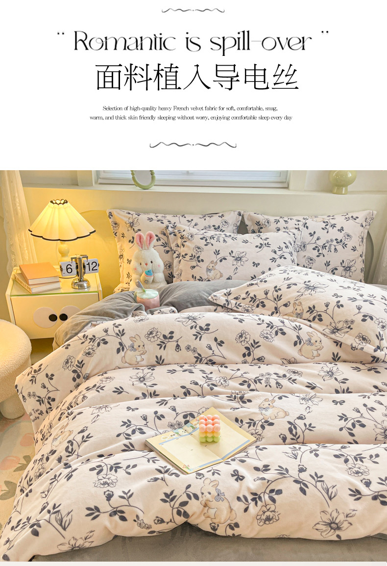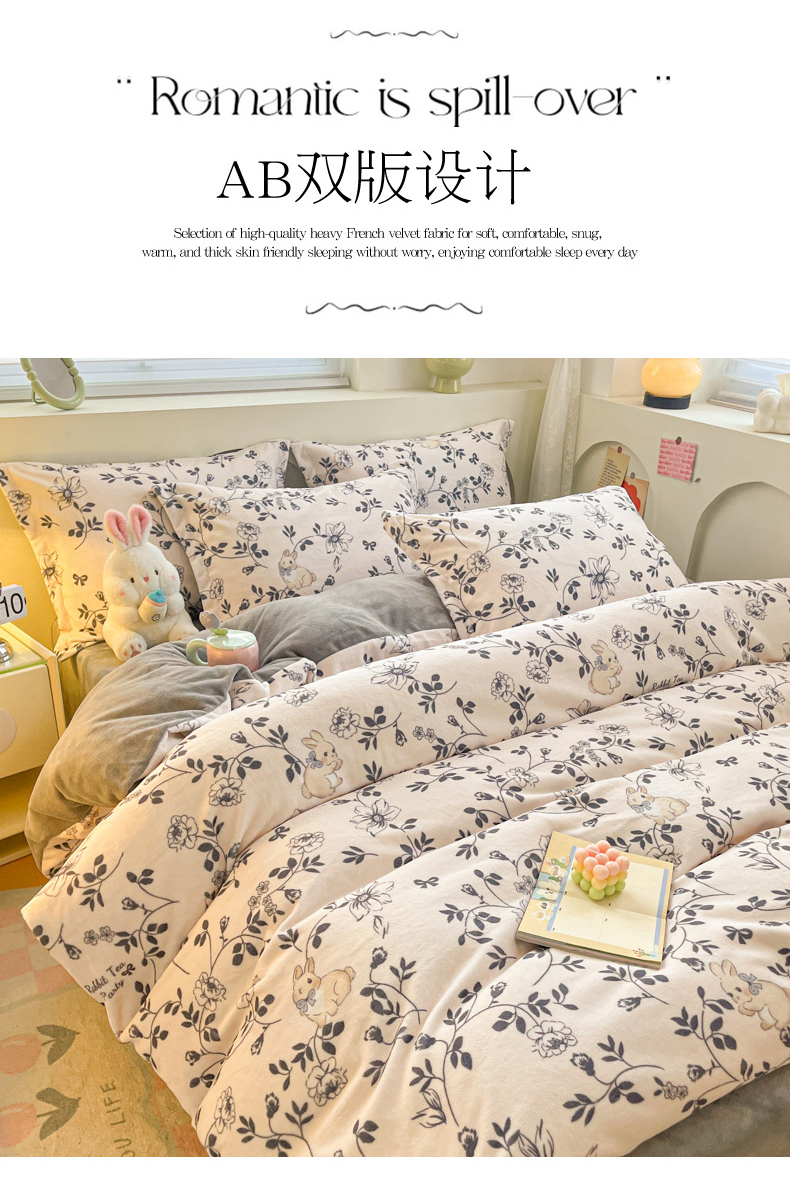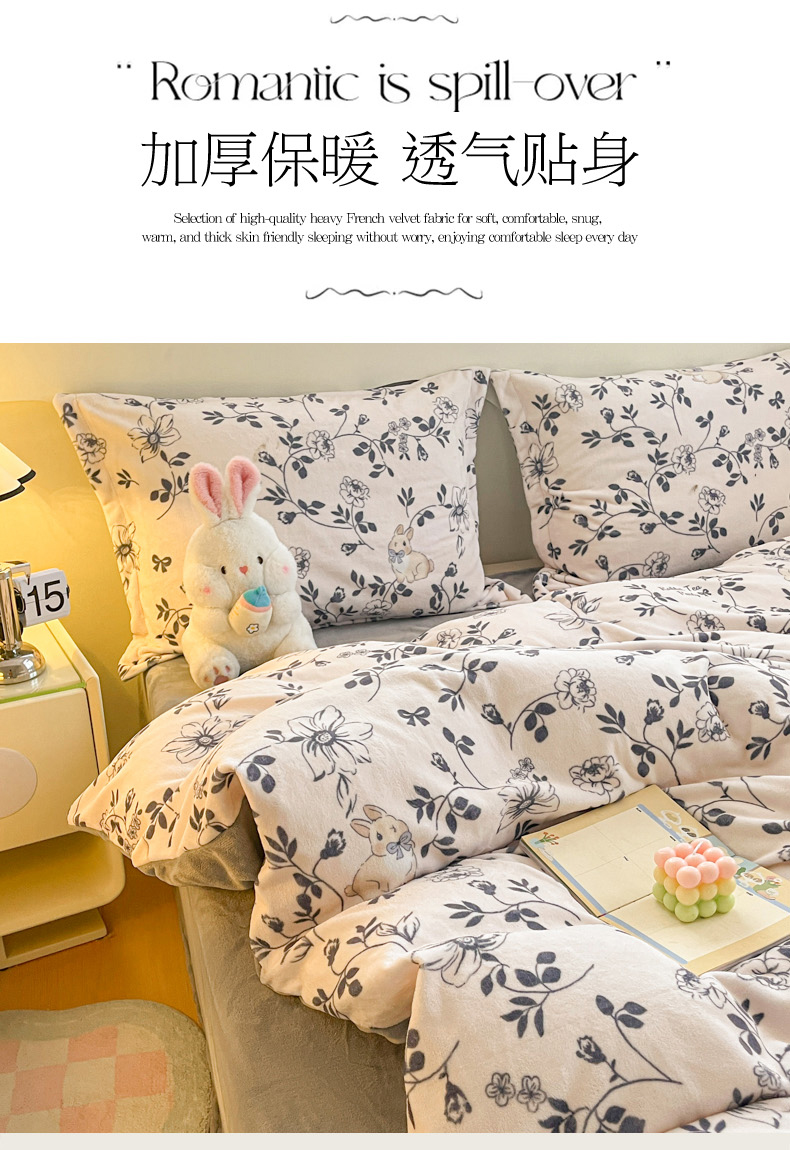 当前位置: 91家纺网 > 商品网购 > 床品套件 > 四件套 > 牛奶绒四件套 > 2024新款小清新牛奶绒高克重加厚保暖四件套 线条花兔