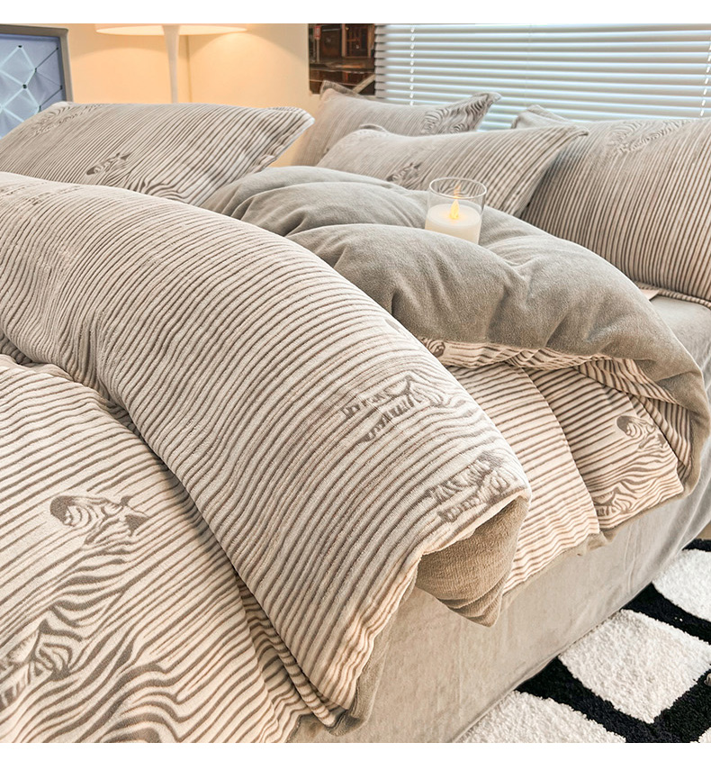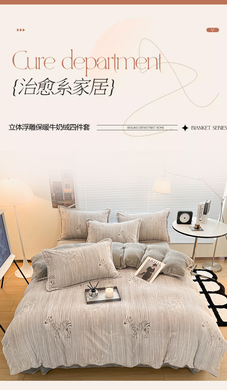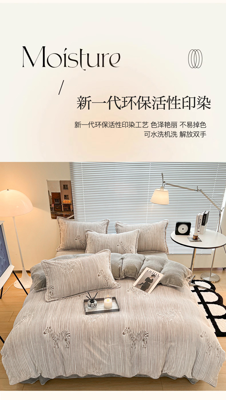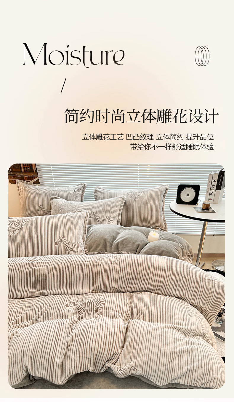 当前位置: 91家纺网 > 商品网购 > 床品套件 > 四件套 > 牛奶绒四件套 > 2024新款A类高克重立体浮雕牛奶绒加厚保暖系列-四件套 斑马灰