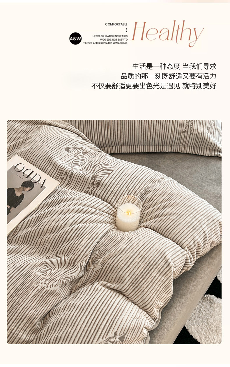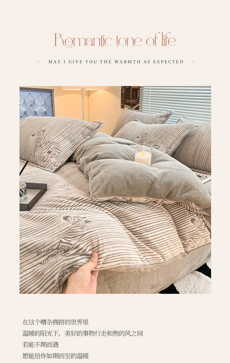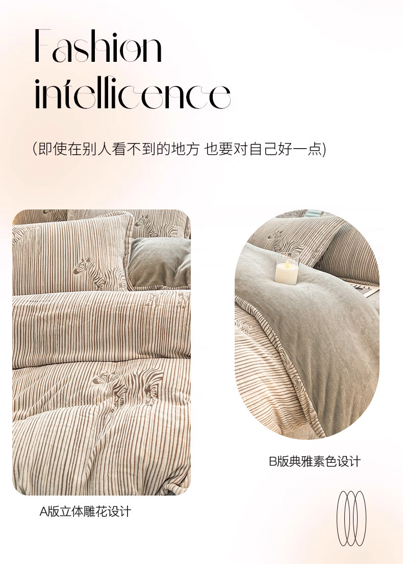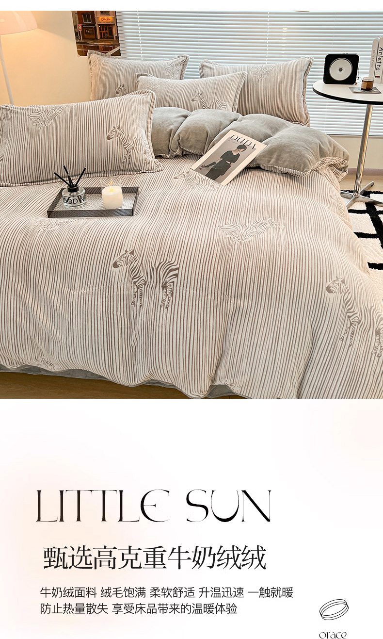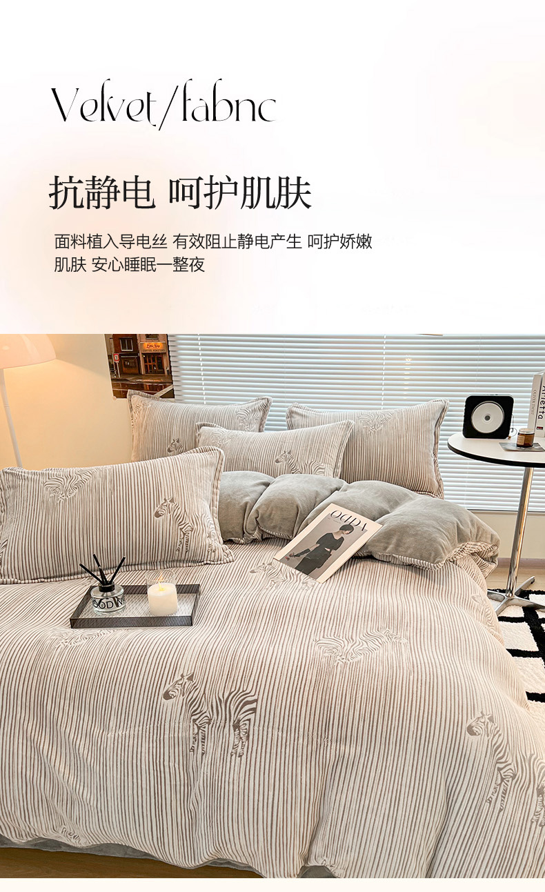 当前位置: 91家纺网 > 商品网购 > 床品套件 > 四件套 > 牛奶绒四件套 > 2024新款A类高克重立体浮雕牛奶绒加厚保暖系列-四件套 斑马灰