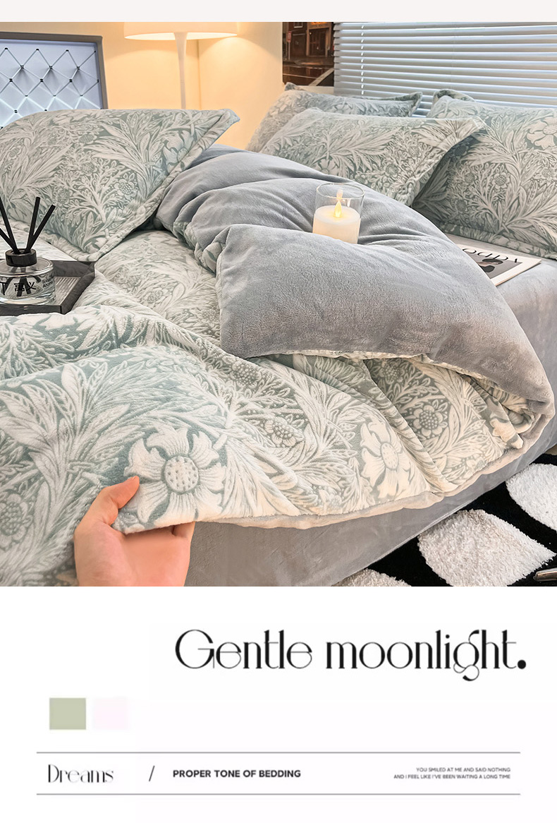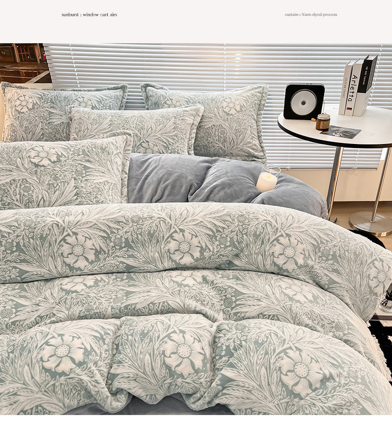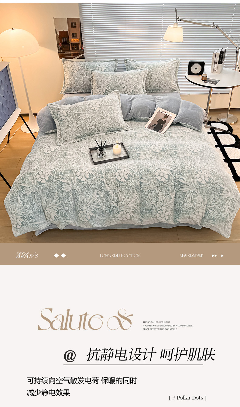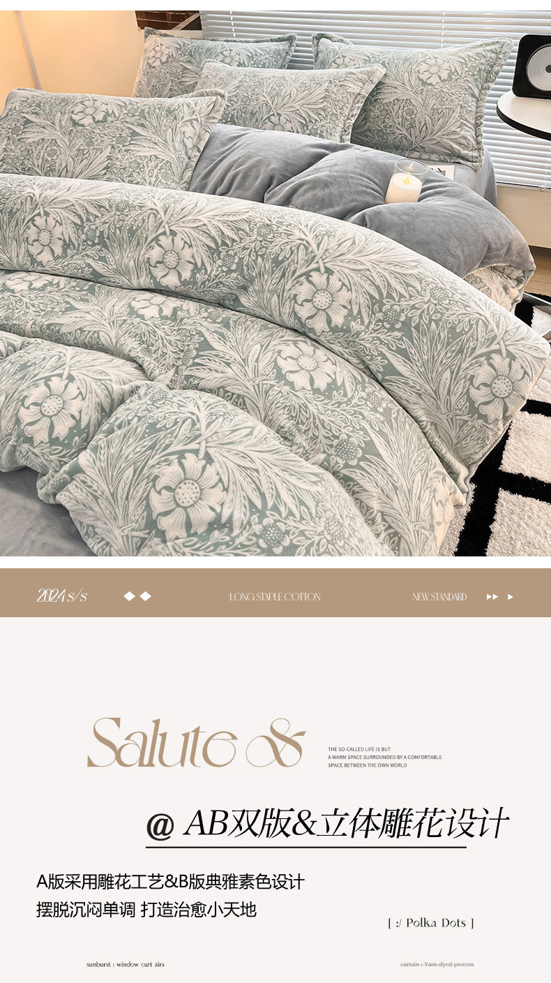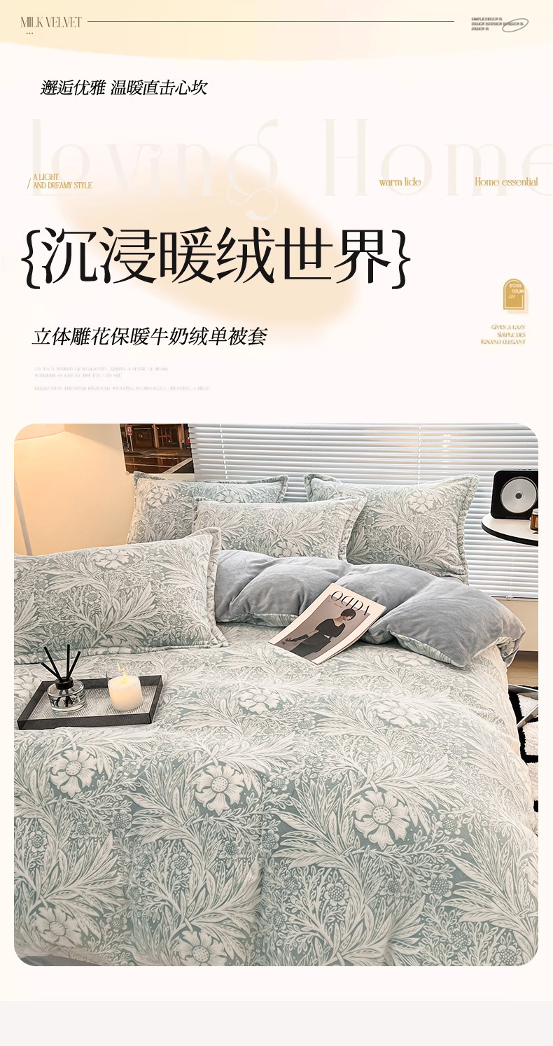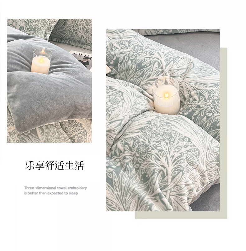(总)倾慕 2025新款兔绒立体雕花加厚保暖系列四件套,爱娜玉,春絮蓝,春絮绿,伊宁玉,伊宁紫,优朵粉,珍妮粉,珍妮湖蓝