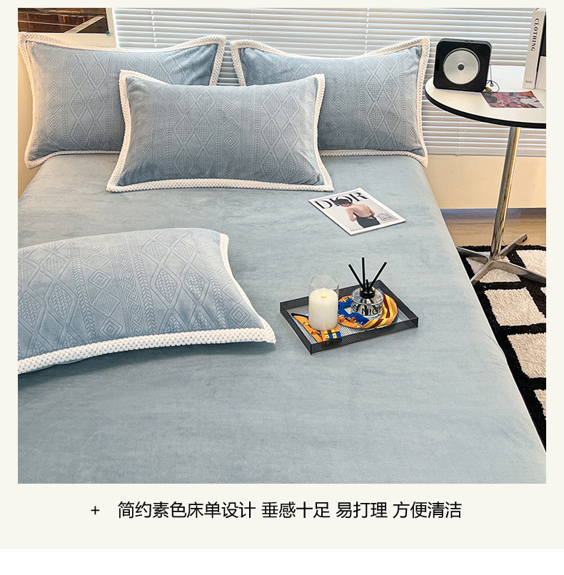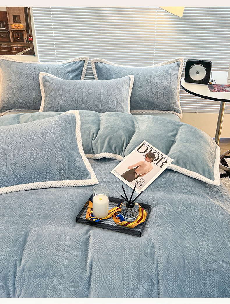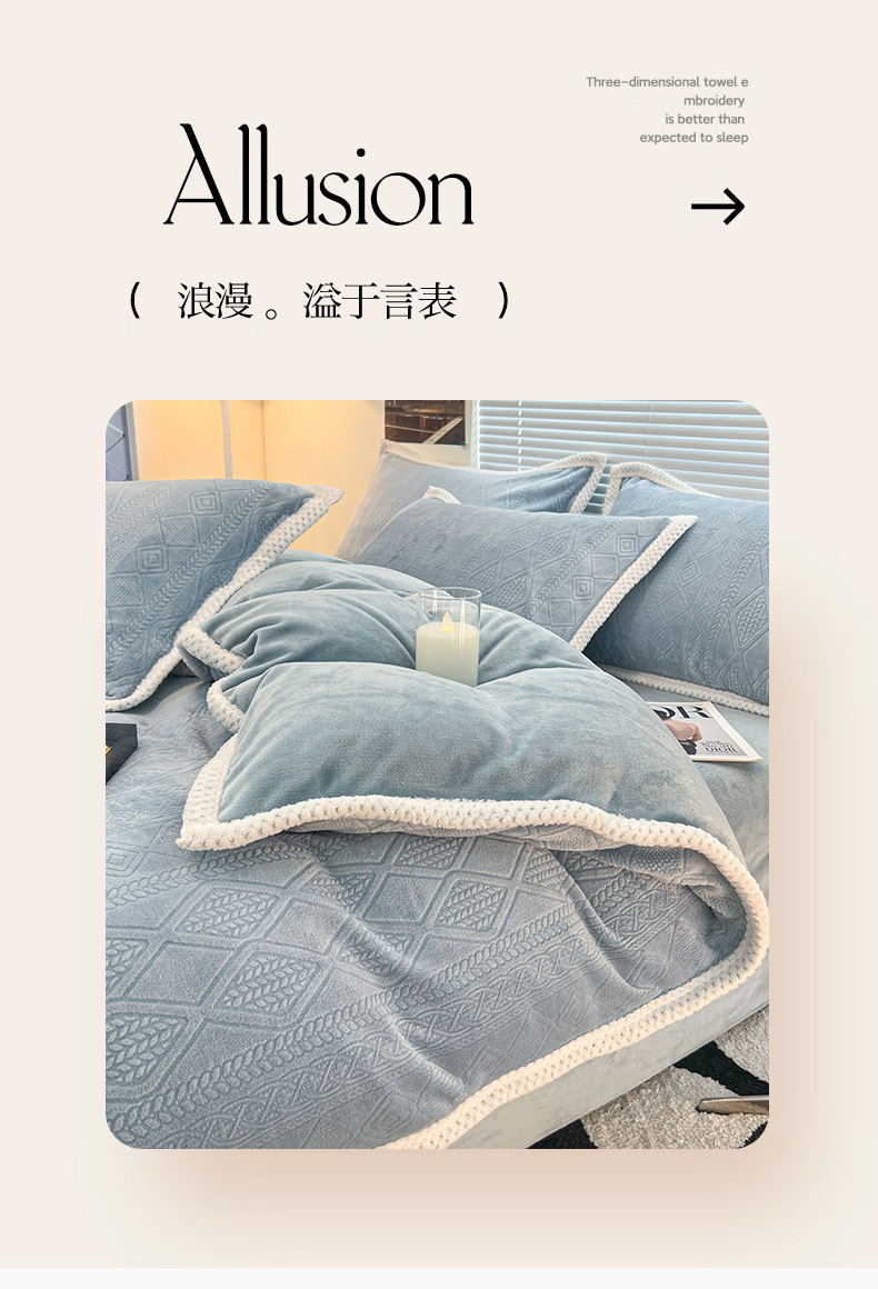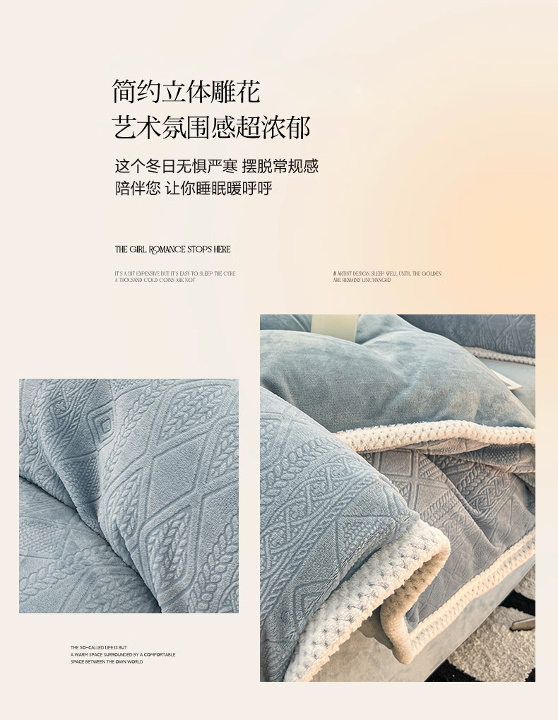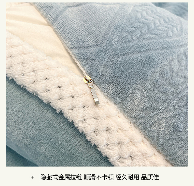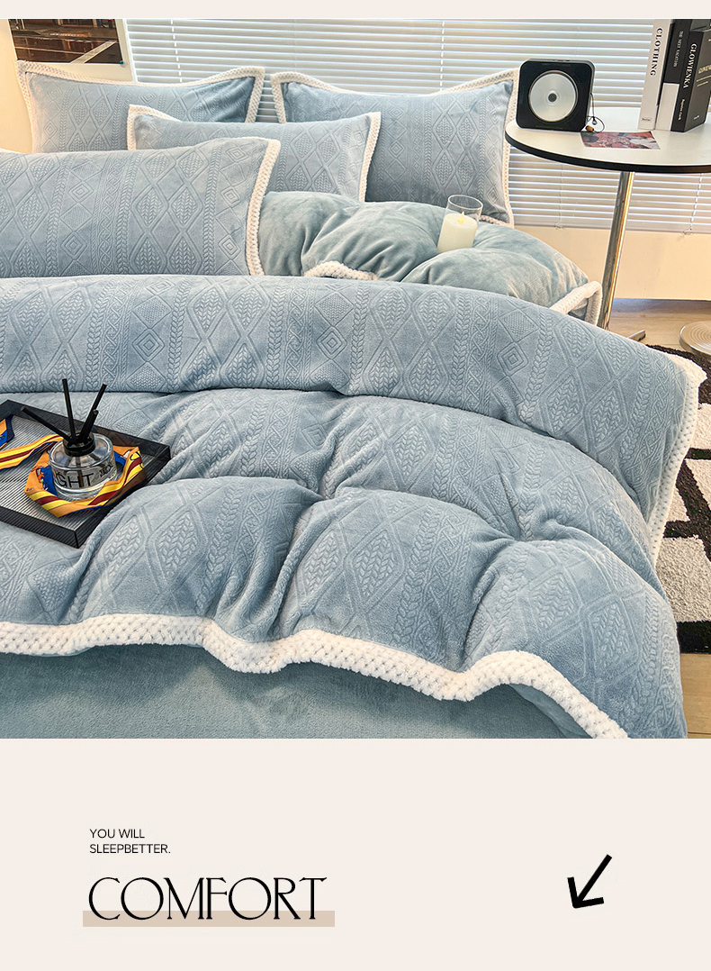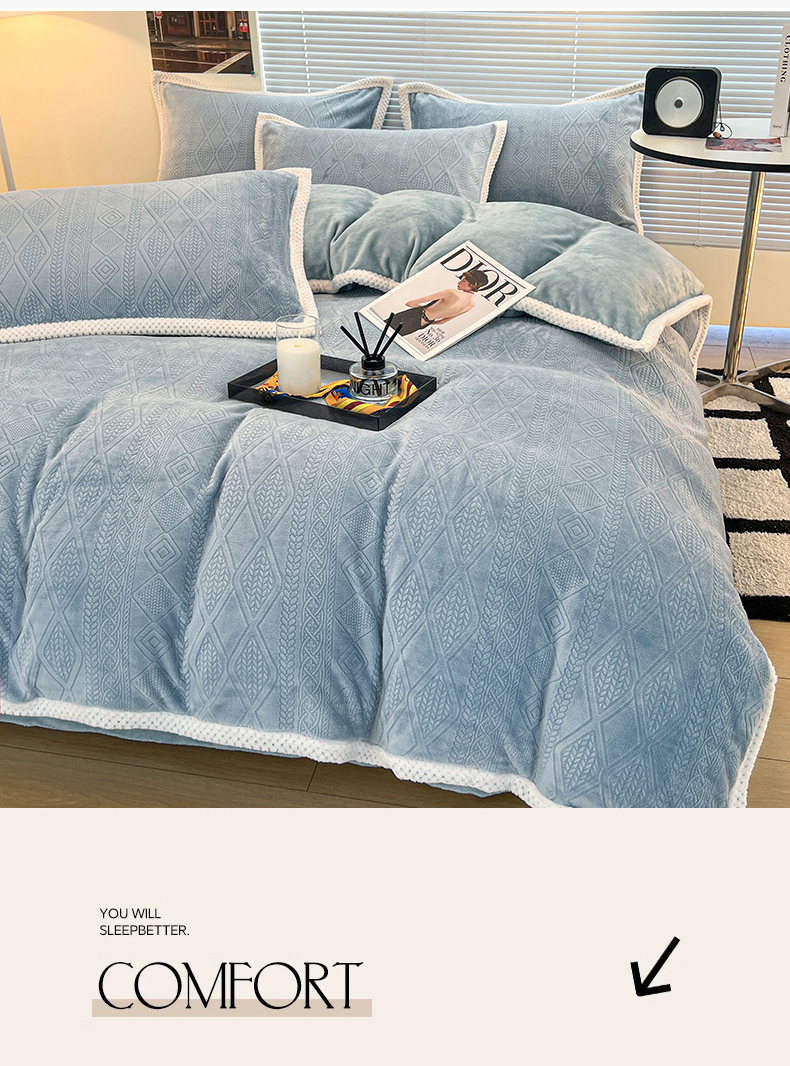 当前位置: 91家纺网 > 商品网购 > 床品套件 > 四件套 > 牛奶绒四件套 > 2024新款A类高克重3D立体雕花牛奶绒保暖系列套件单品-四件套 新暖意冰雪蓝