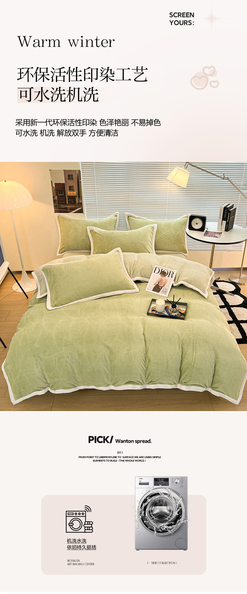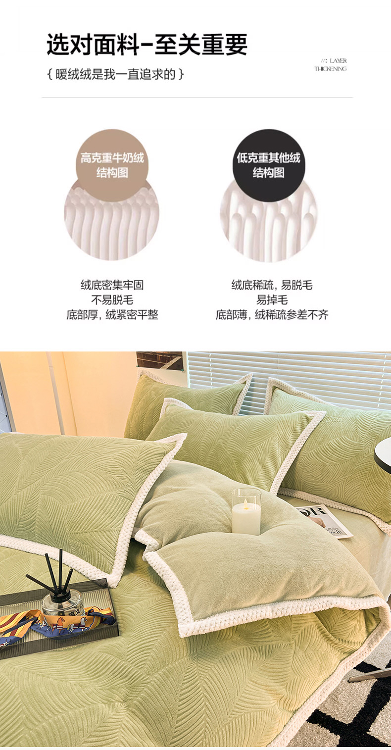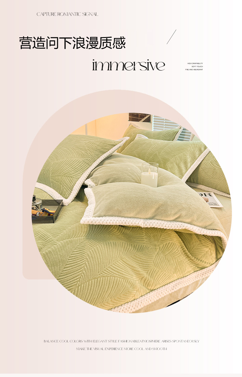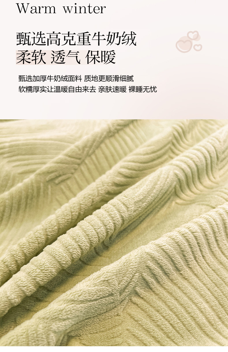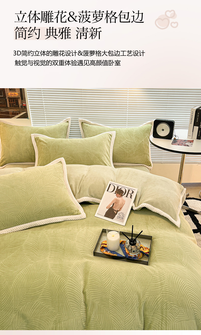 商品名称:2024新款A类高克重3D立体雕花牛奶绒保暖系列套件单品-被套 新芭蕉叶绿