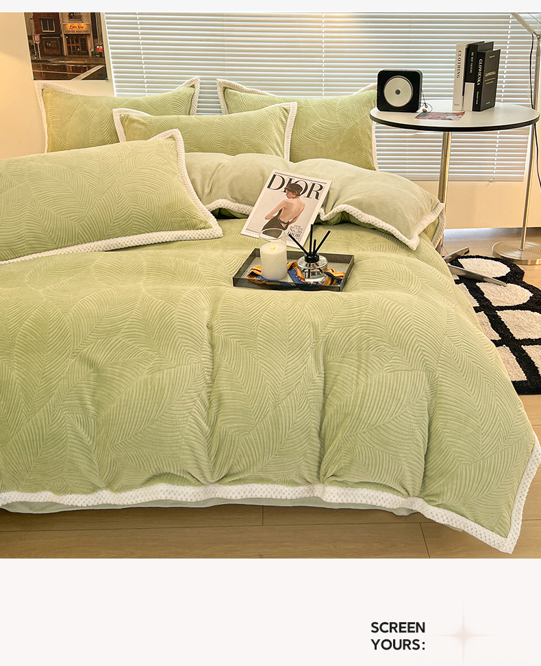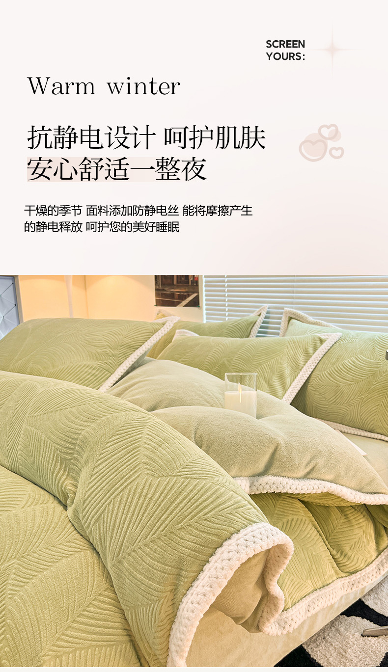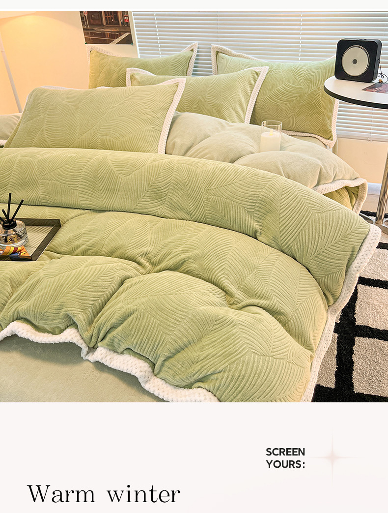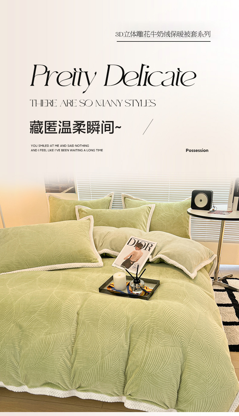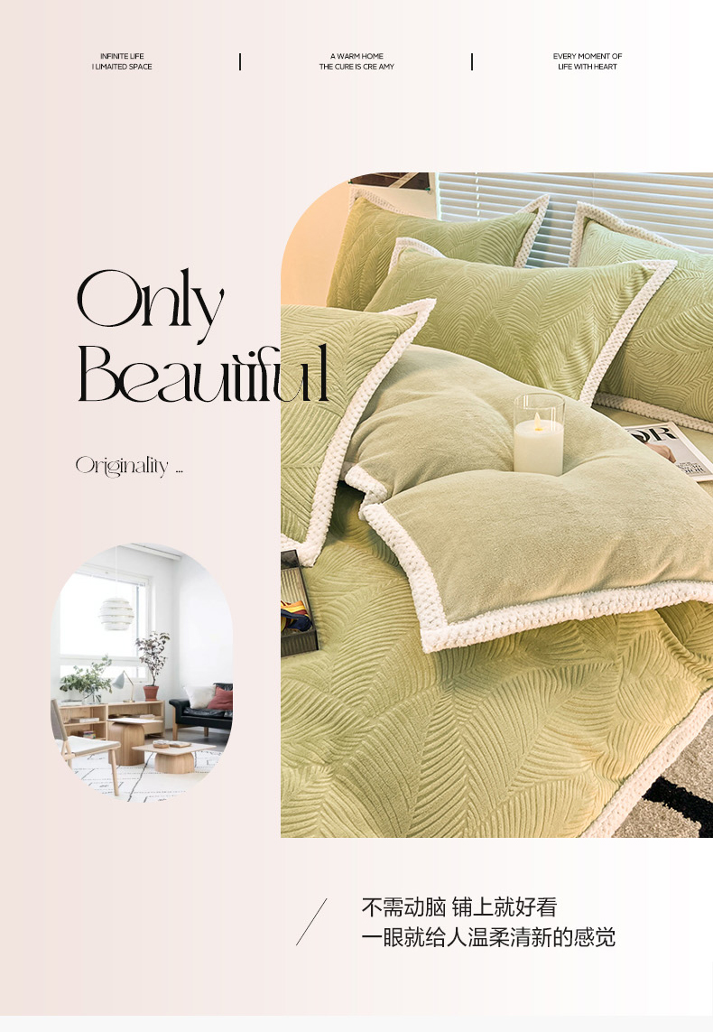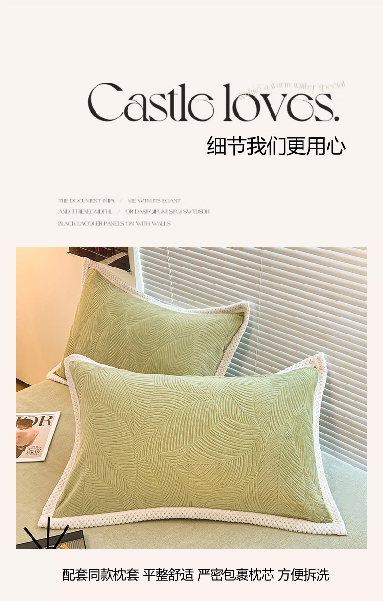 商品名称:2024新款A类高克重3D立体雕花牛奶绒保暖系列套件单品-被套 新芭蕉叶绿