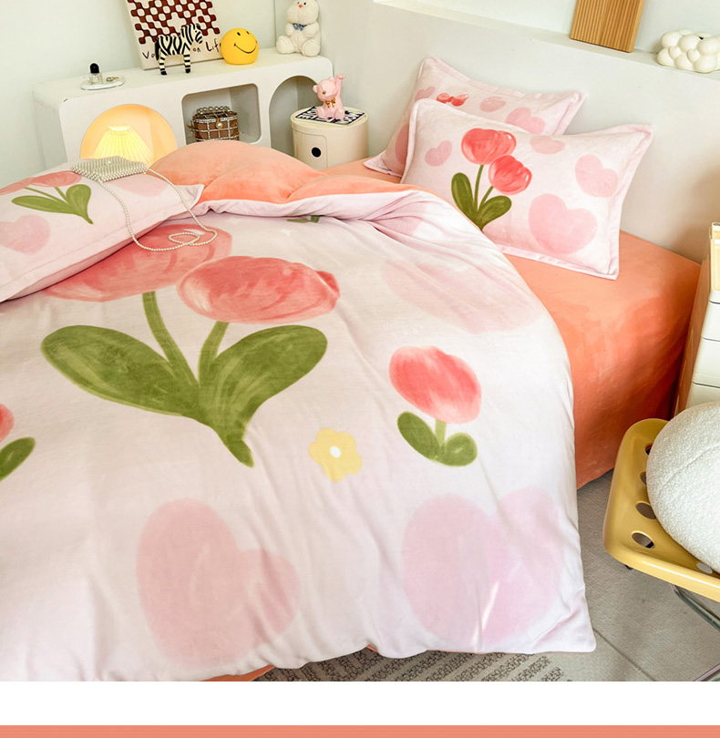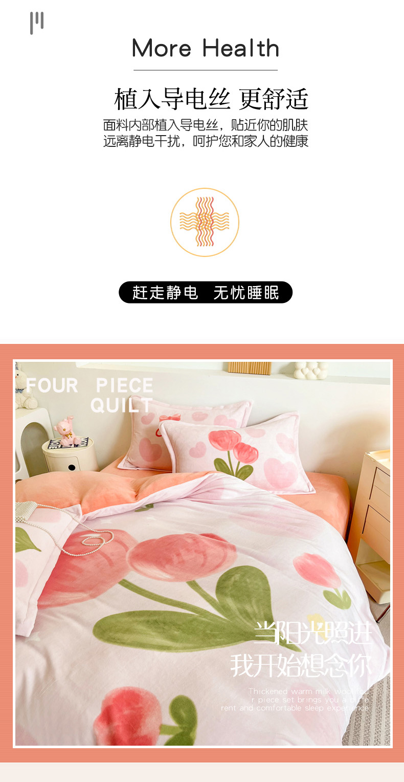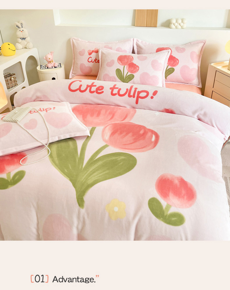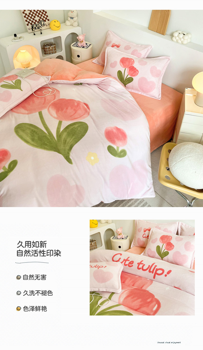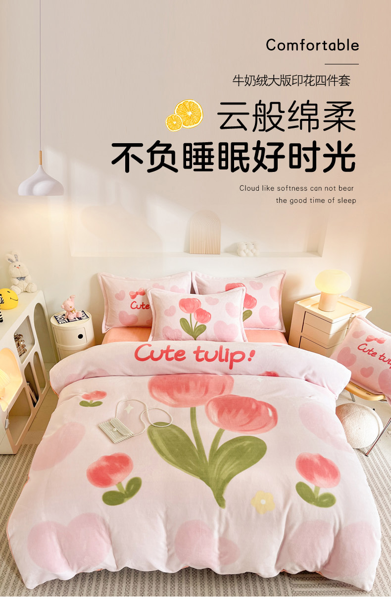 2024新款A类高克重牛奶绒大版印花保暖四件套 风情郁金香