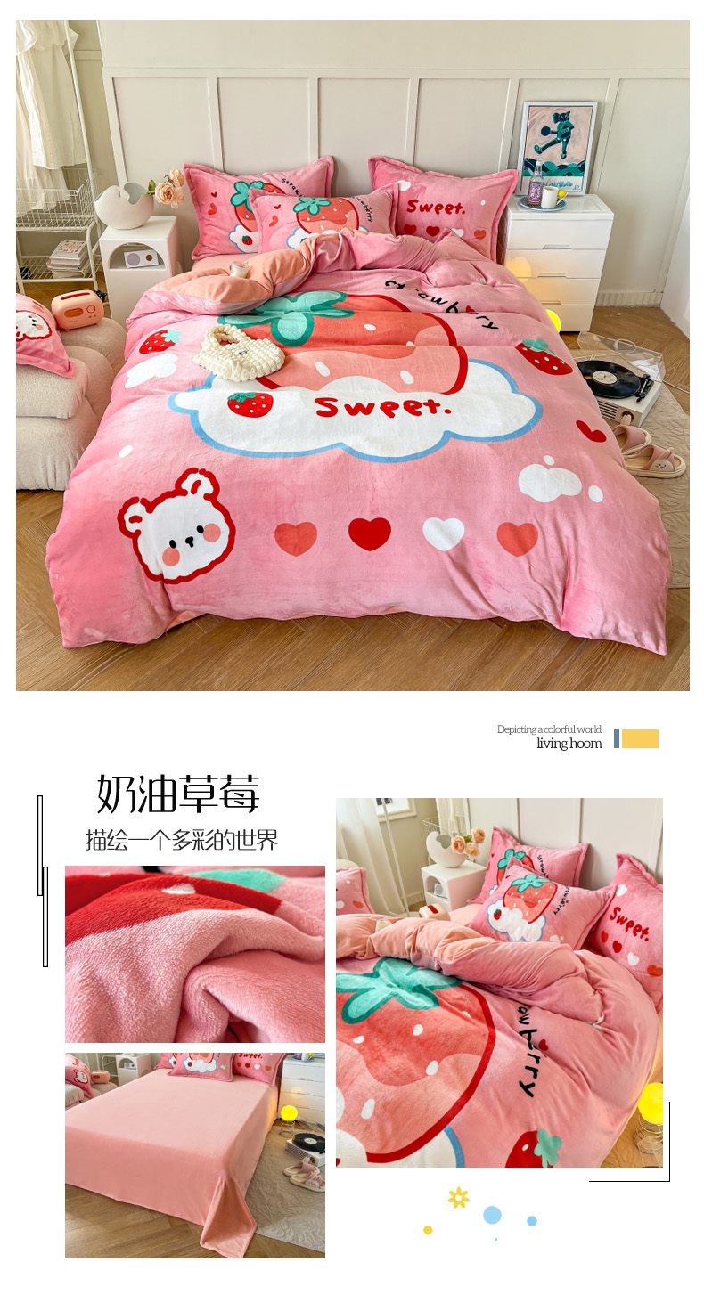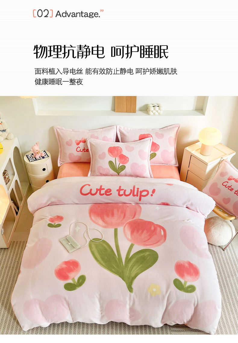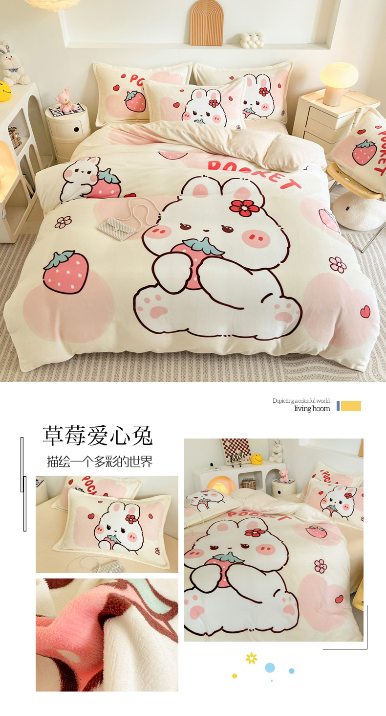 (总)倾慕家纺 2025新款卡通毛巾绣加厚保暖牛奶绒四件套,爱心女孩,咖啡小狗,猫咪熊兔,迷你小车,圣诞树熊,音乐企鹅