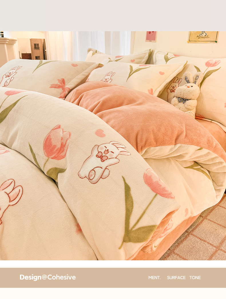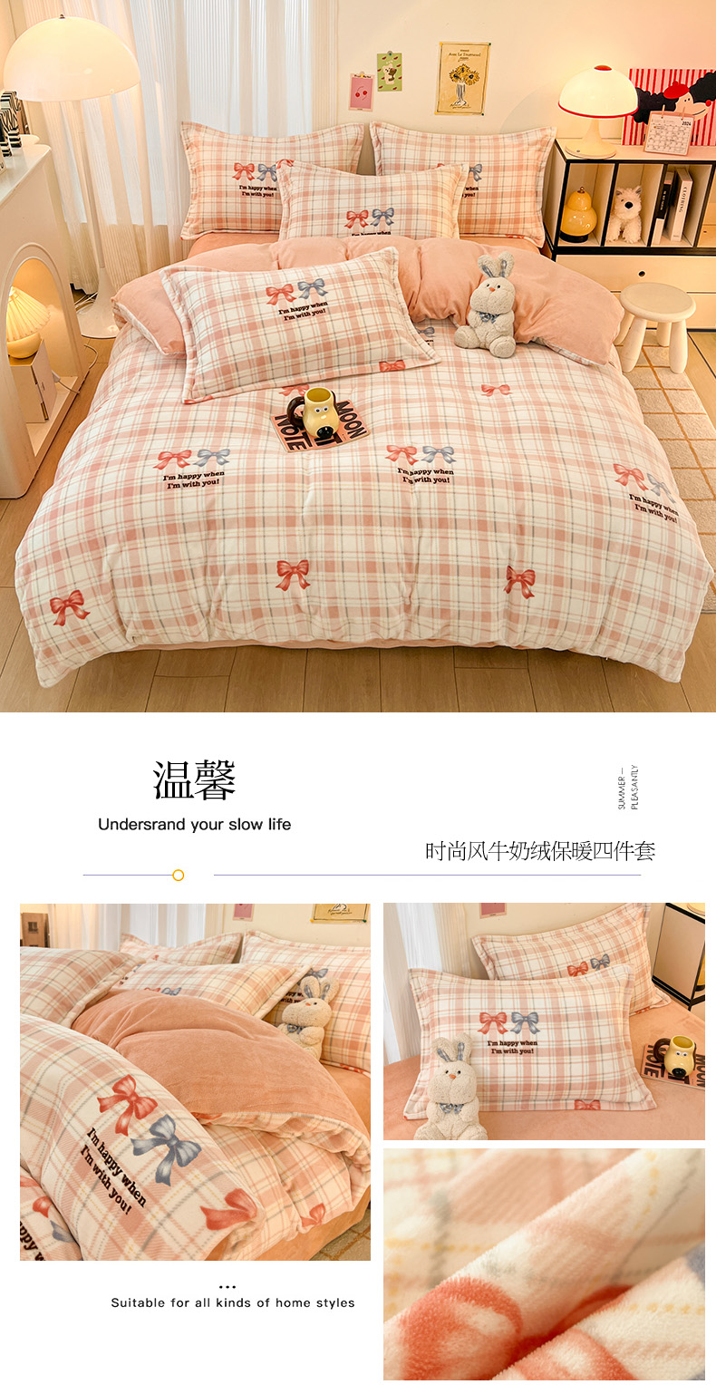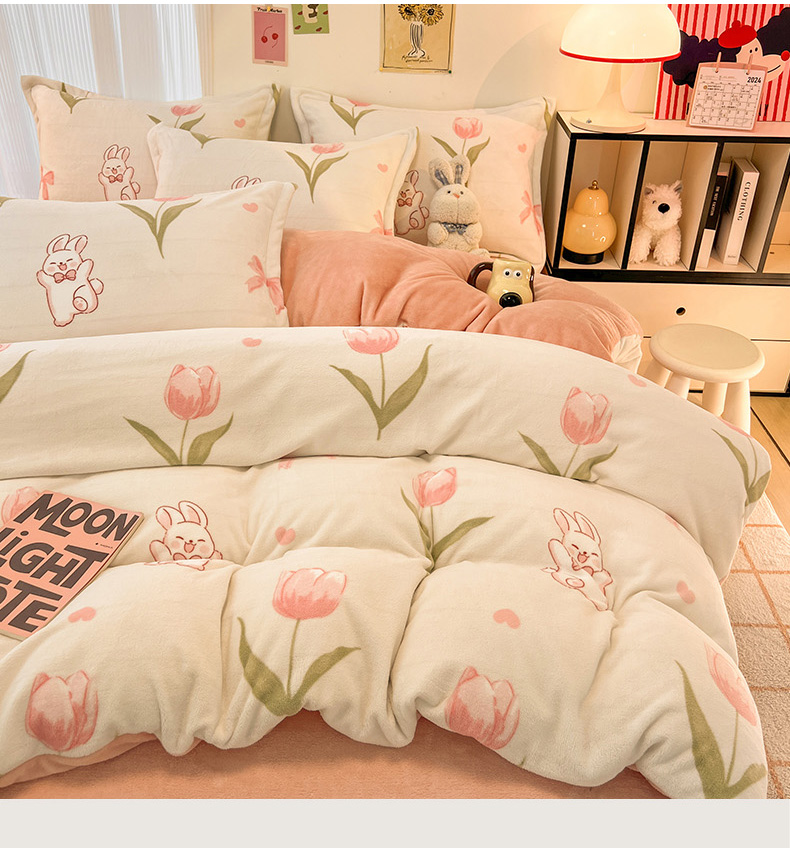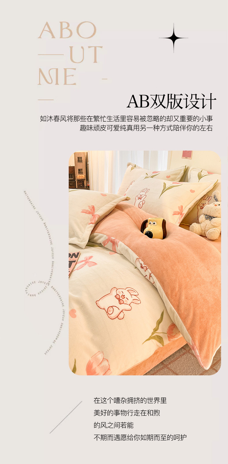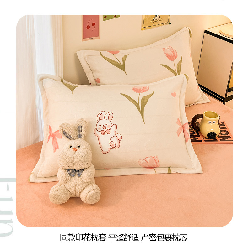 当前位置: 91家纺网 > 商品网购 > 床品套件 > 四件套 > 牛奶绒四件套 > 2024新款A类高克重时尚风牛奶绒加厚保暖系列套件单品-四件套 花花小兔粉