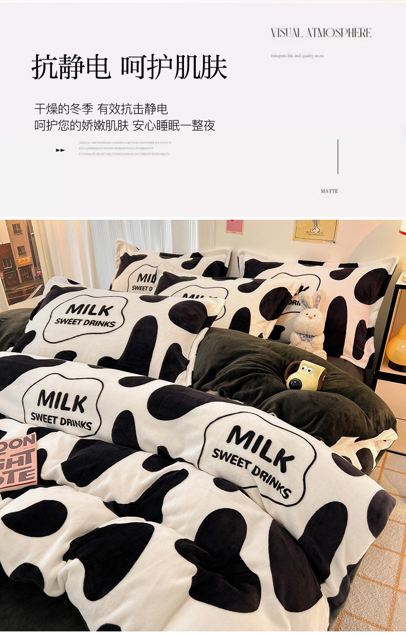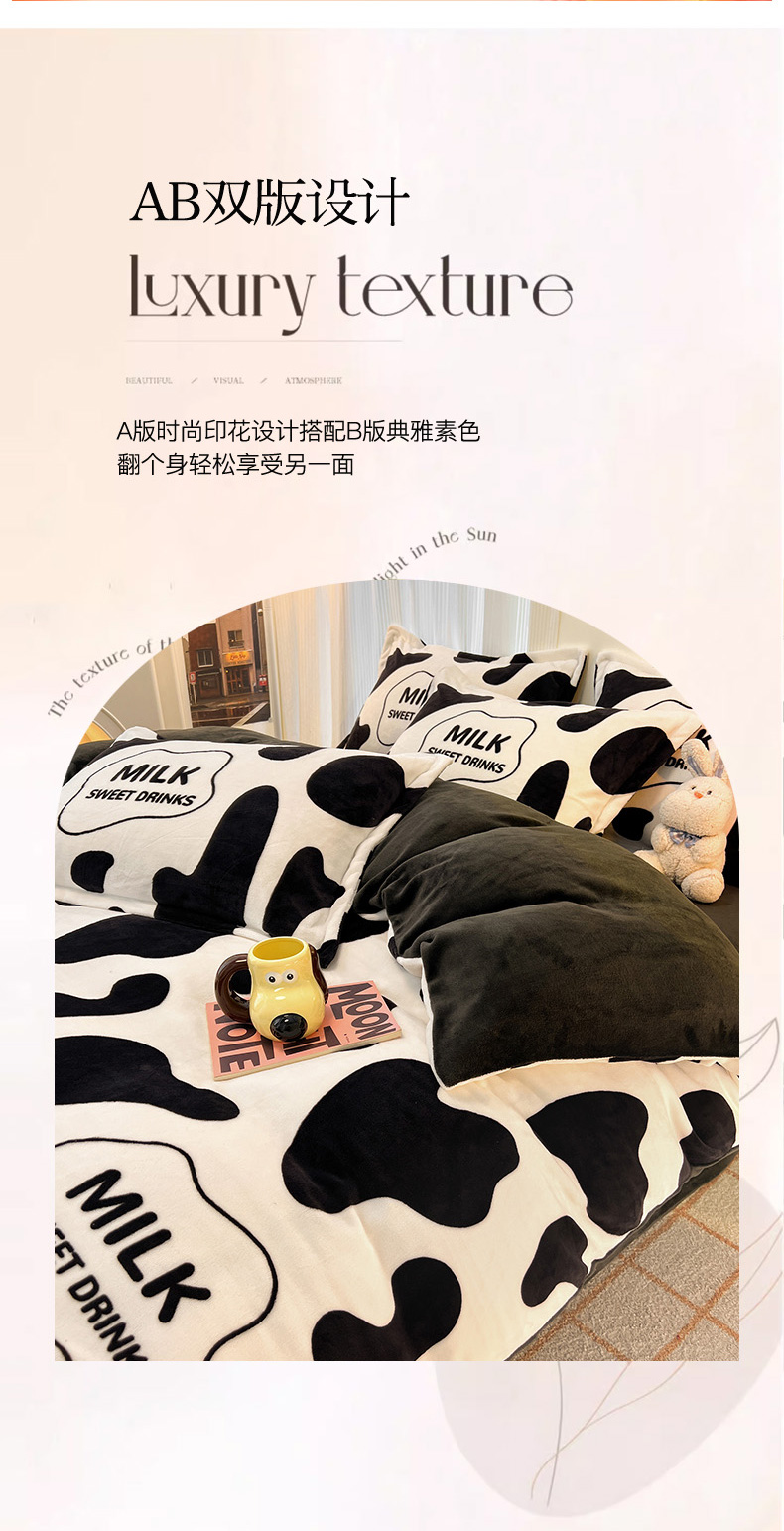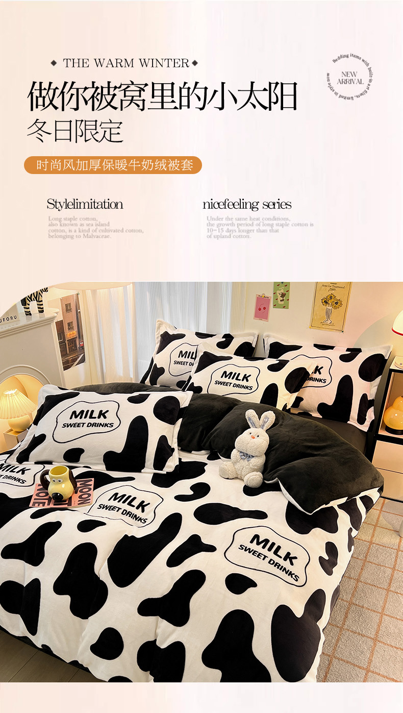 商品名称:2024新款A类高克重时尚风牛奶绒加厚保暖系列套件单品-被套 大奶牛