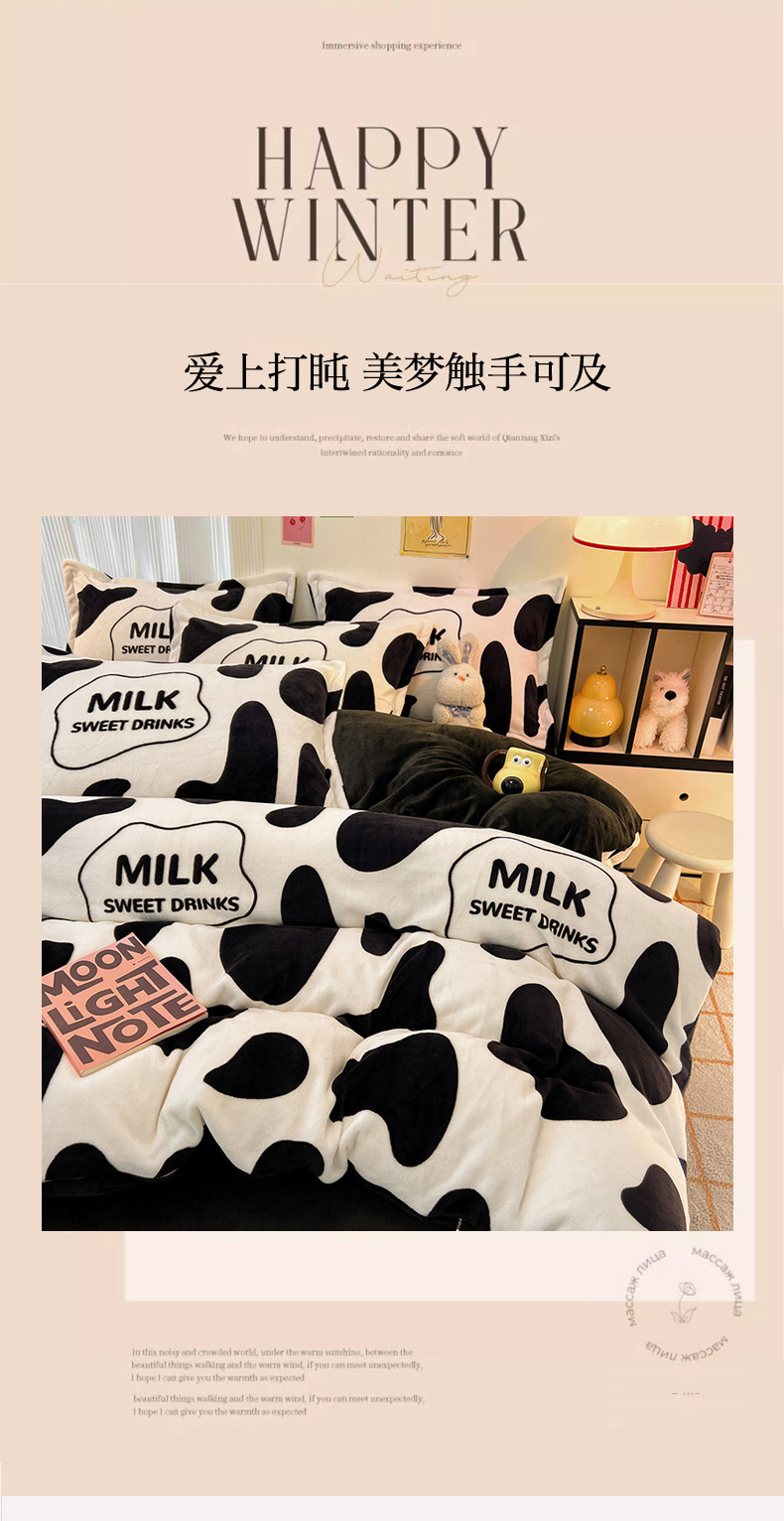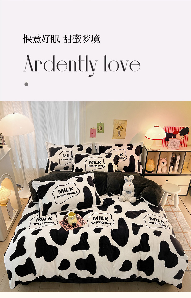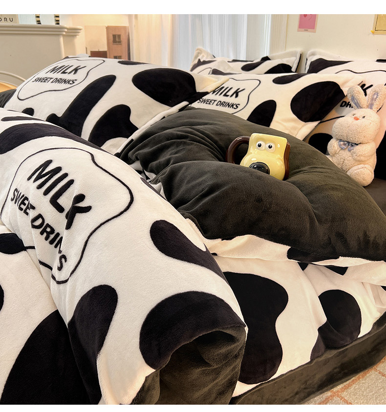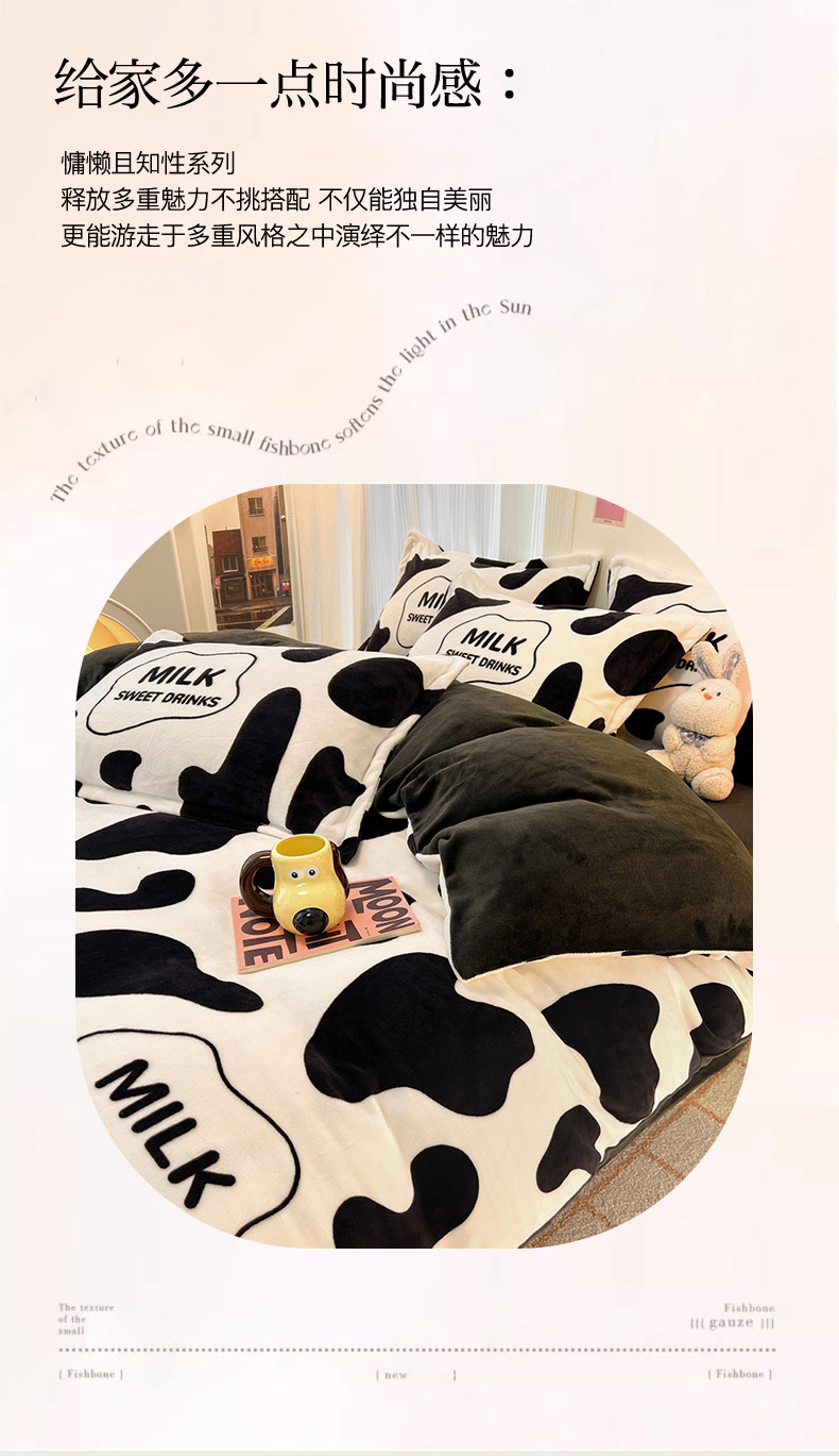 商品名称:2024新款A类高克重时尚风牛奶绒加厚保暖系列套件单品-被套 大奶牛