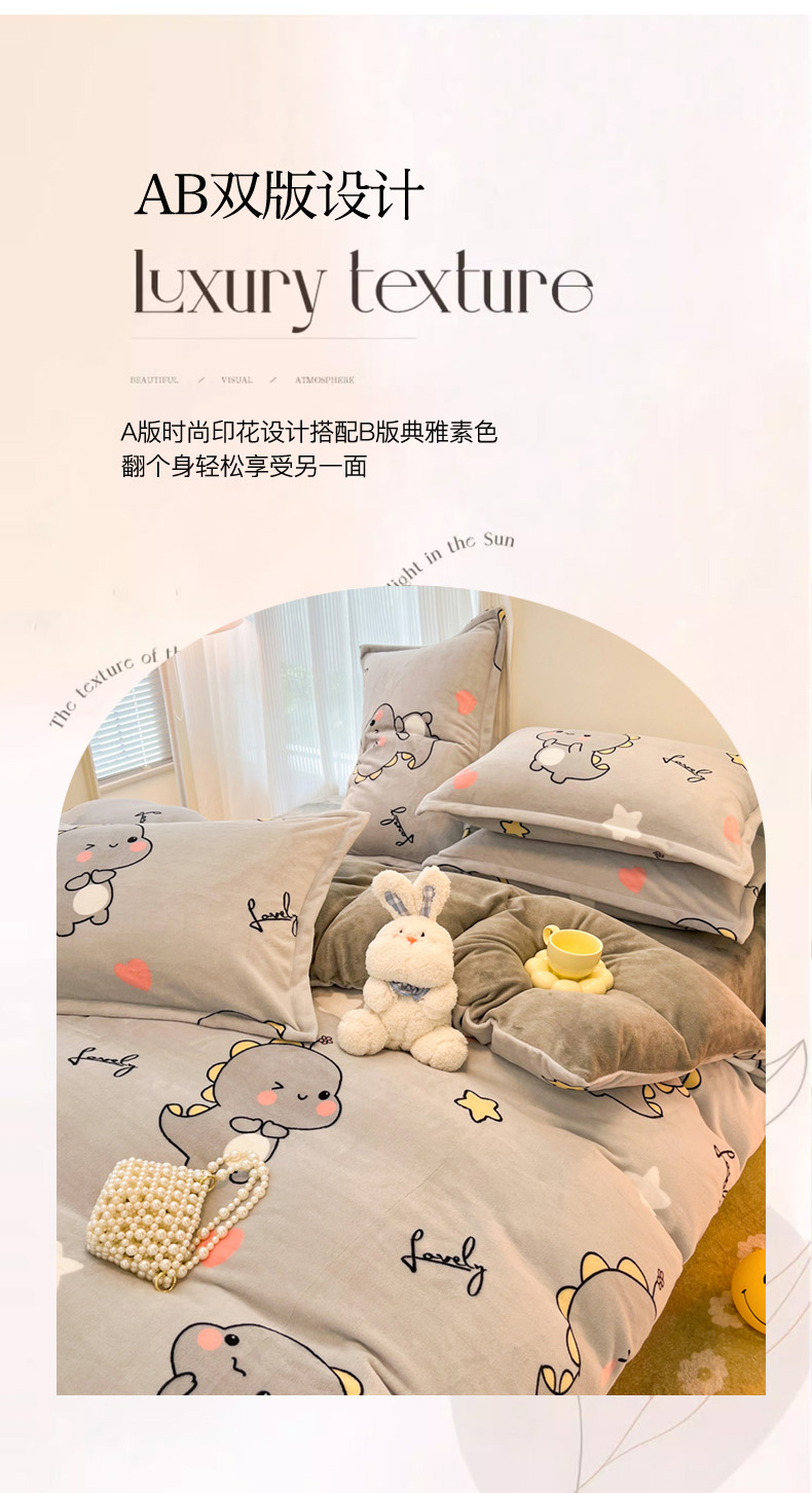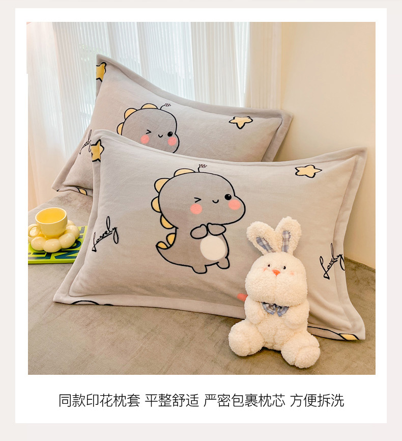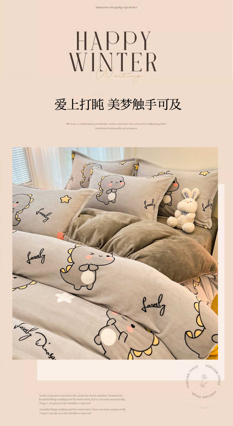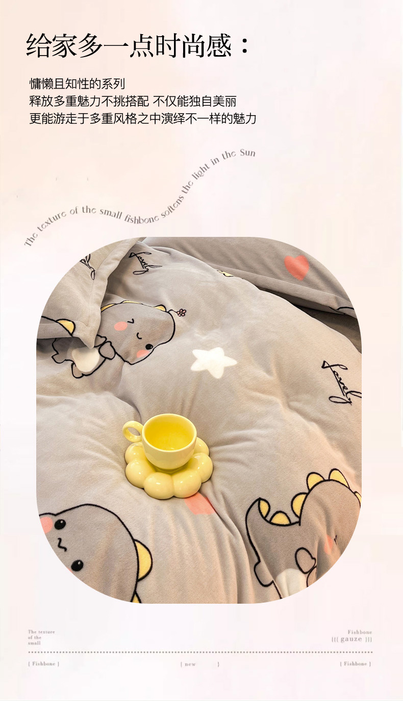 商品名称:2024新款A类高克重时尚风牛奶绒加厚保暖系列套件单品-被套 亲亲恐龙