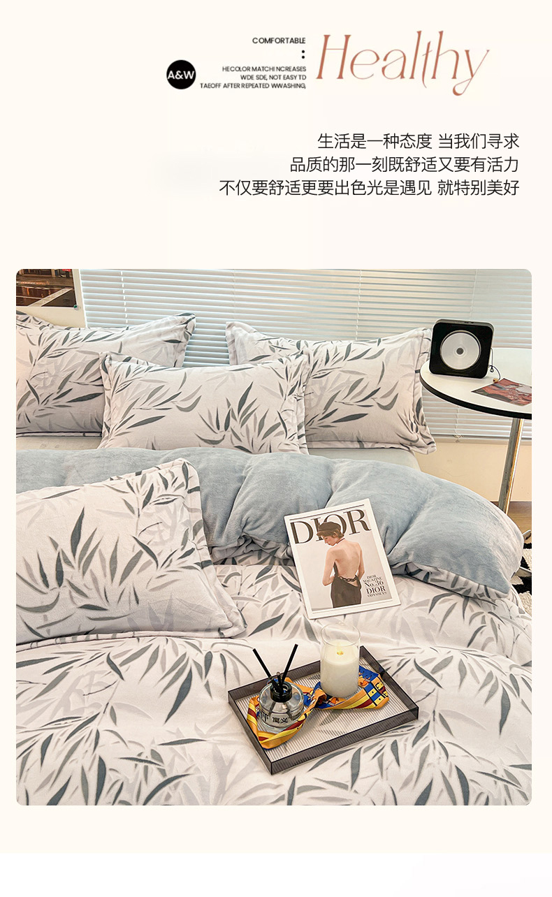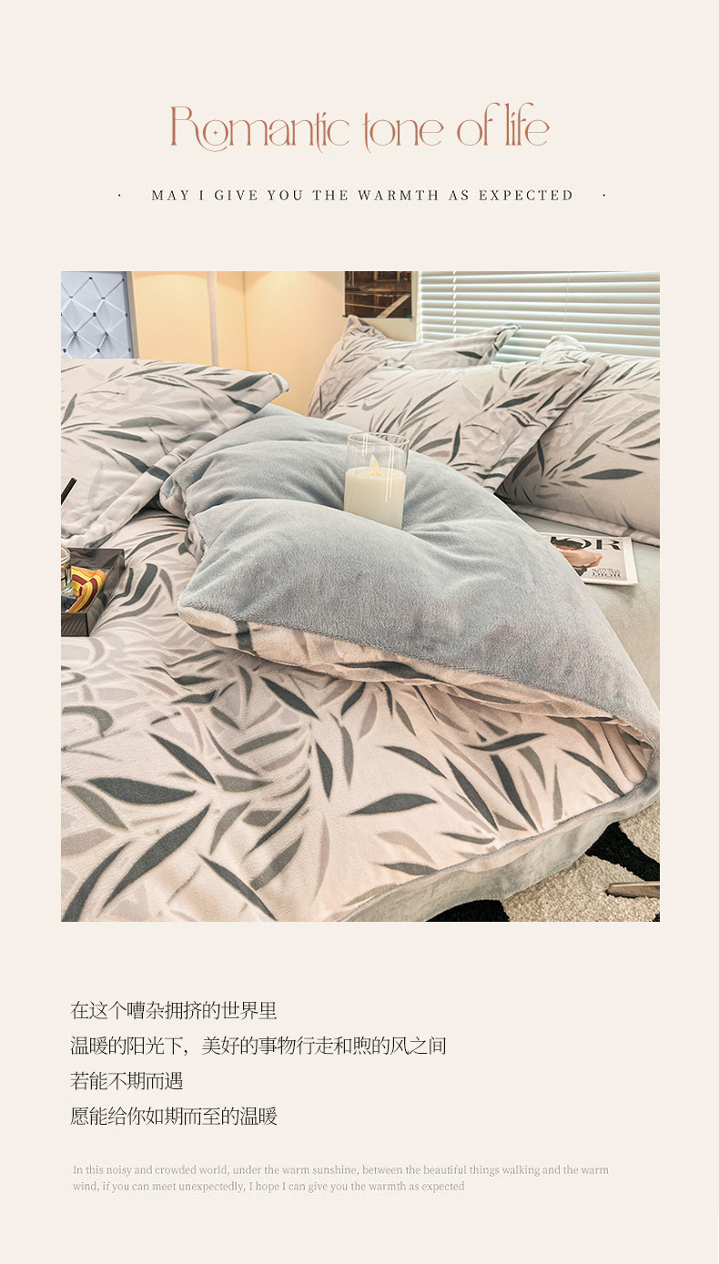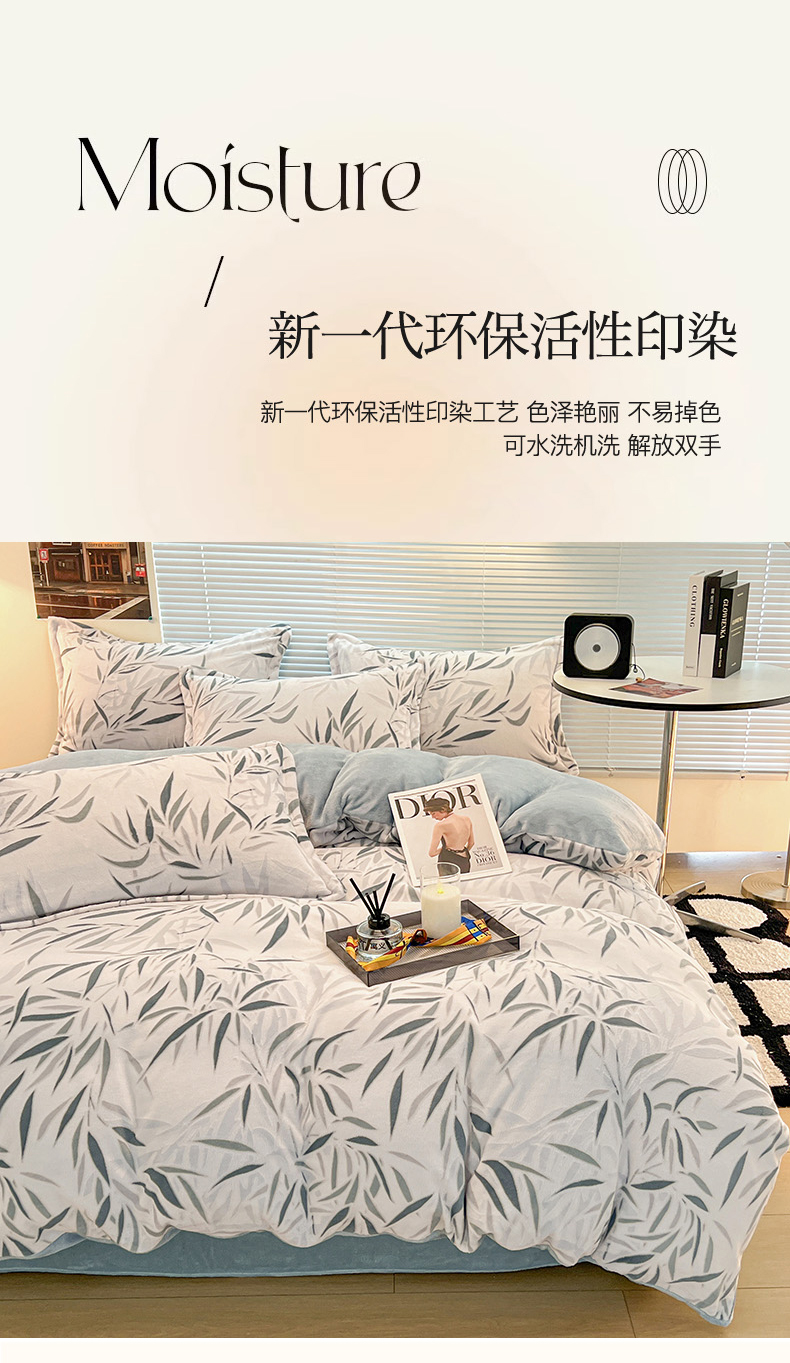 当前位置: 91家纺网 > 商品网购 > 床品套件 > 四件套 > 牛奶绒四件套 > 2024新款A类高克重立体浮雕牛奶绒加厚保暖简约风系列四件套 竹叶潇潇