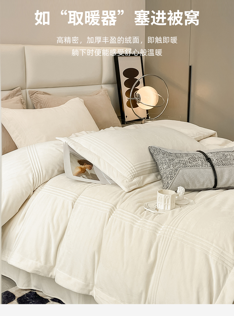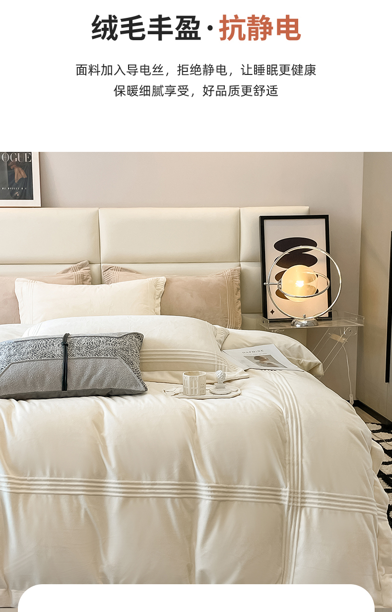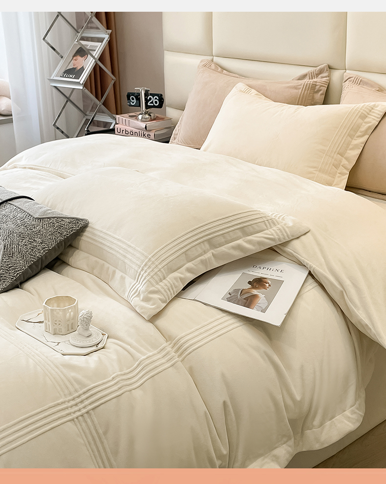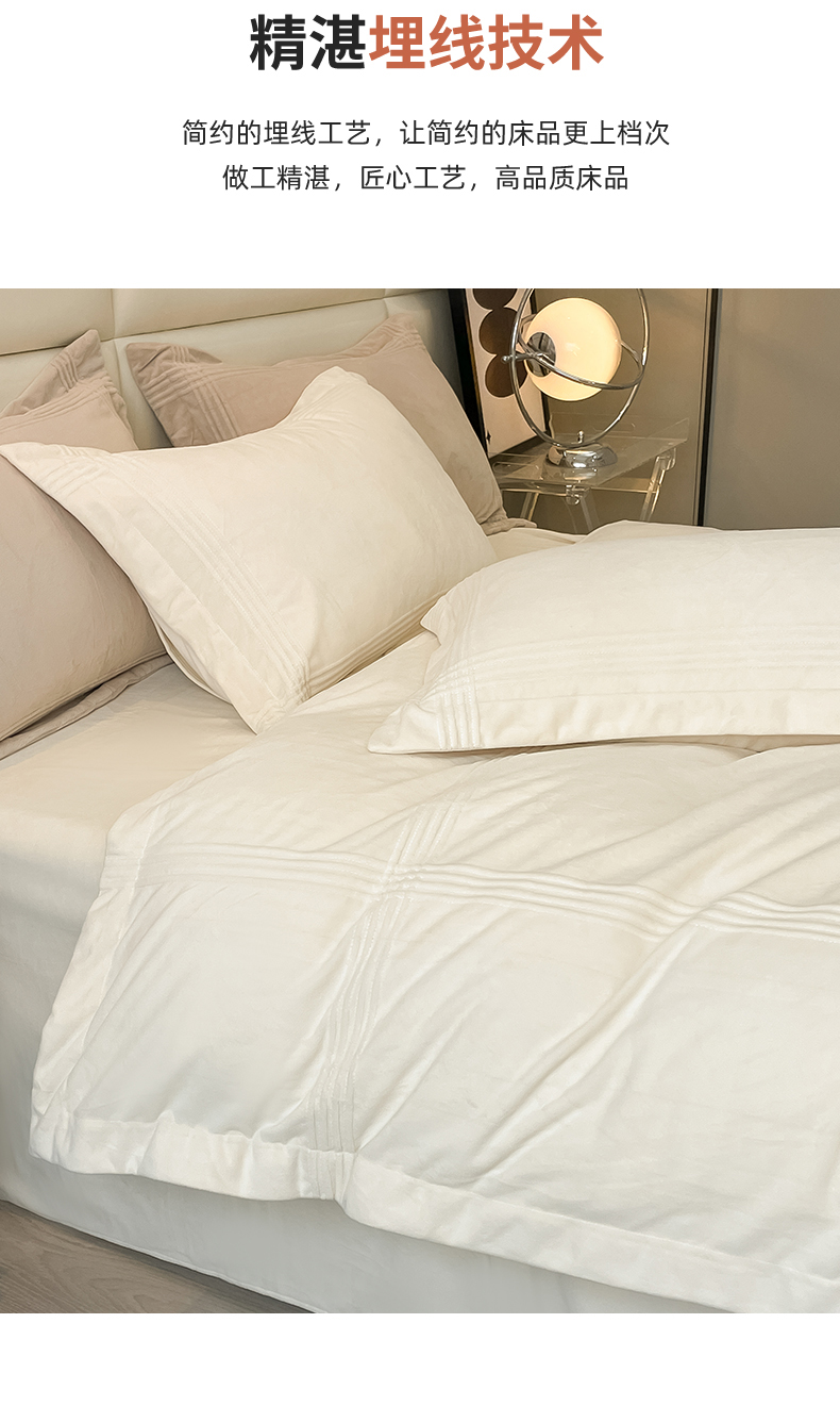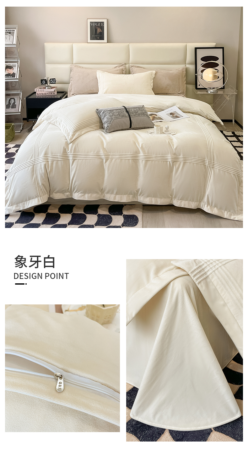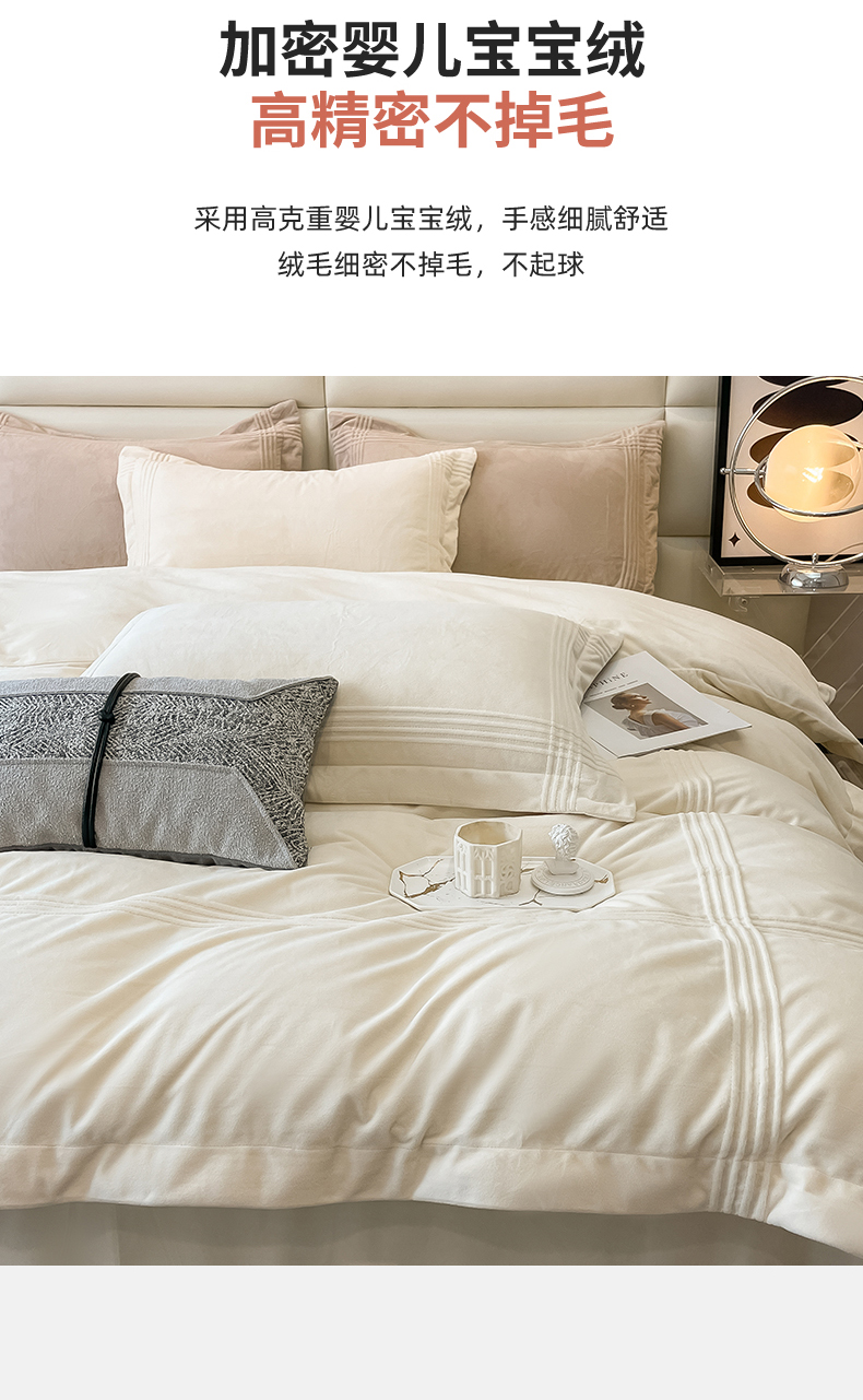 商品名称:禧澜庭 2024新款A类婴儿绒宝宝绒牛奶绒埋线款埋绳款纯色刺绣四件套 象牙白