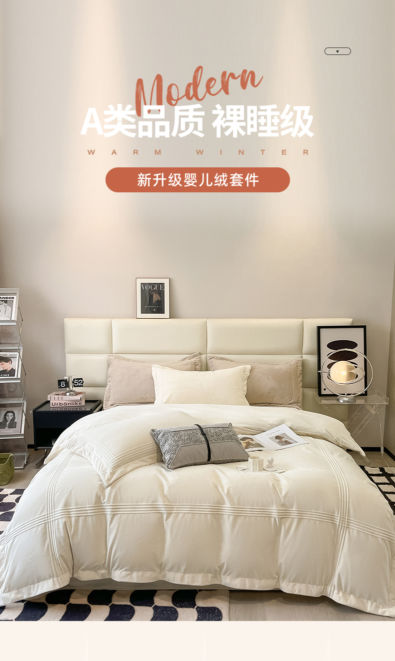 (总)禧澜庭 2025新款A类婴儿绒宝宝绒牛奶绒纯色双拼四件套,罗兰黄+米白,云雾灰+浅卡其,云黛紫+米白,初荷粉+浅卡其,梵克绿,海盐蓝+云雾灰,爵士灰,富山白+古栗棕,蒂姆蓝,初荷粉