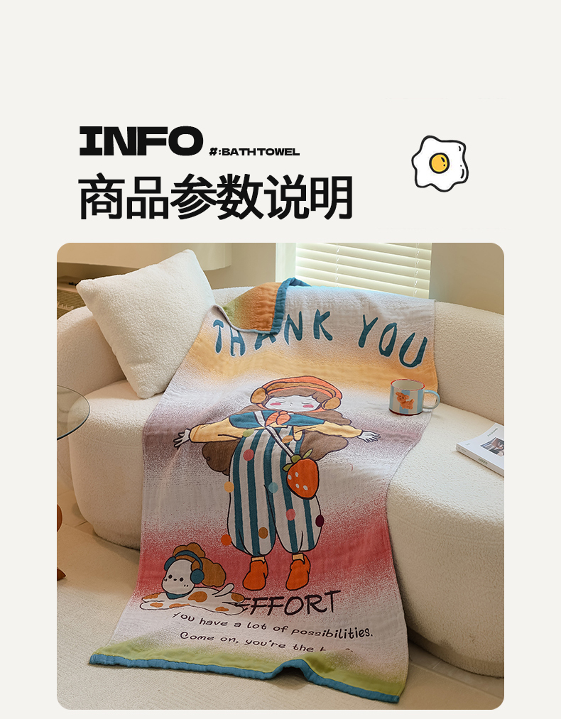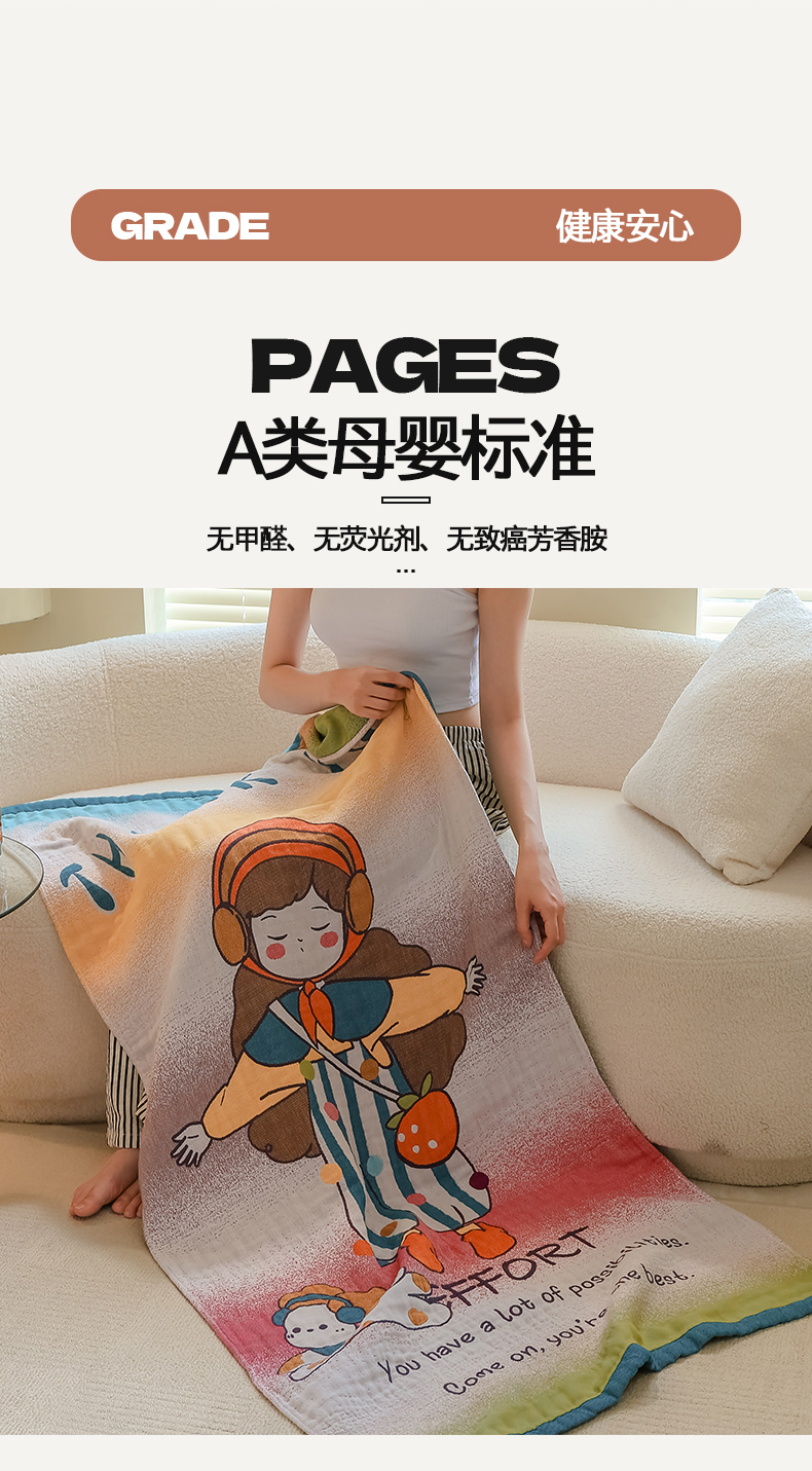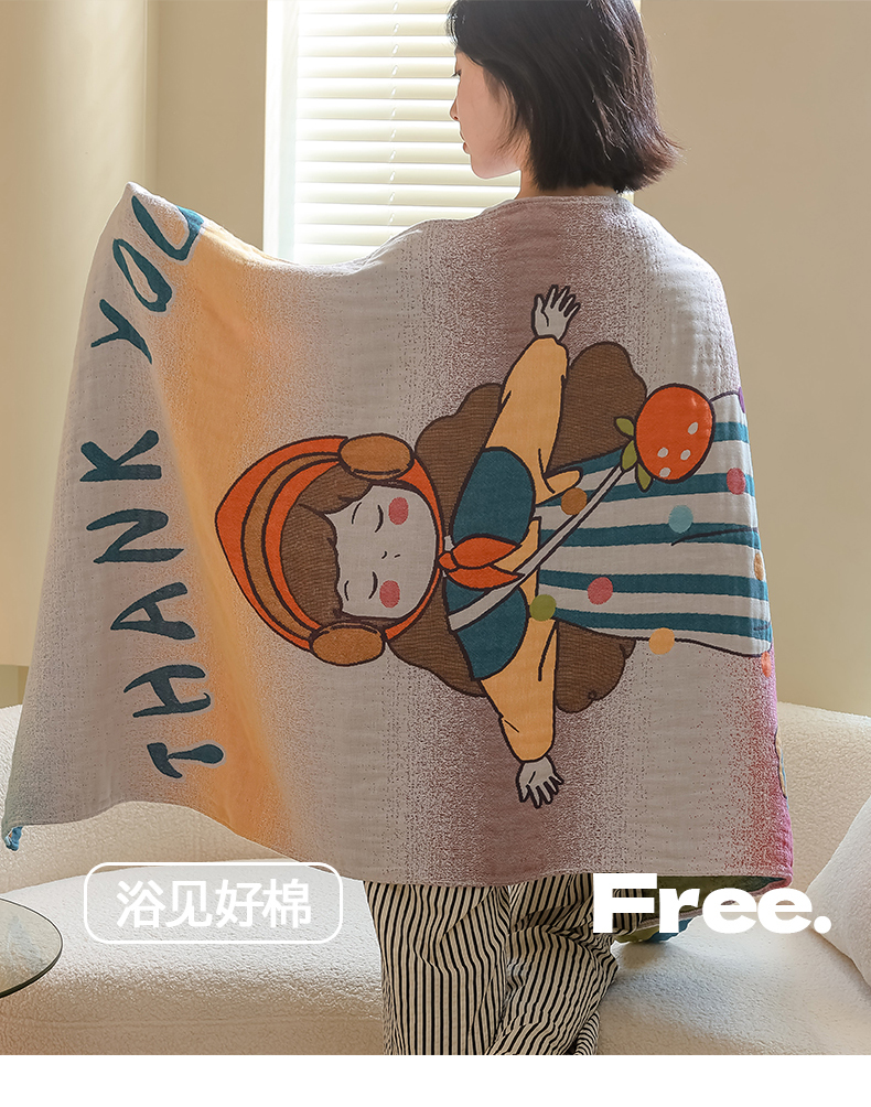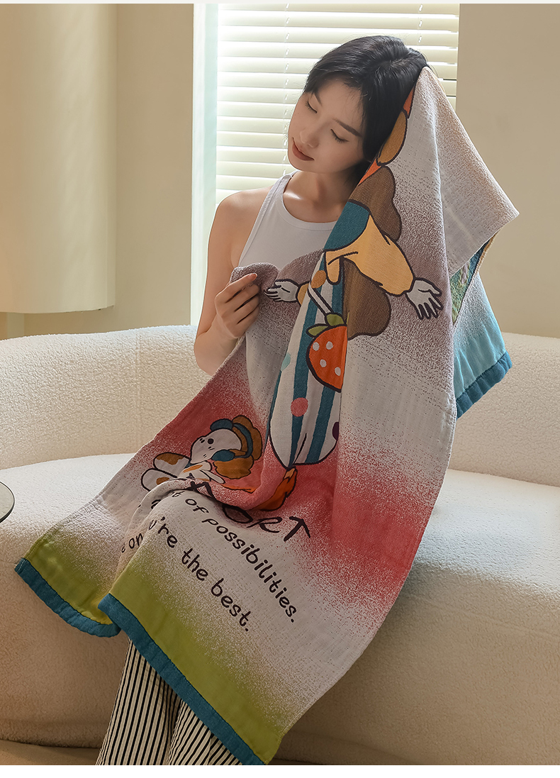 当前位置: 91家纺网 > 商品网购 > 居家日用 > 毛巾/浴巾/浴袍 > 浴巾 > 雯雨家纺 2024新款四层全棉纱布浴巾加大毛巾80*160cm 草莓女孩