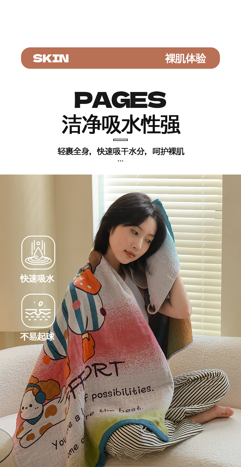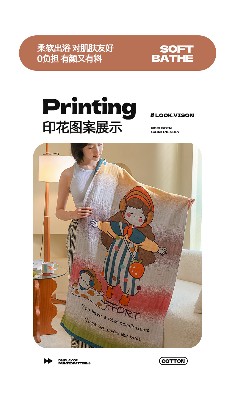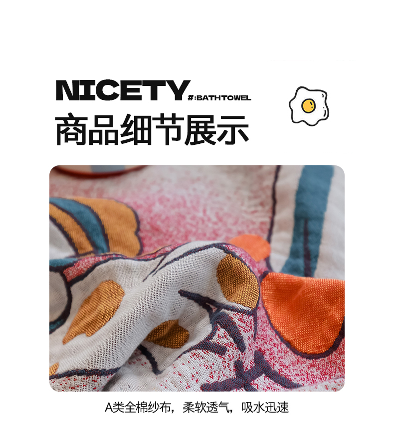 当前位置: 91家纺网 > 商品网购 > 居家日用 > 毛巾/浴巾/浴袍 > 浴巾 > 雯雨家纺 2024新款四层全棉纱布浴巾加大毛巾80*160cm 草莓女孩